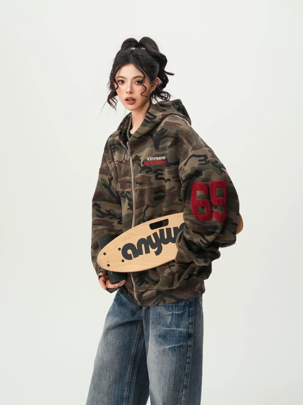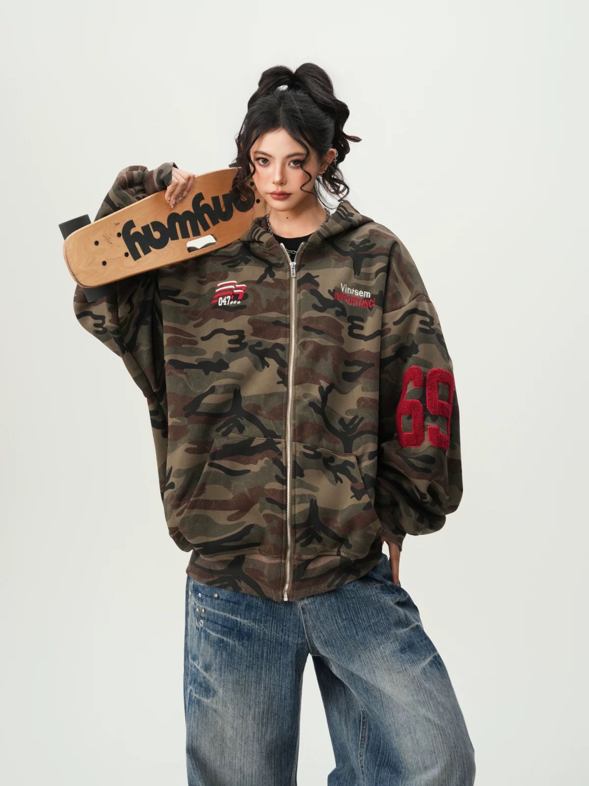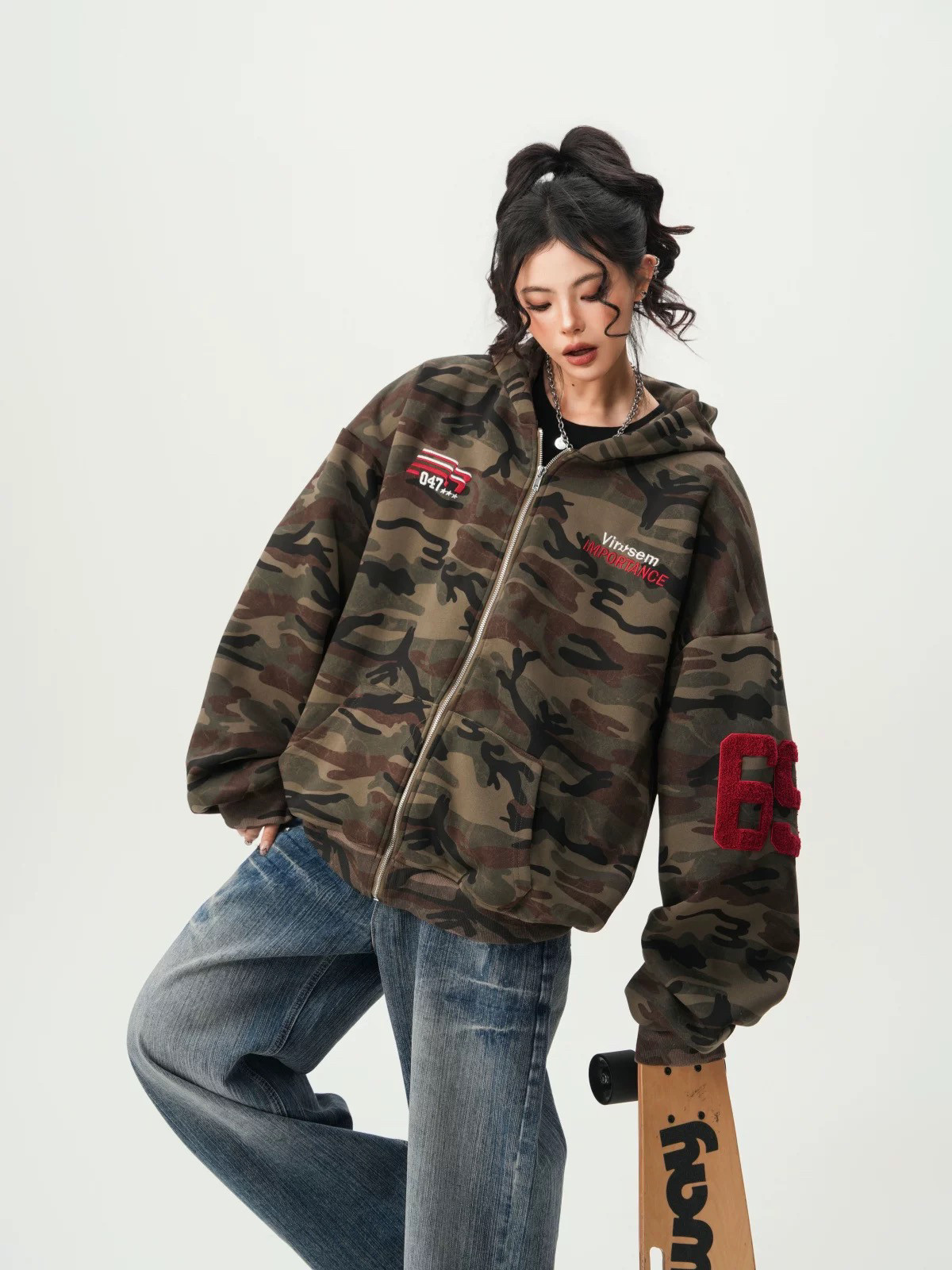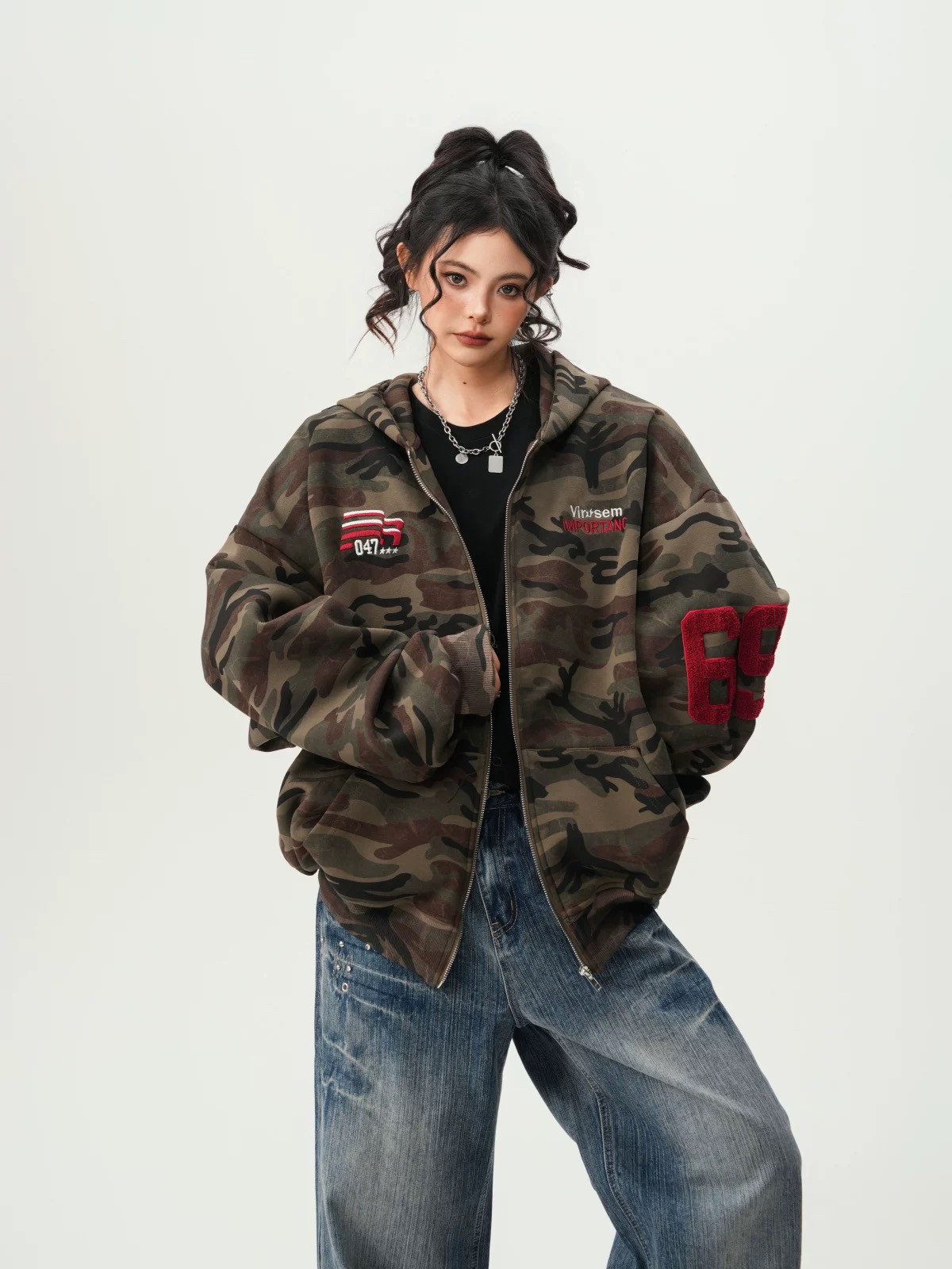 American High Street Camouflage Cardigan Hooded Sweatshirt for Men and Women, Spring and Autumn Trendy Brand Couple Zipper Jacket, Loose and Versatile Top