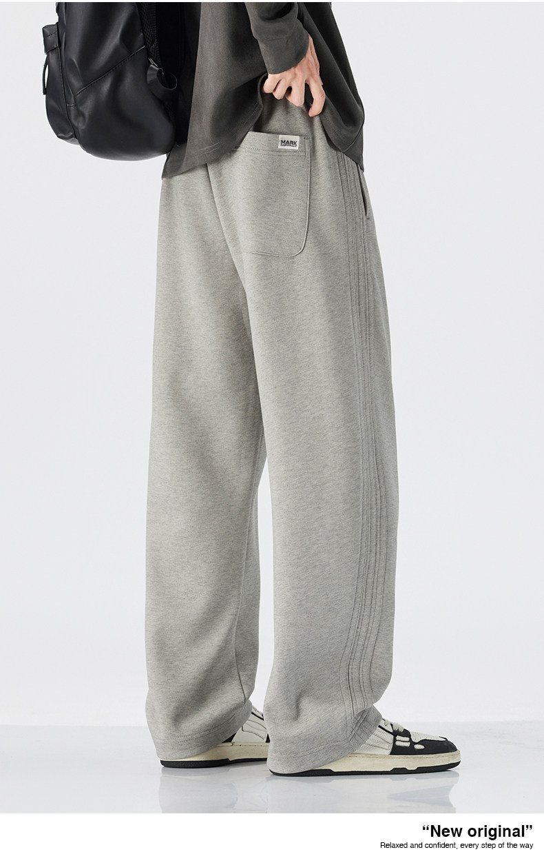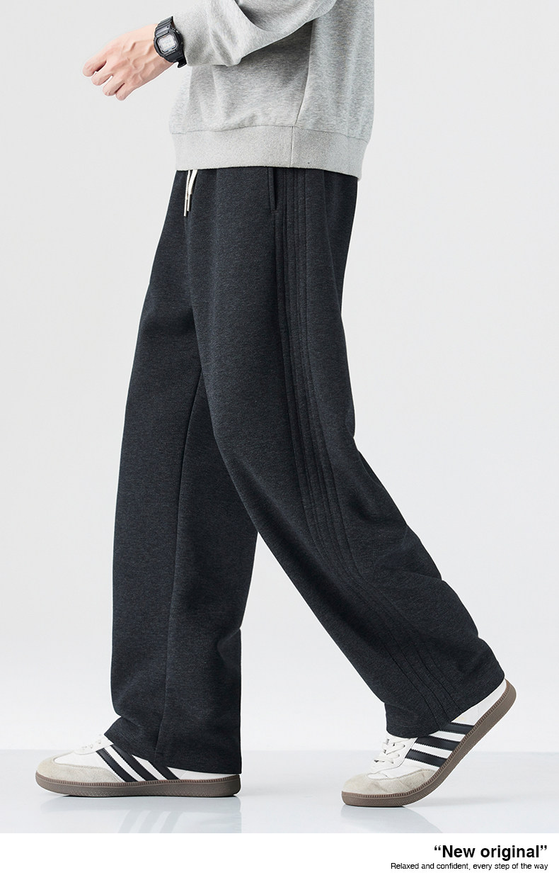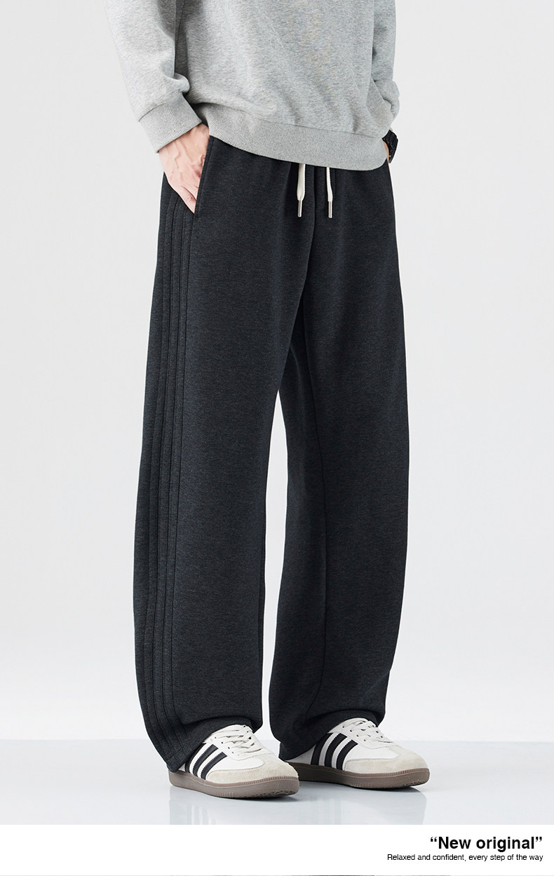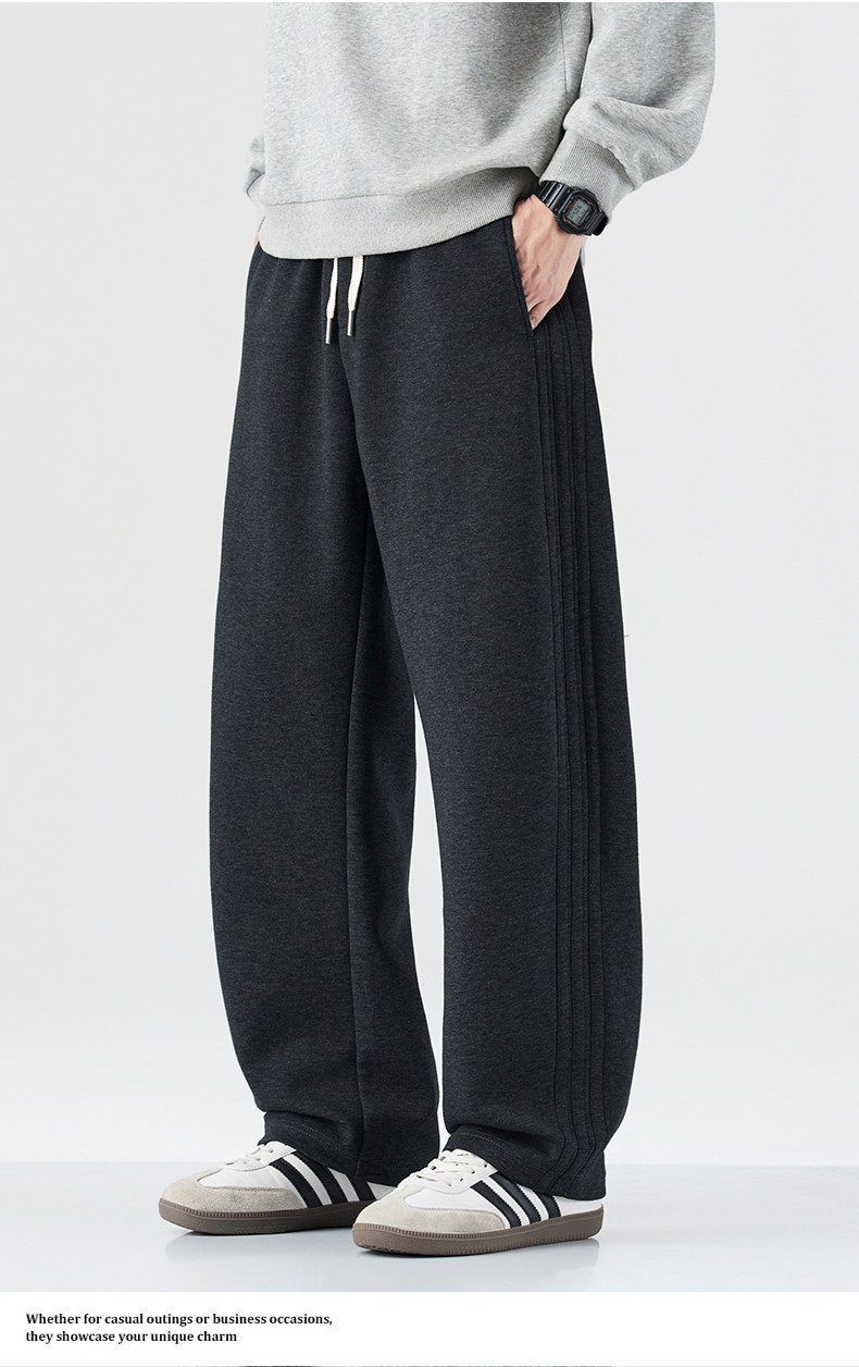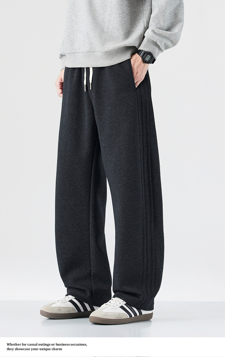 Mark Hua Fei Men's Sweatpants for Autumn and Winter, Fleece-Lined, Trendy Striped, High-End Vintage Loose Drawstring Sports Casual Pants