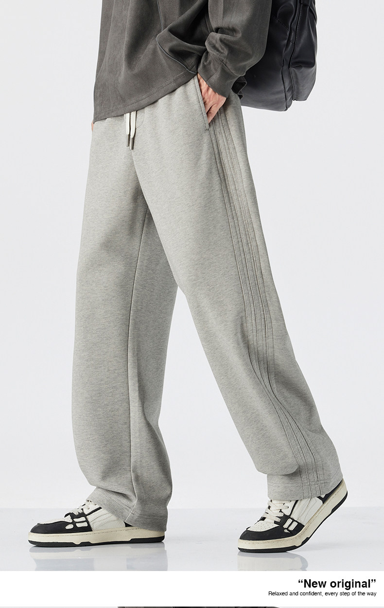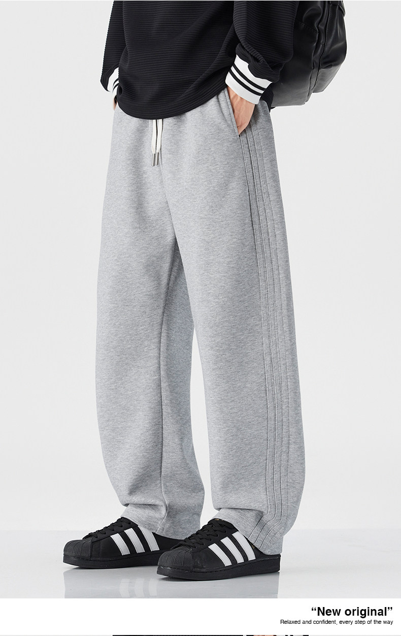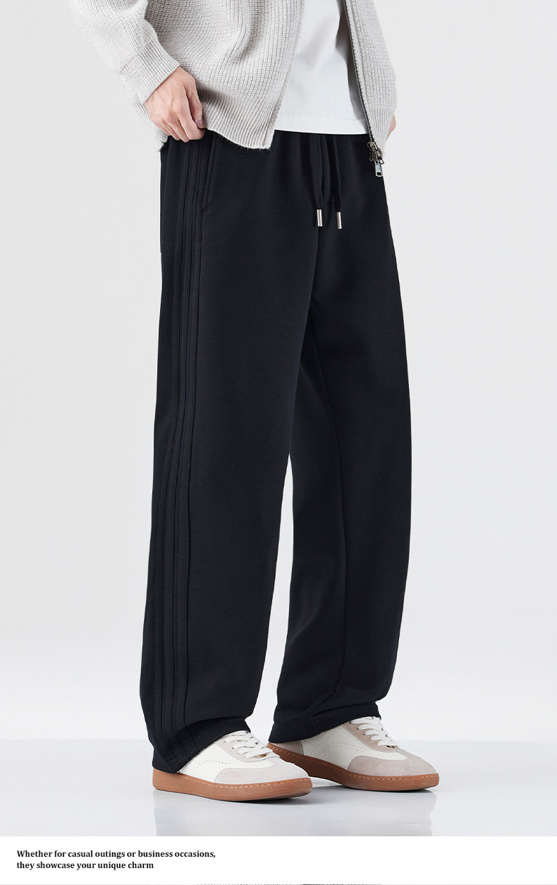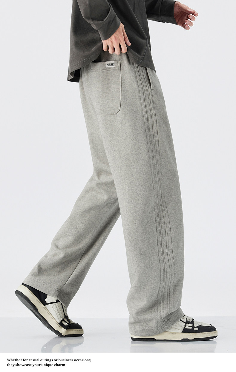Mark Hua Fei Men's Sweatpants for Autumn and Winter, Fleece-Lined, Trendy Striped, High-End Vintage Loose Drawstring Sports Casual Pants