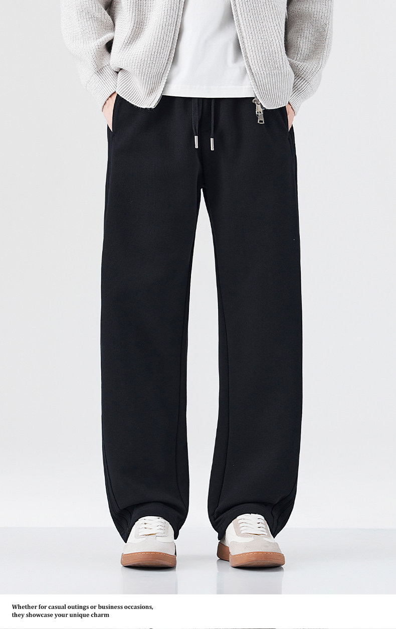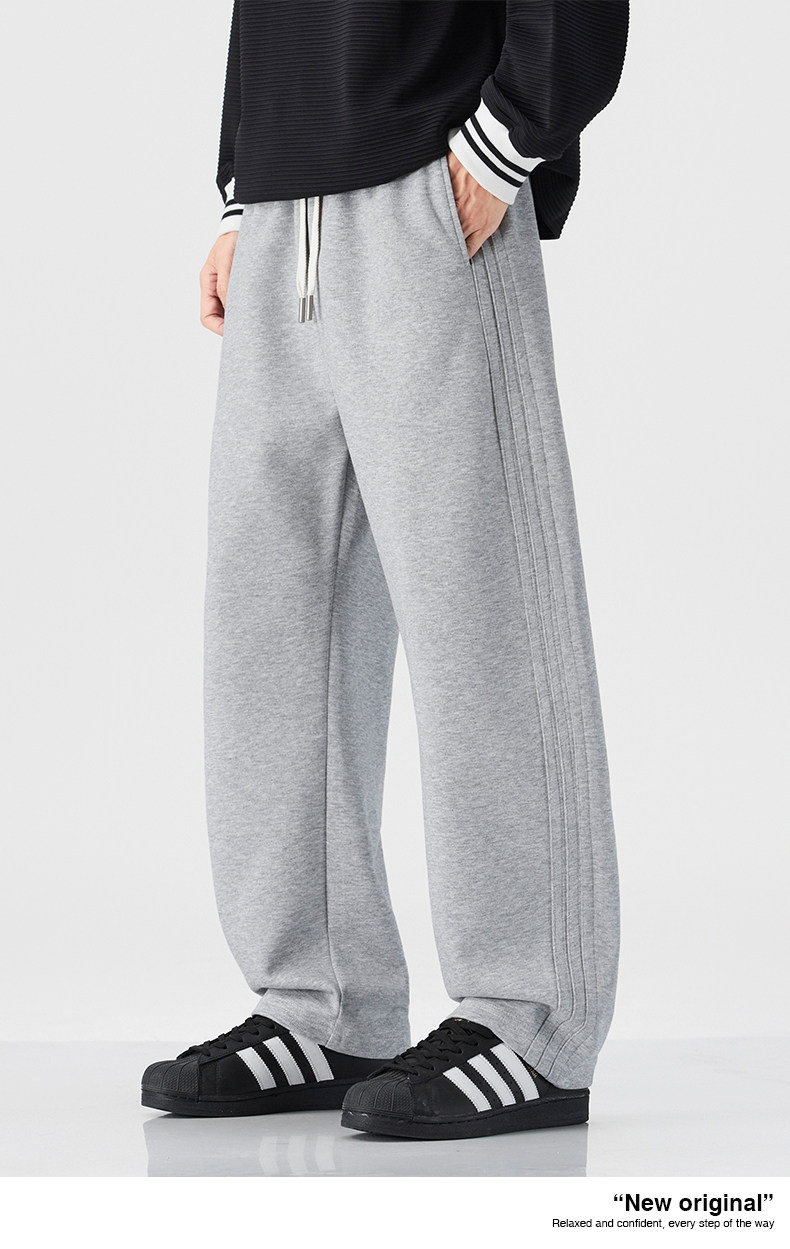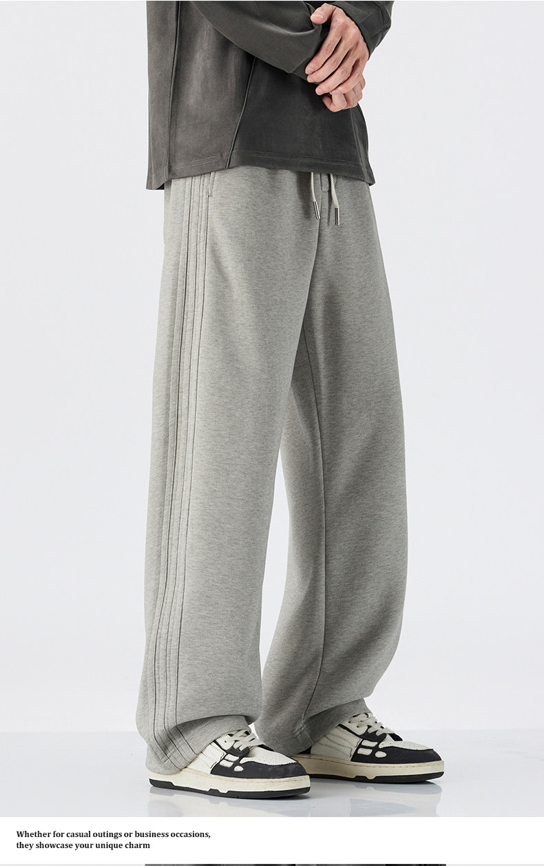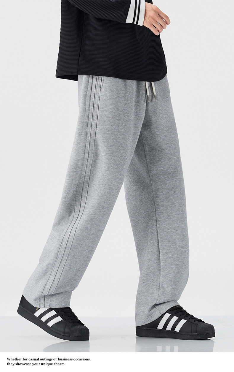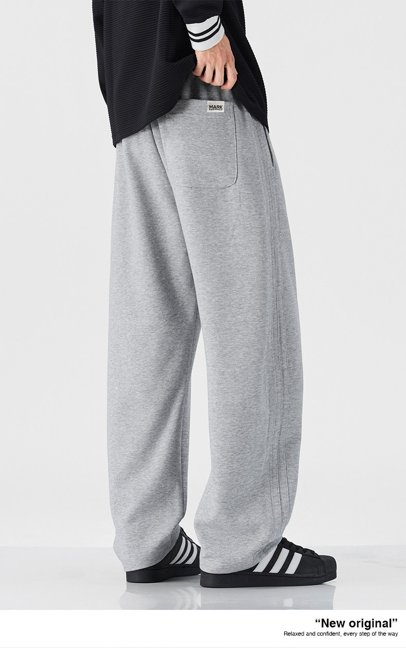 Mark Hua Fei Men's Sweatpants for Autumn and Winter, Fleece-Lined, Trendy Striped, High-End Vintage Loose Drawstring Sports Casual Pants