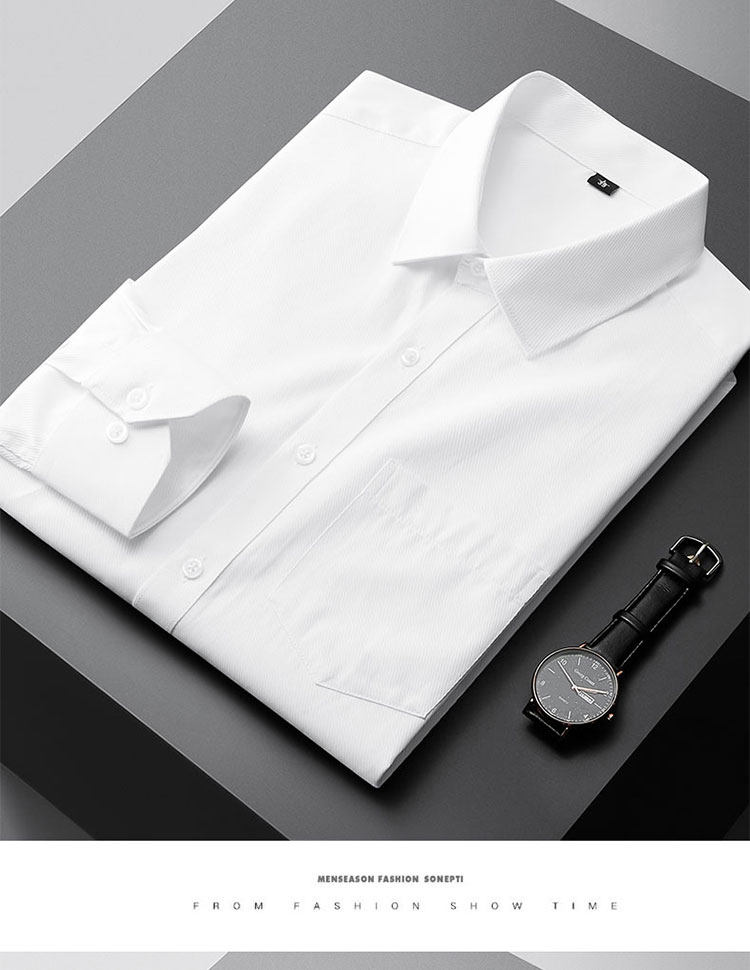 Romon White Long-Sleeved Men's Wrinkle-Resistant Formal Shirt with Fleece Lining, Thick and Warm, Business Non-Iron Wedding Suit Inner Shirt