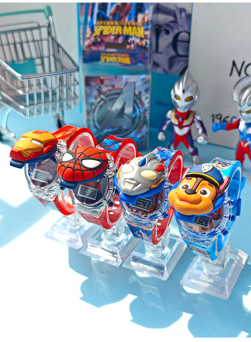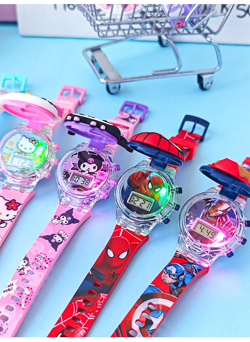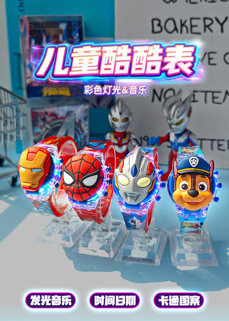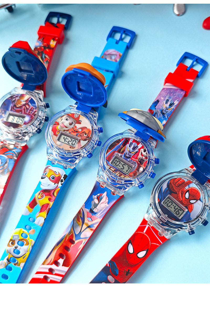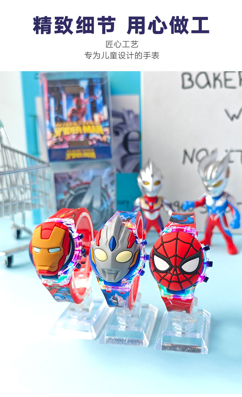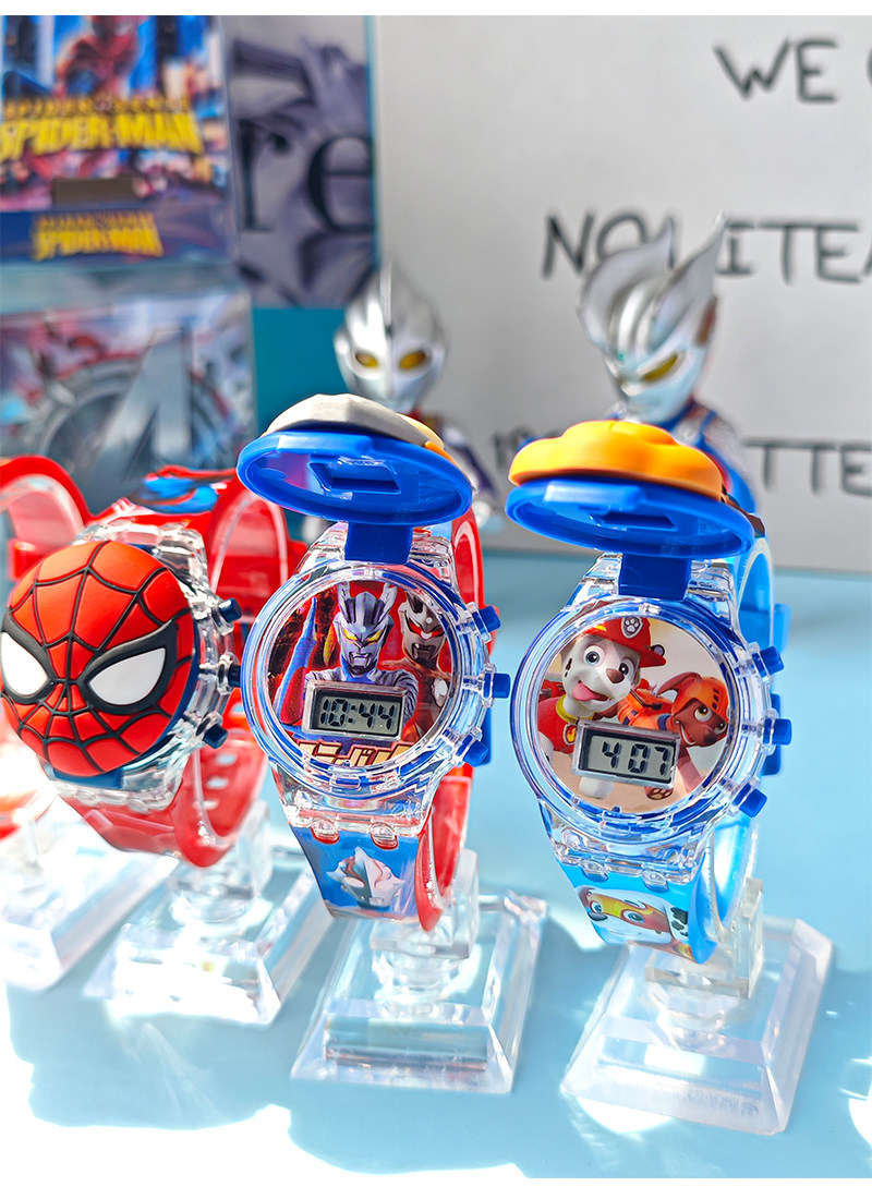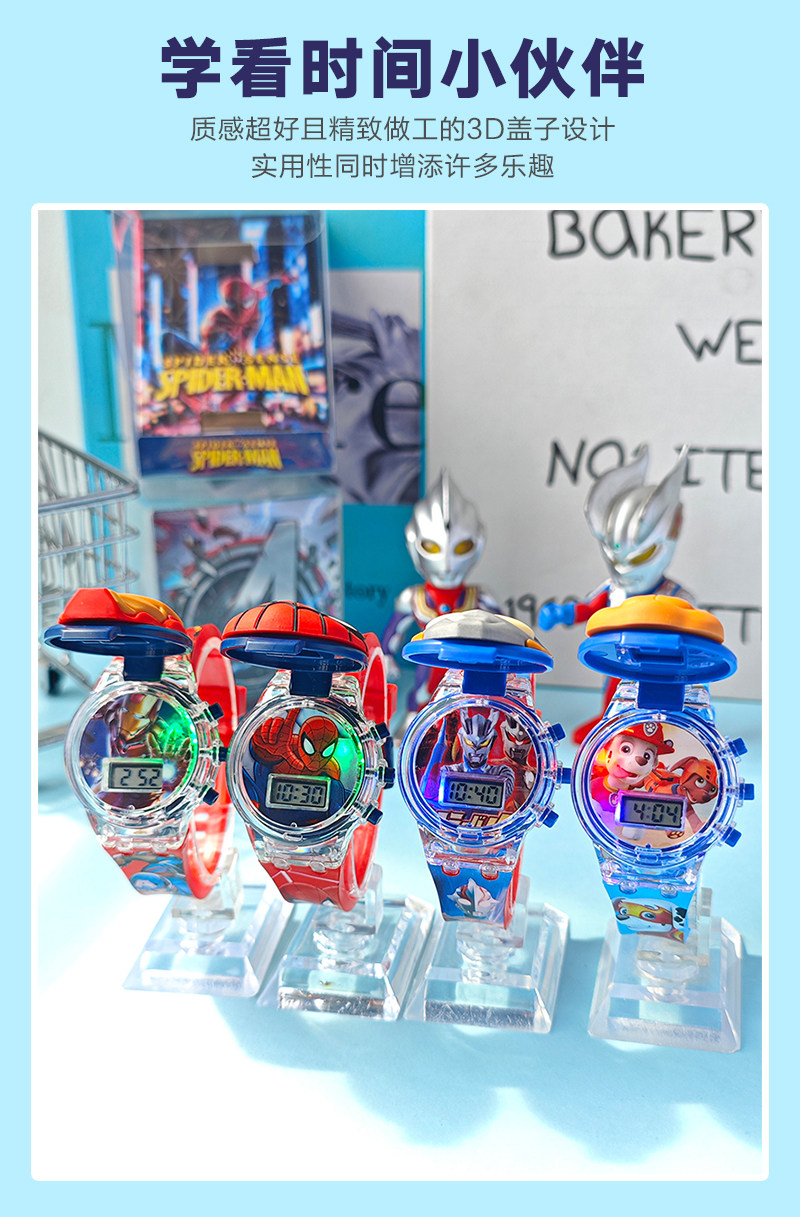 Flip Cover Music Light-Up Electronic Watch Ultraman Zero Spider-Man Archie Cartoon Anime Electronic Watch Toy