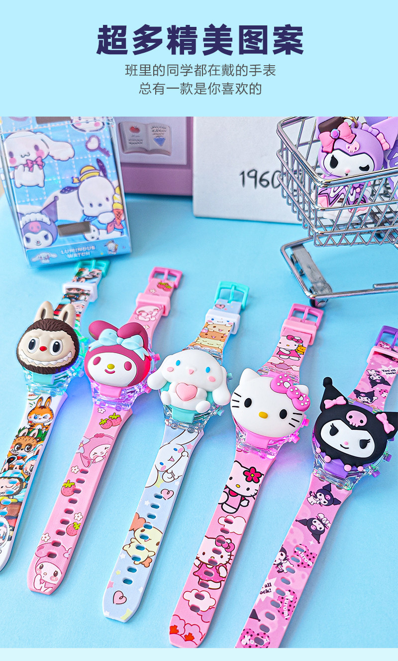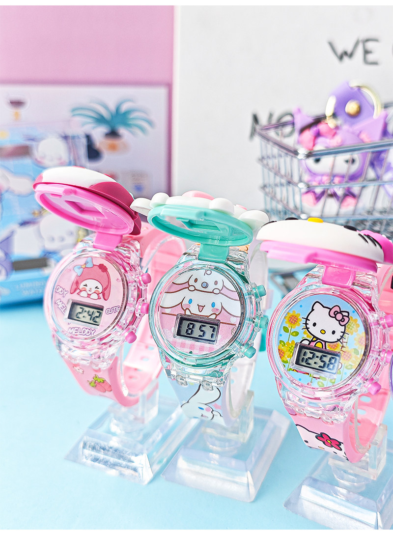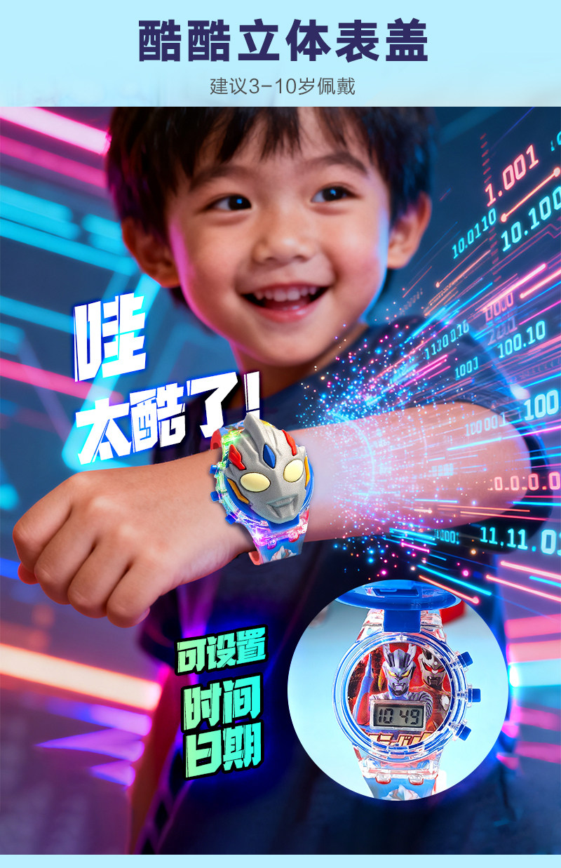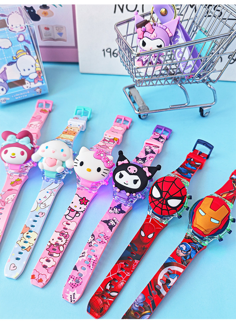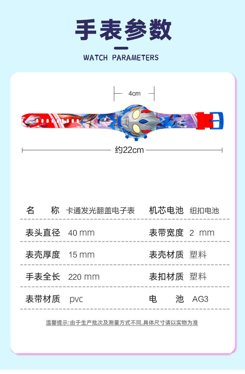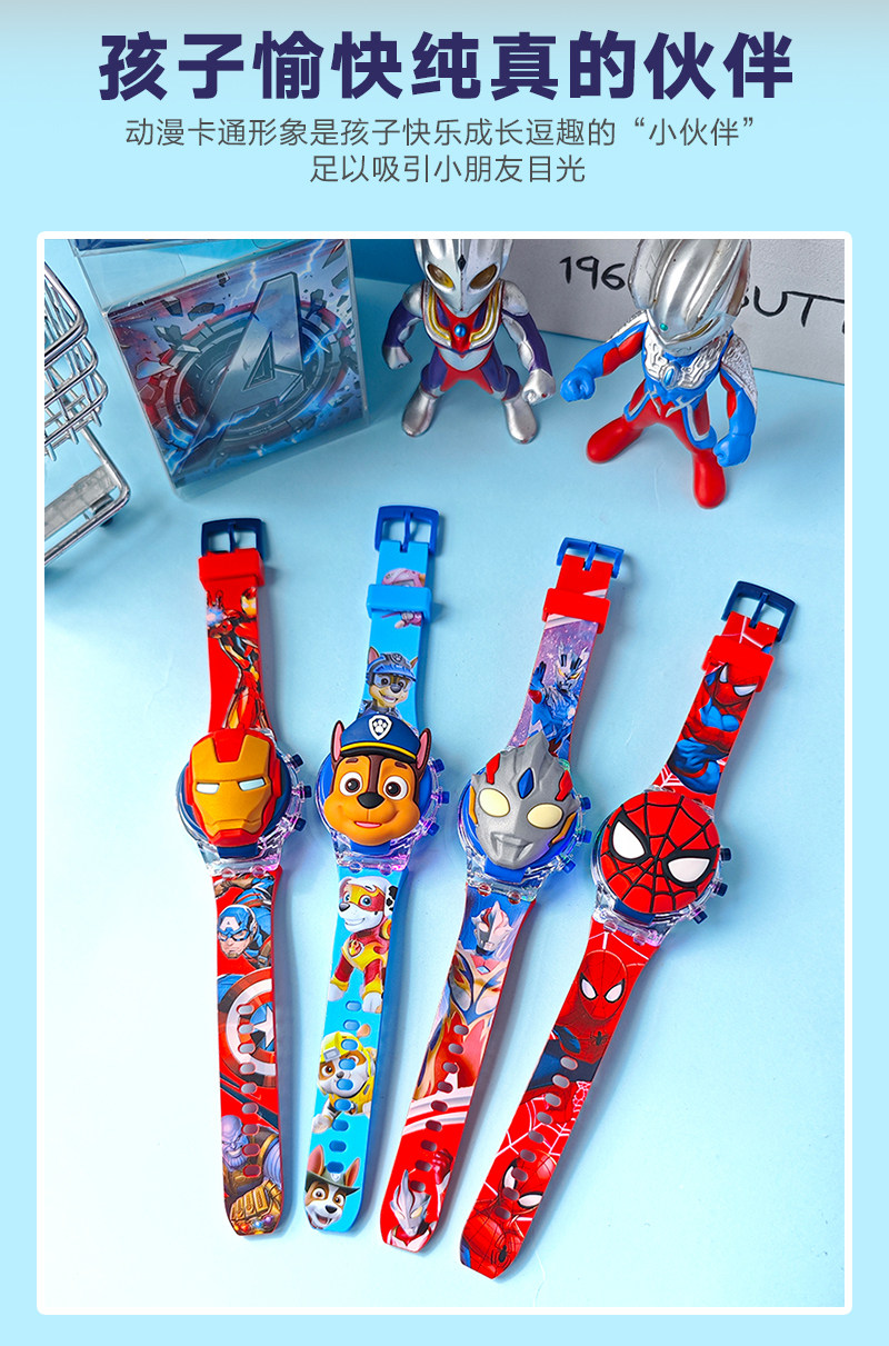 Flip Cover Music Light-Up Electronic Watch Ultraman Zero Spider-Man Archie Cartoon Anime Electronic Watch Toy