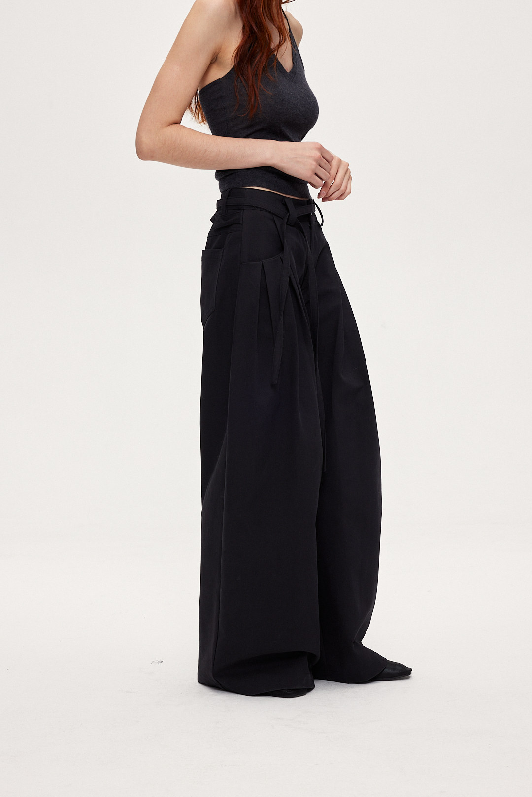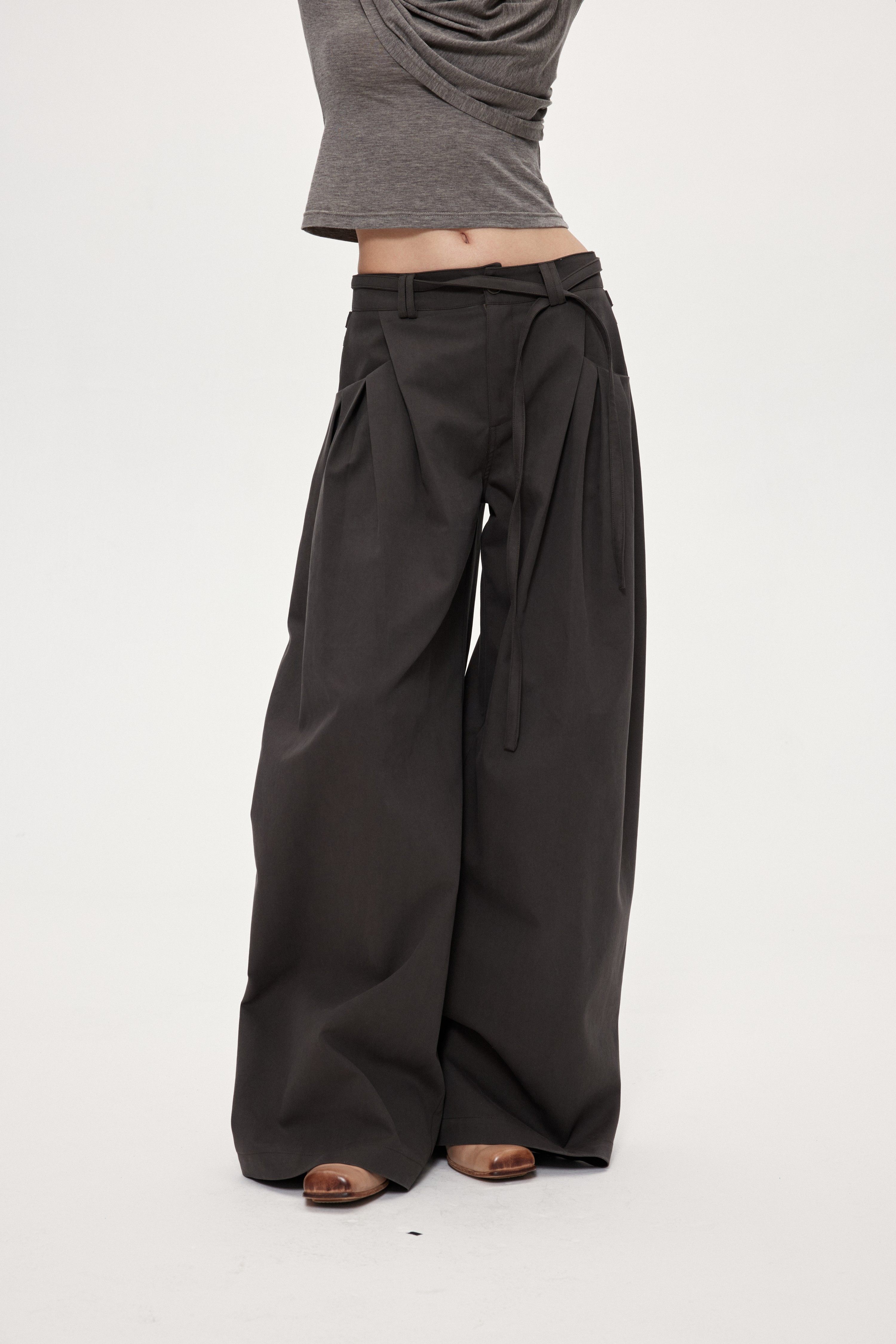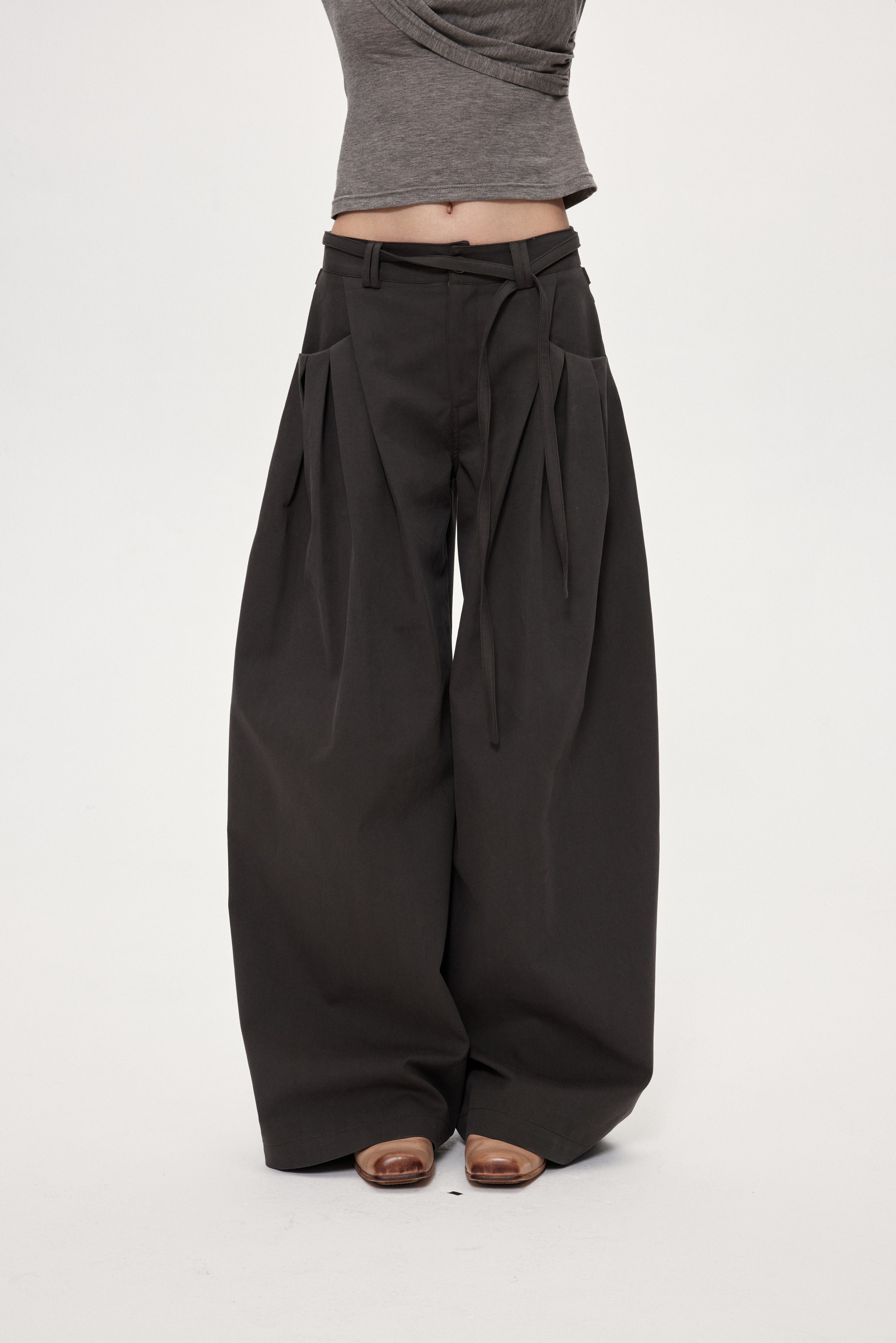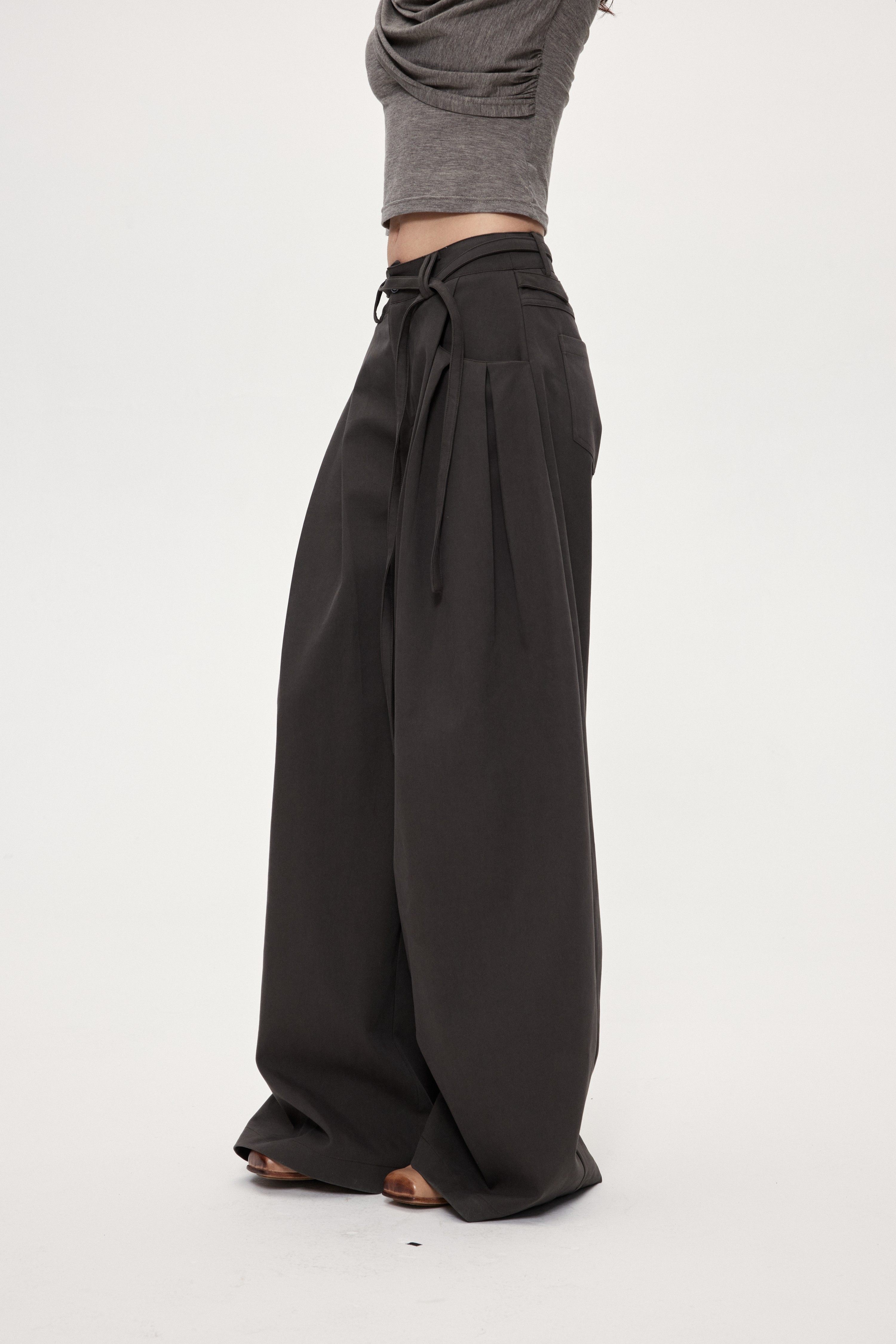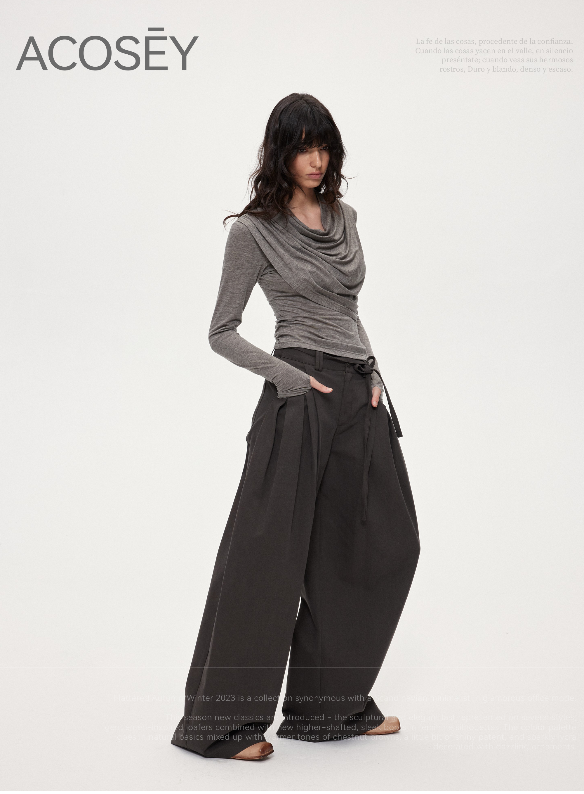 Acosey 25Fw Design-Inspired Waist Tie Pocket Pleated Loose Casual Wide-Leg Straight Pants