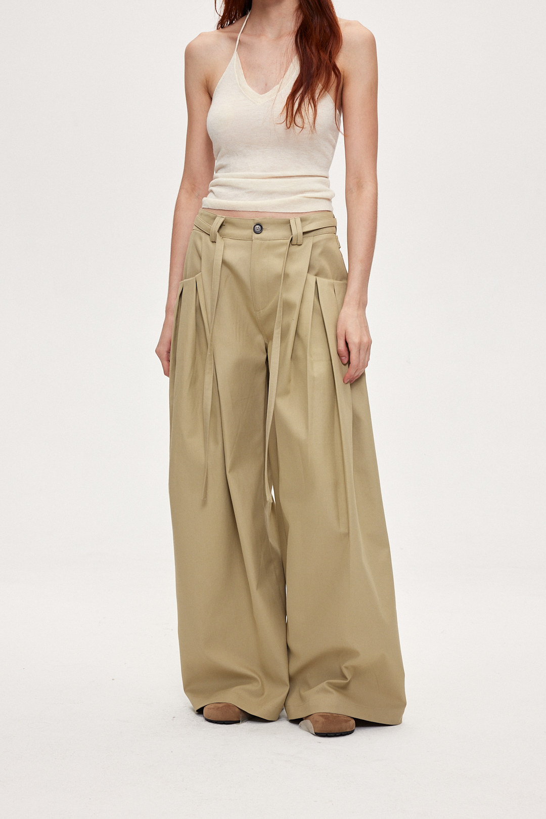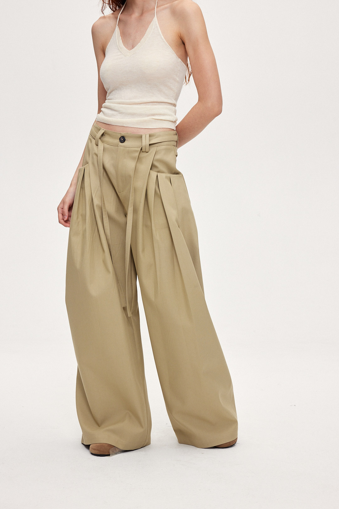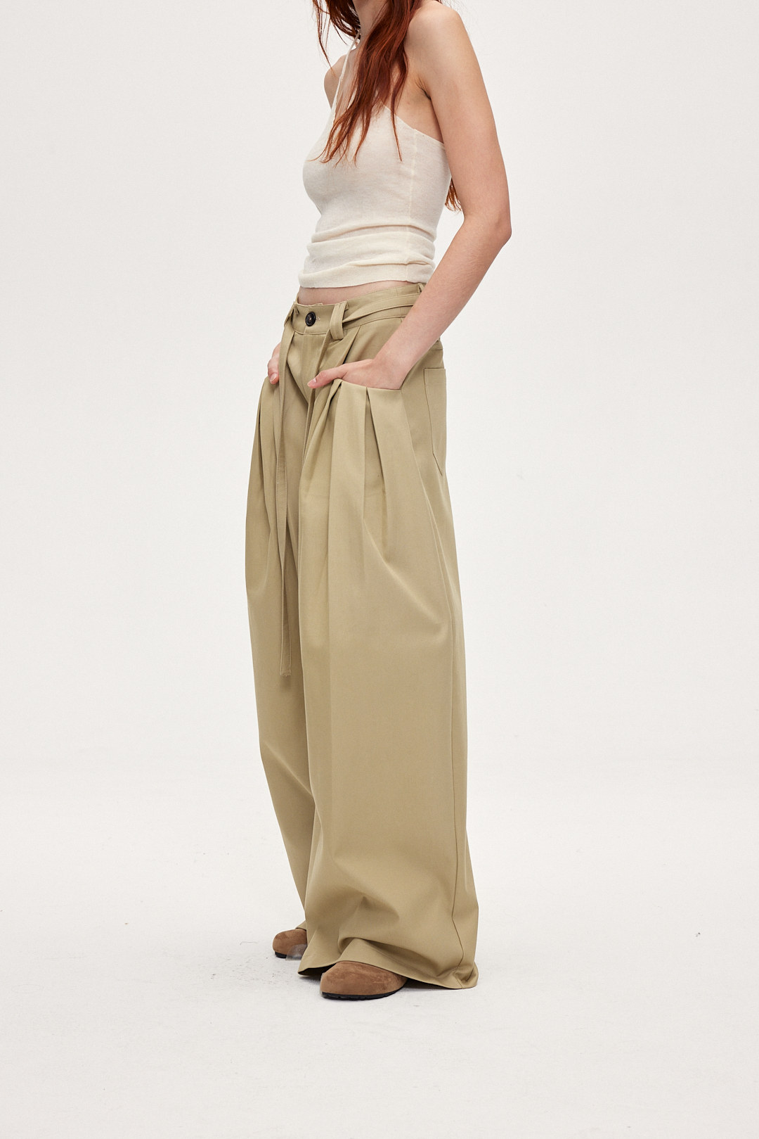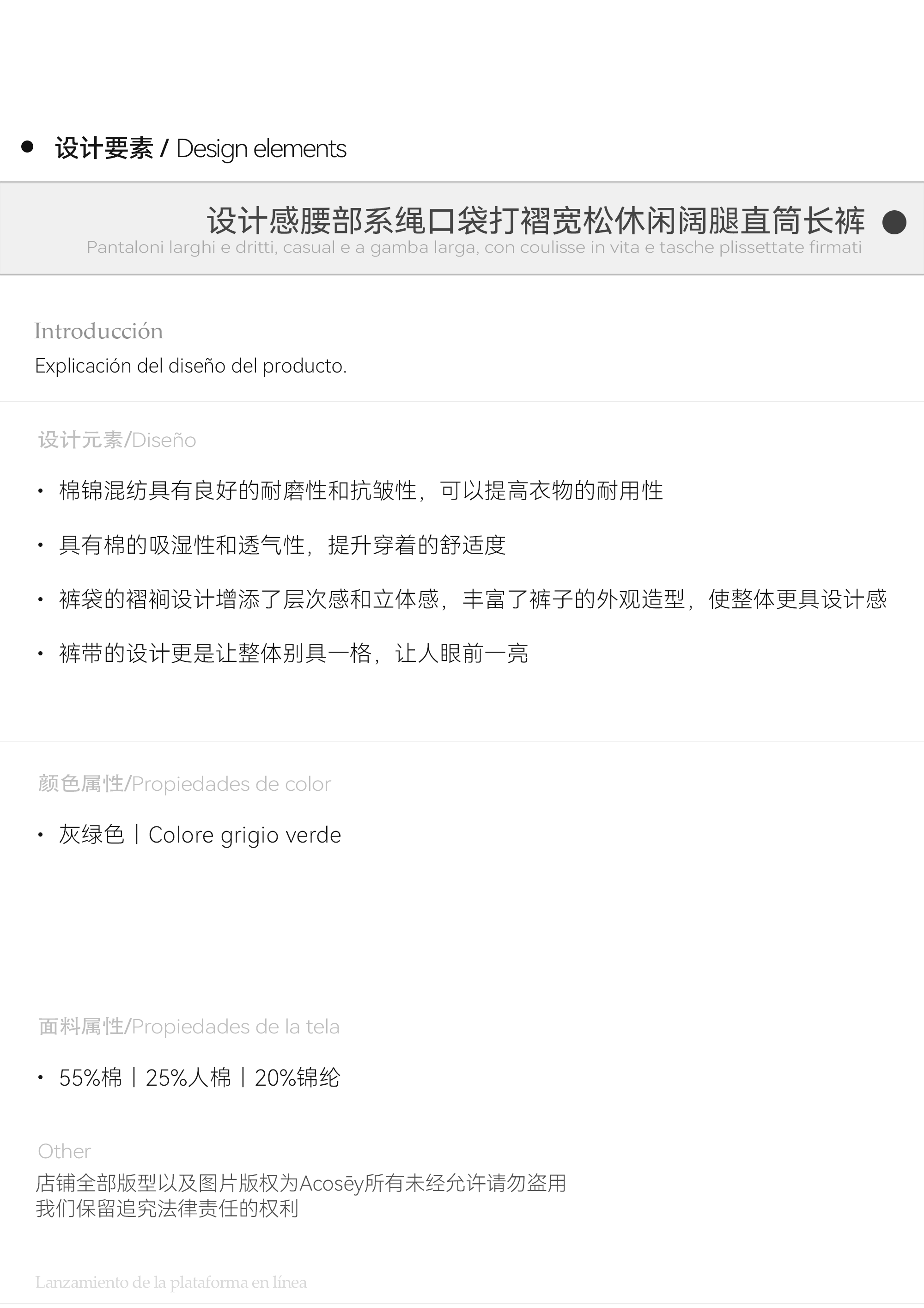 Acosey 25Fw Design-Inspired Waist Tie Pocket Pleated Loose Casual Wide-Leg Straight Pants