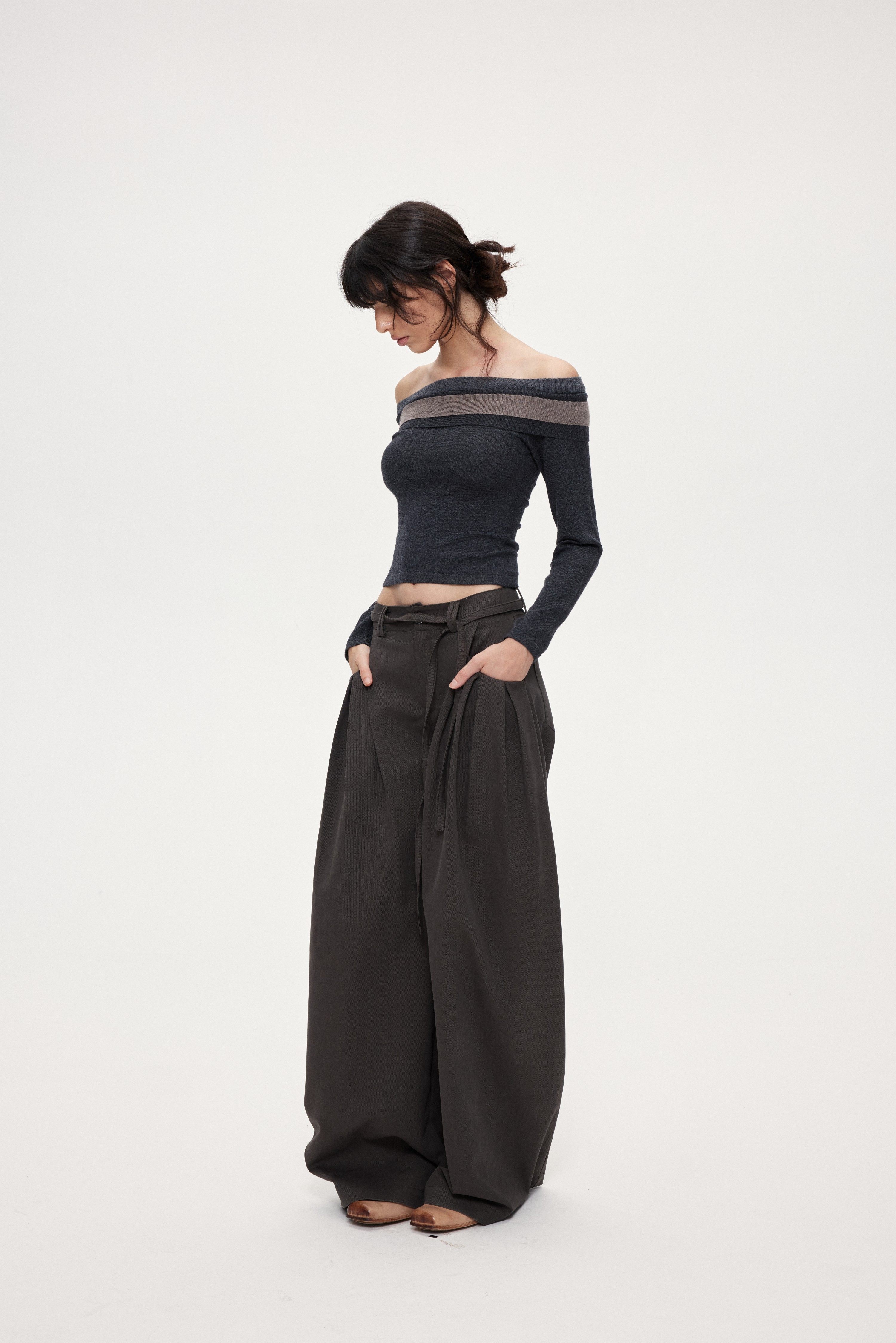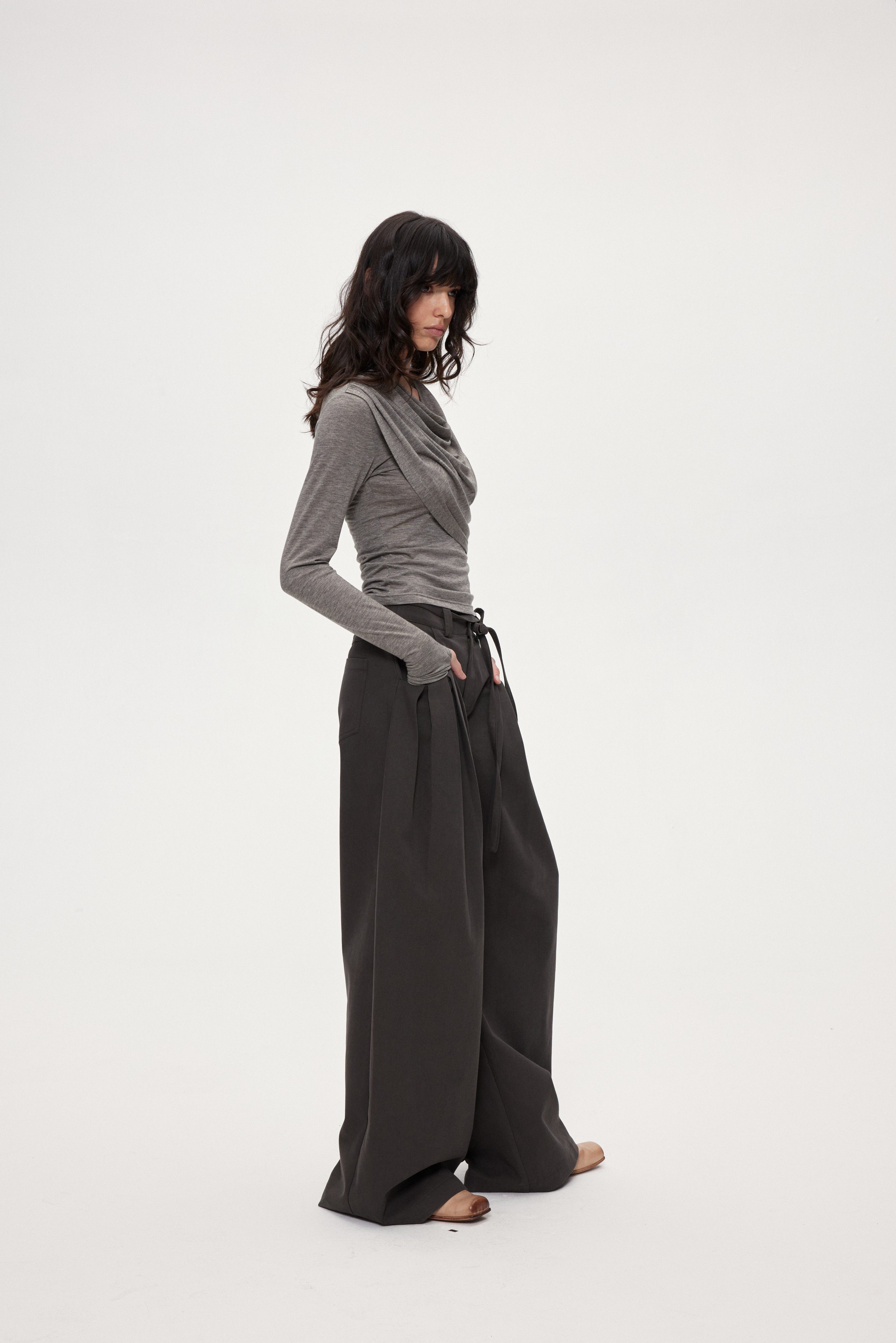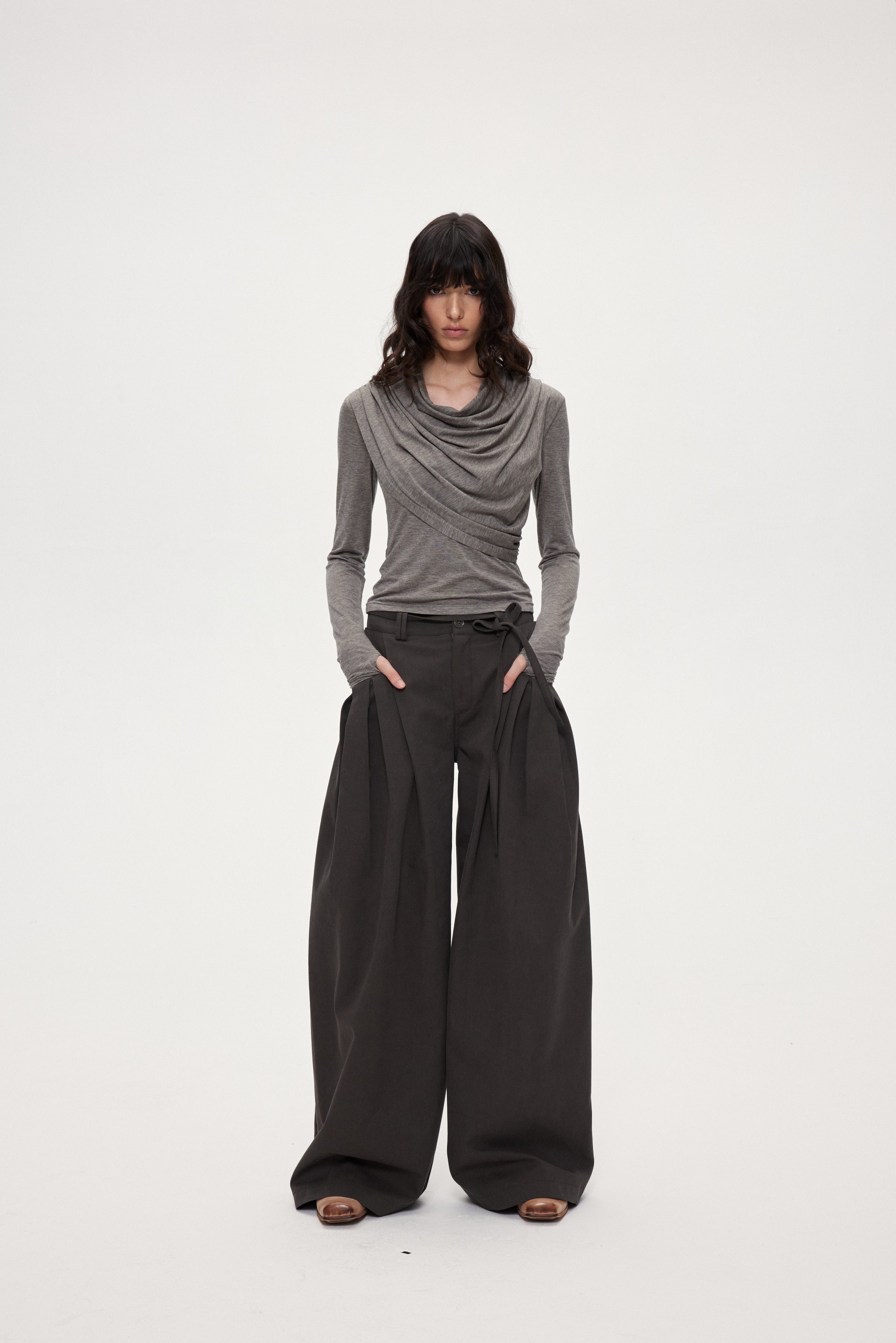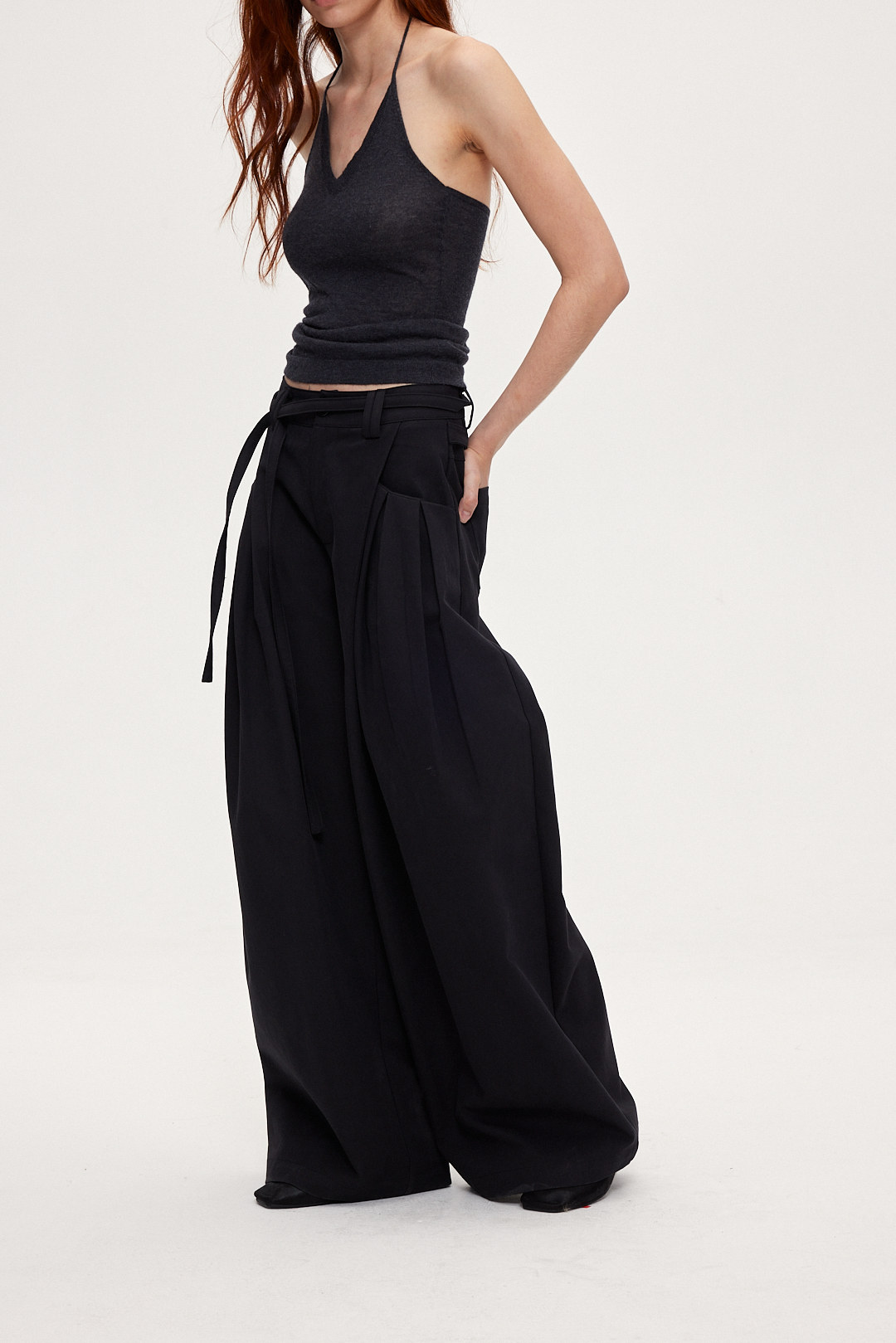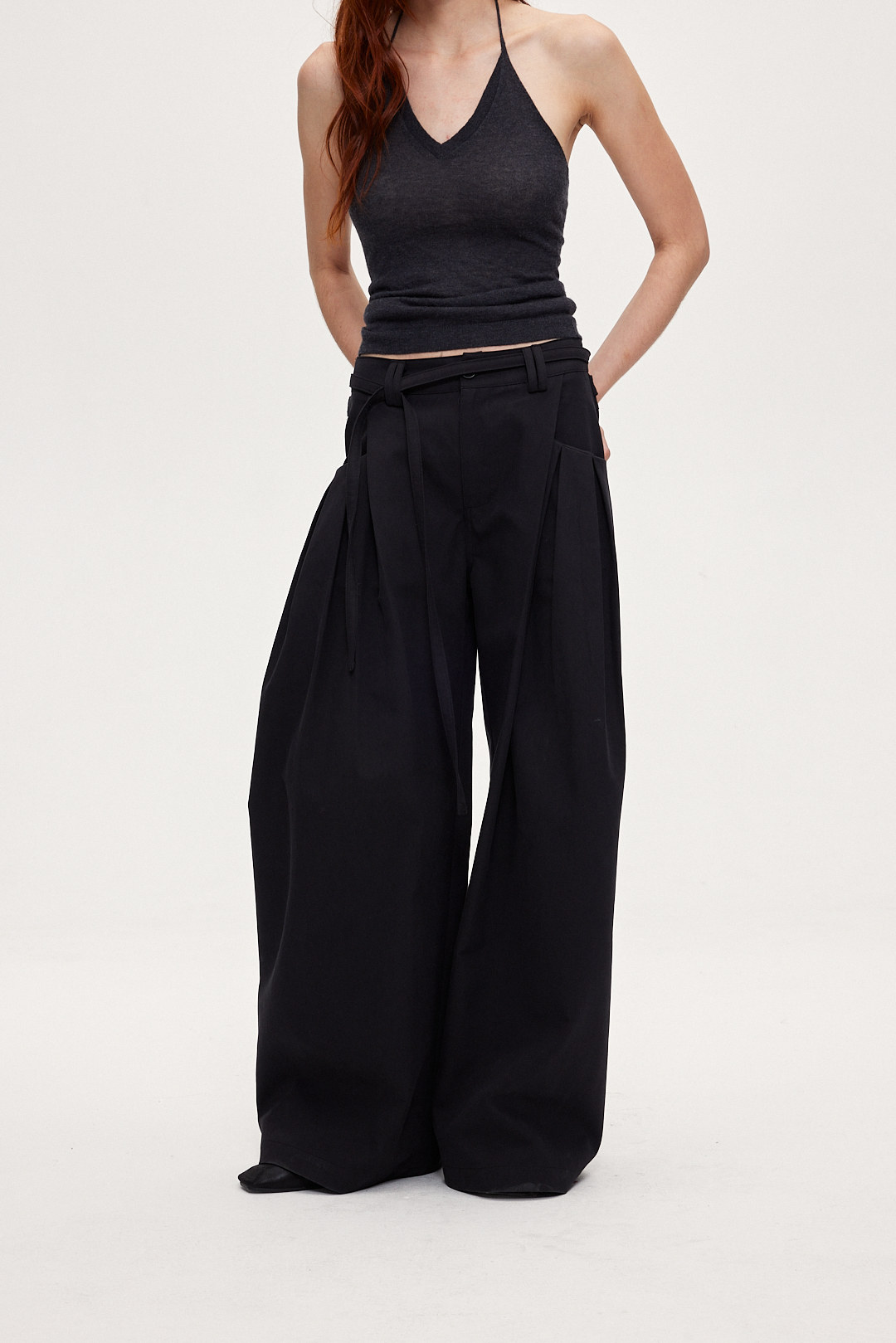 Acosey 25Fw Design-Inspired Waist Tie Pocket Pleated Loose Casual Wide-Leg Straight Pants