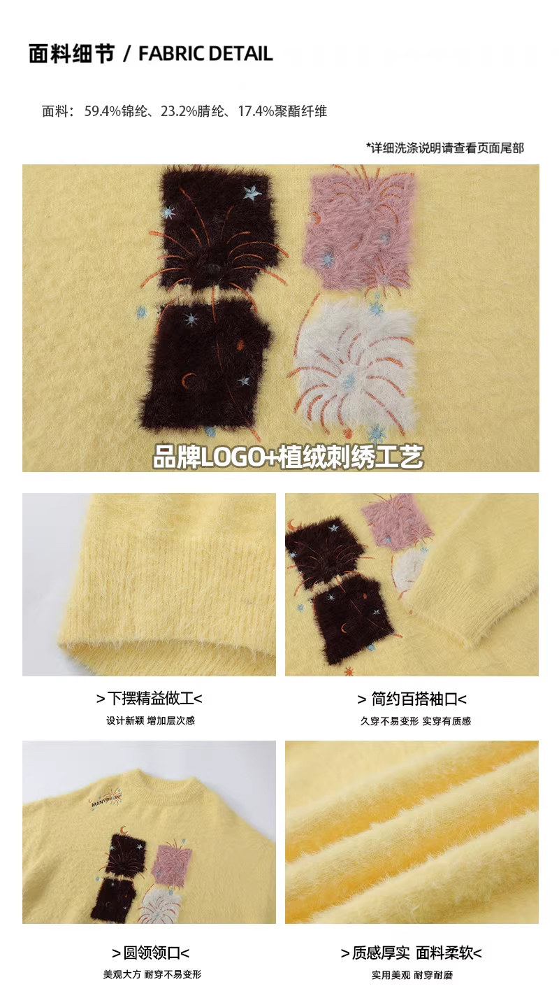 [Celebrity Style] Manyston American High Street Embroidered Sweater for Men, Spring and Autumn Couple's Round Neck Knitwear