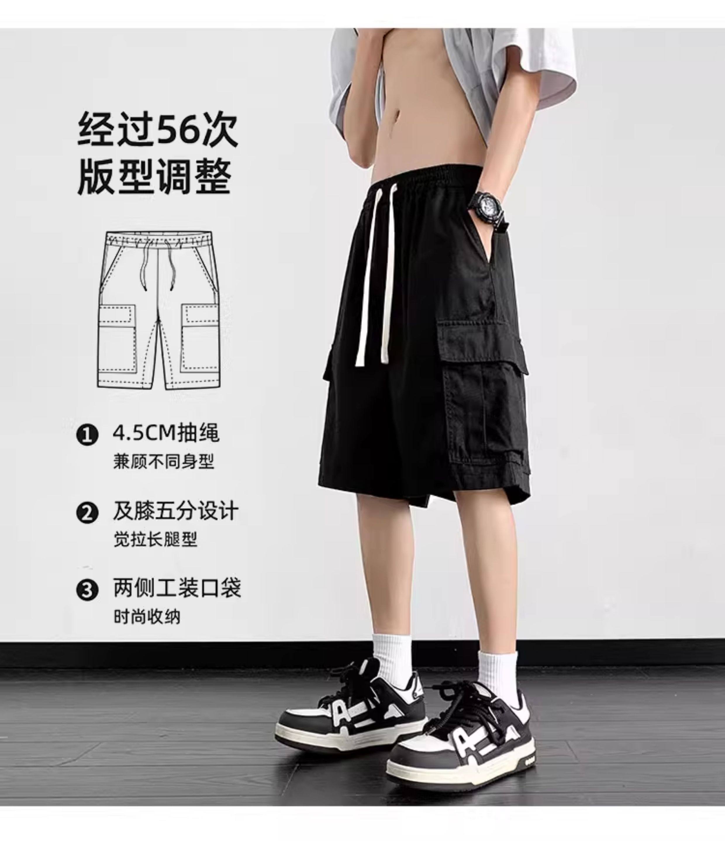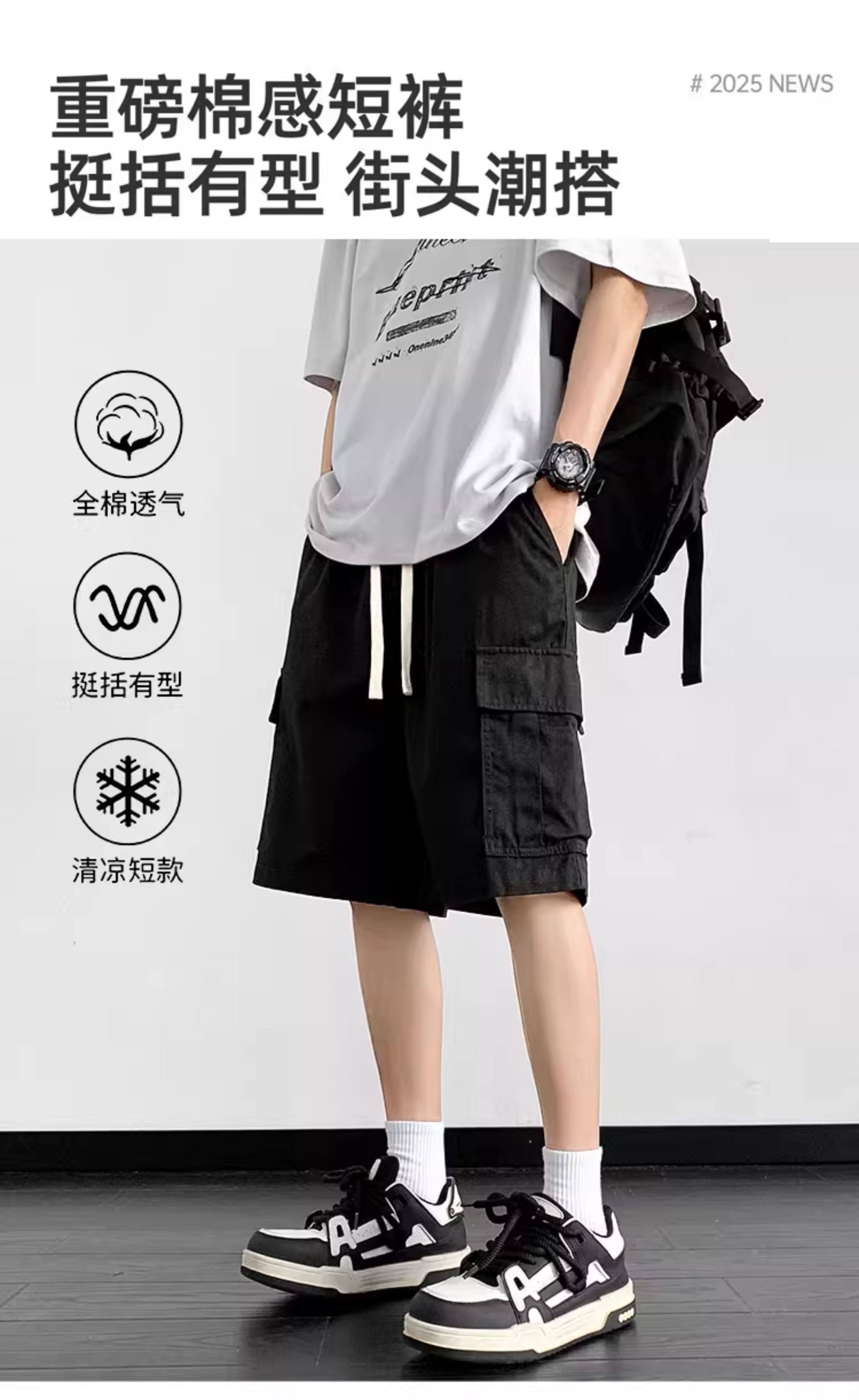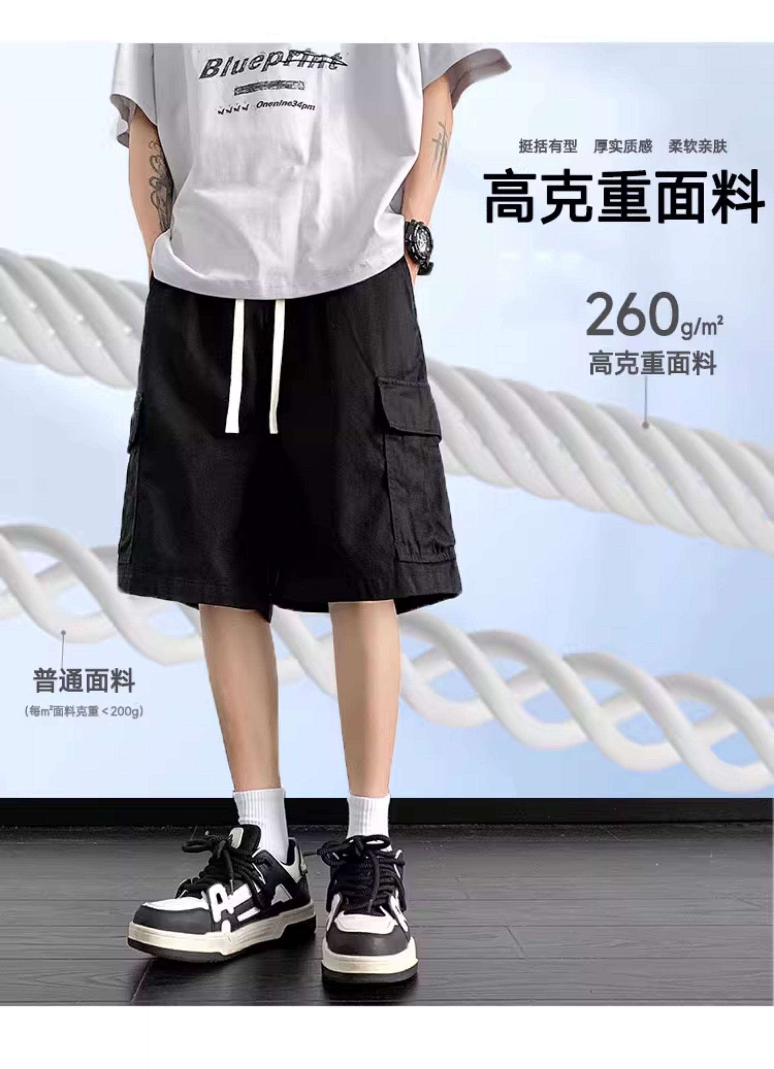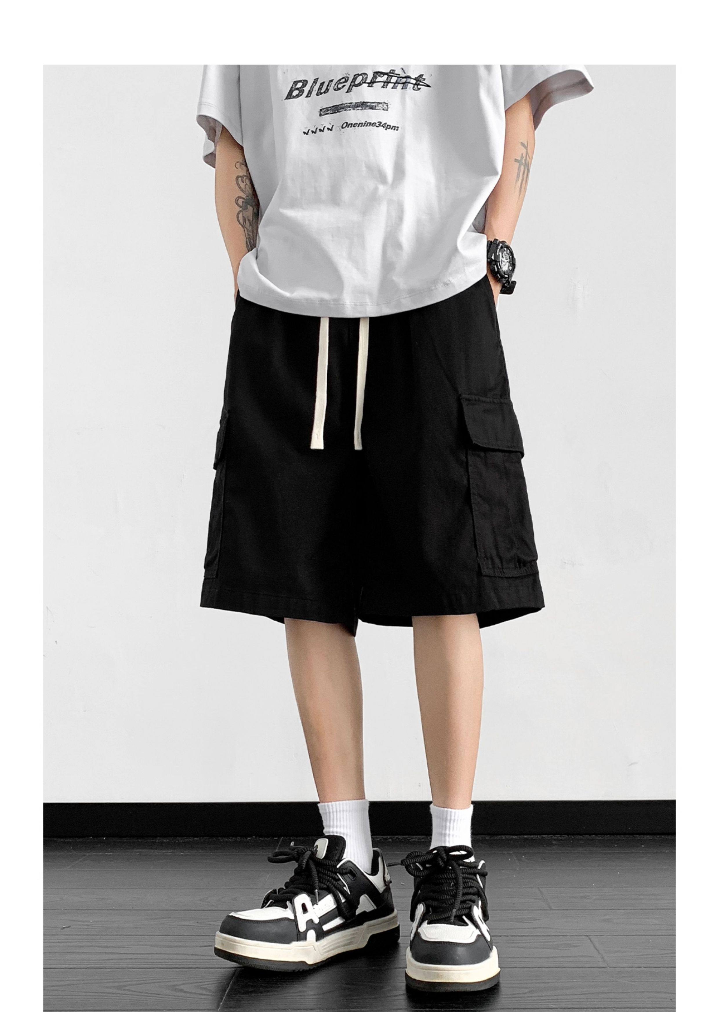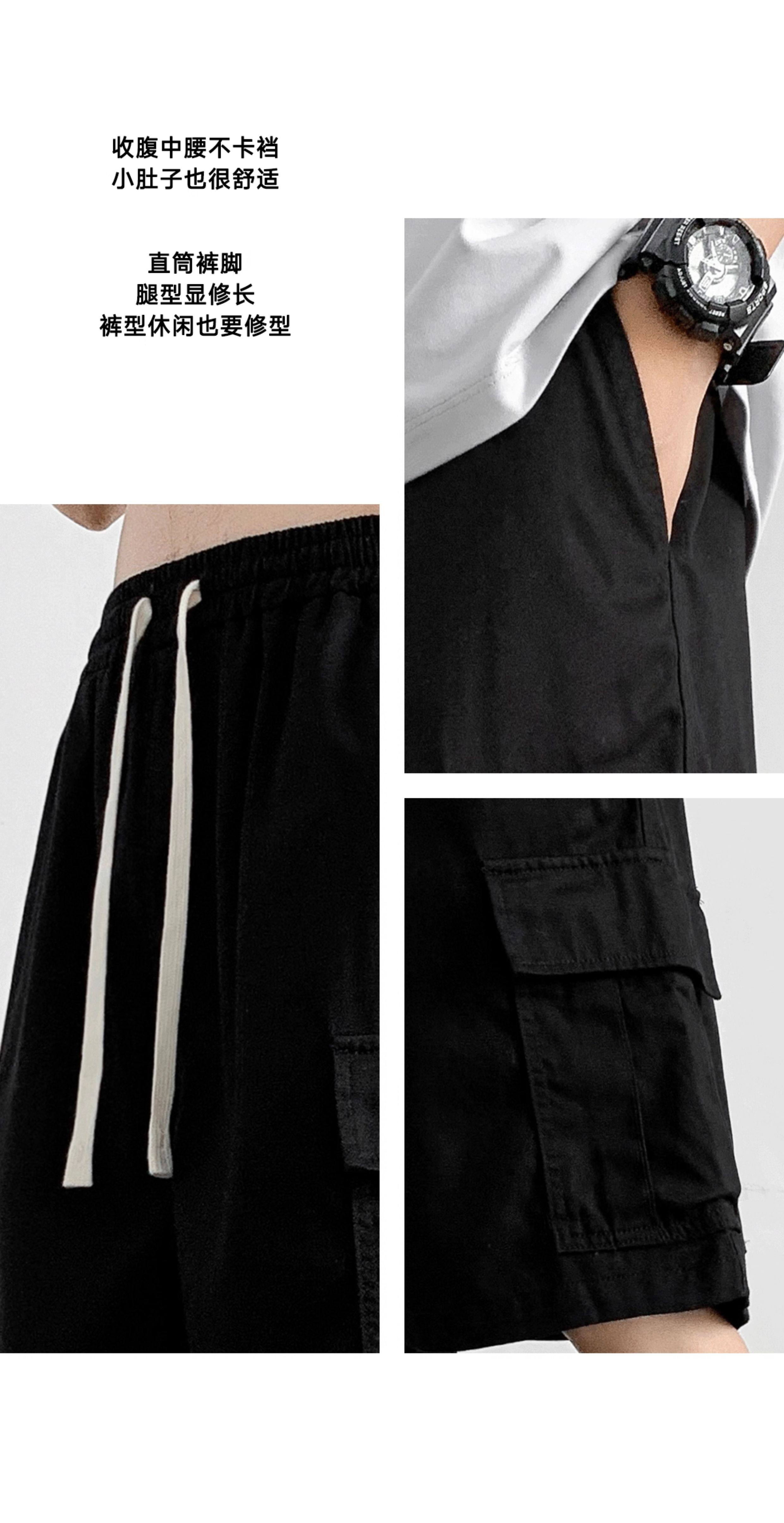 American-Style Work Pants for Men, Summer Thin Loose-Fitting Five-Point Pants, Trendy Black Casual Pants, Straight-Leg Men's Pure Cotton Shorts