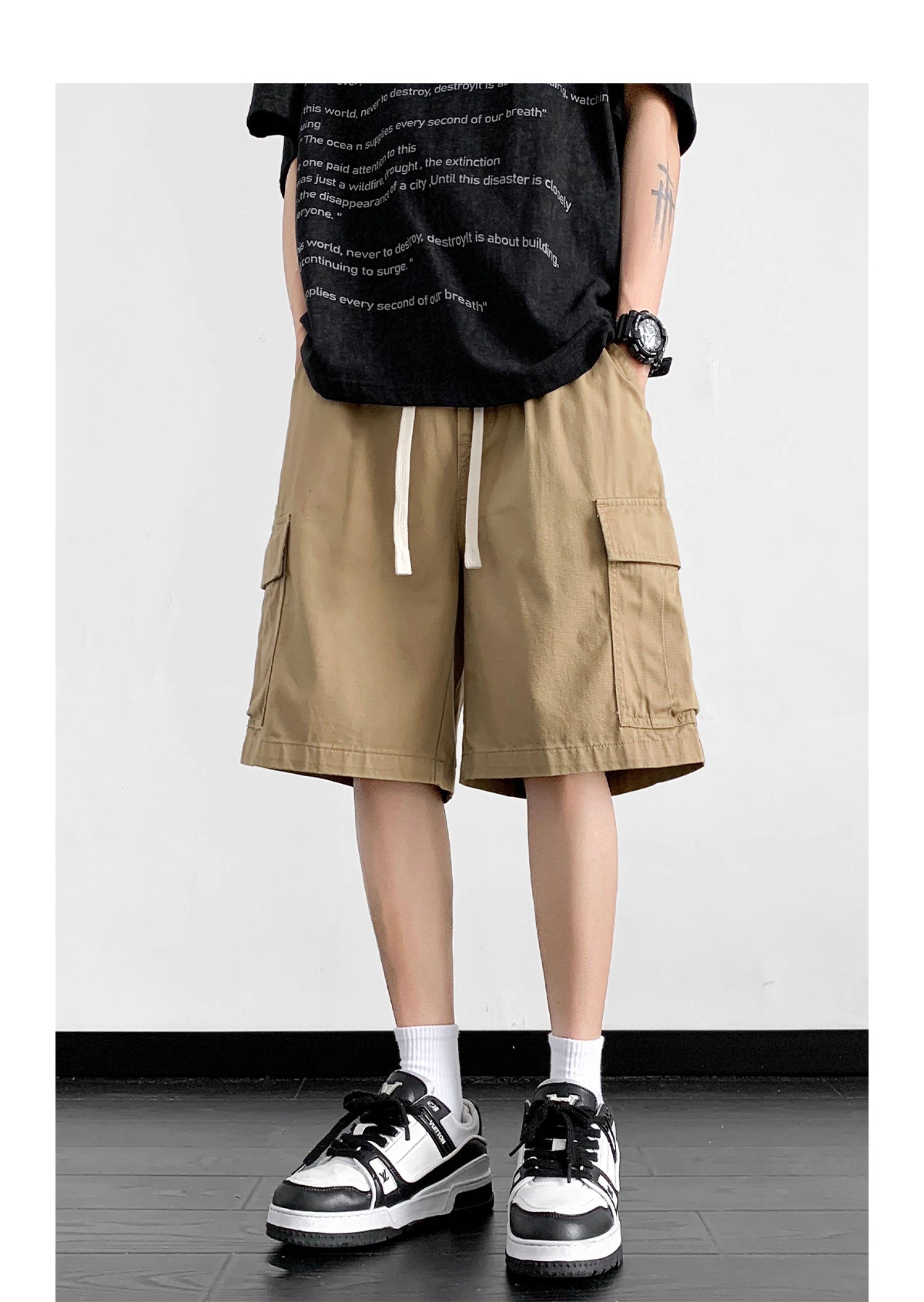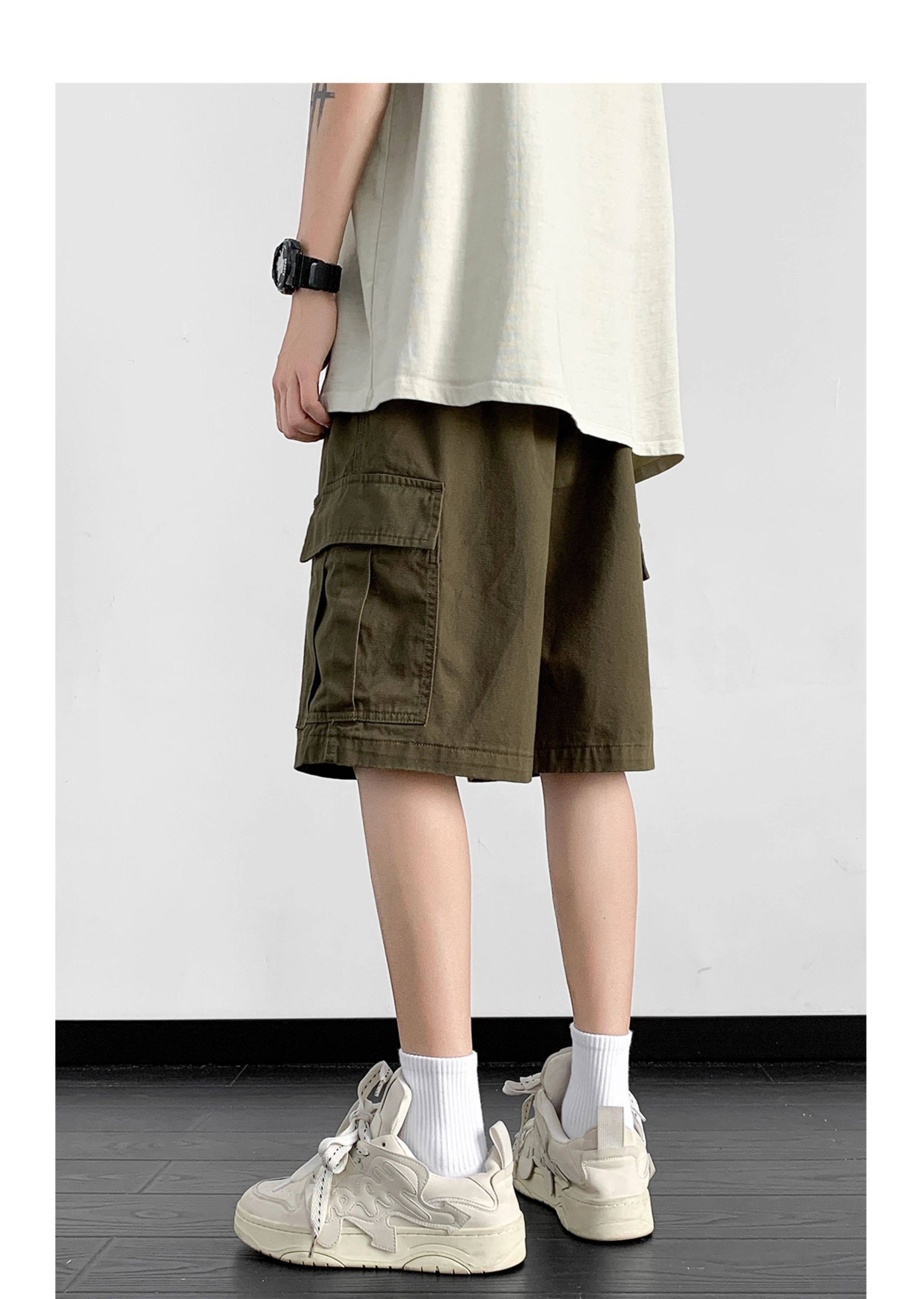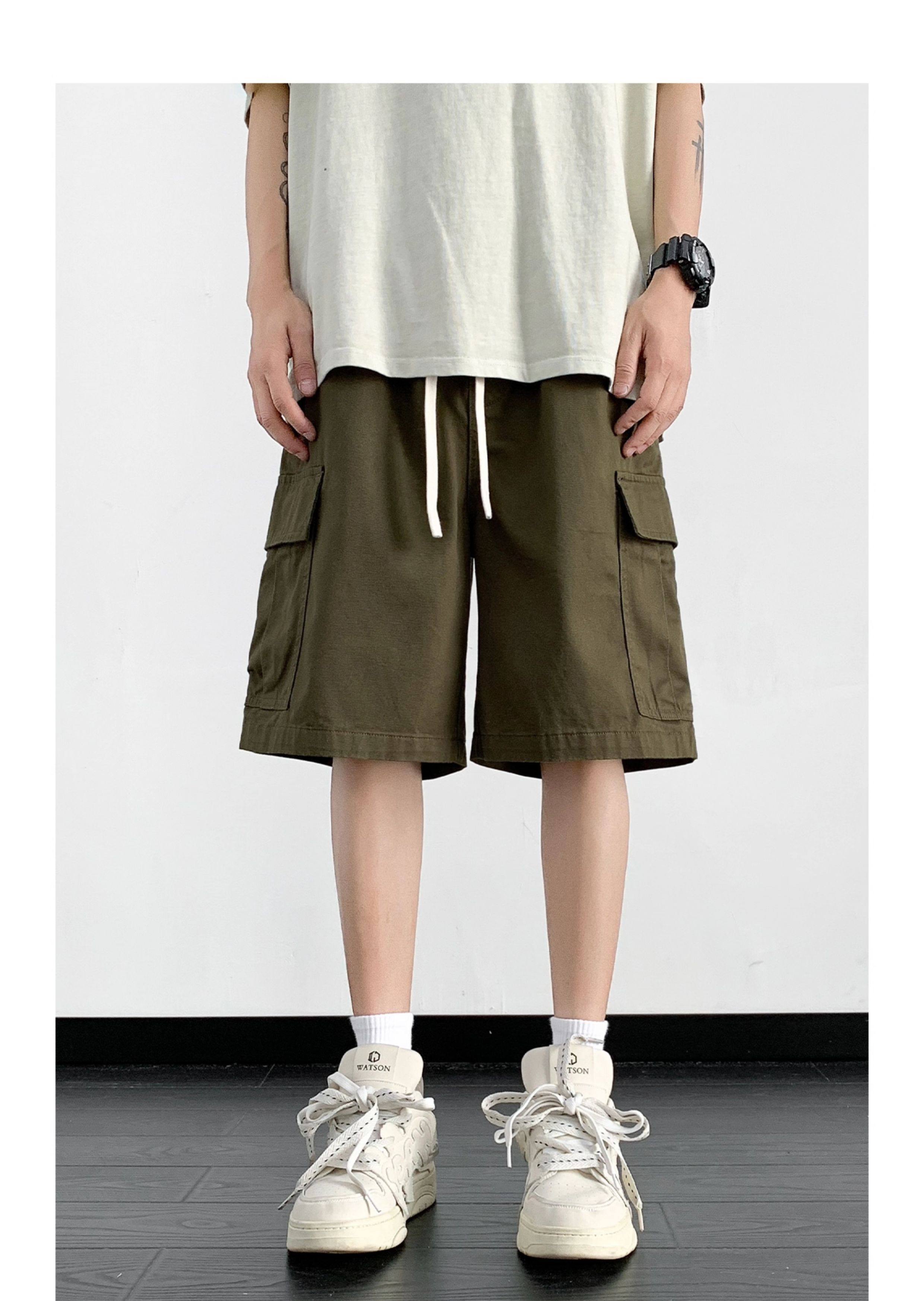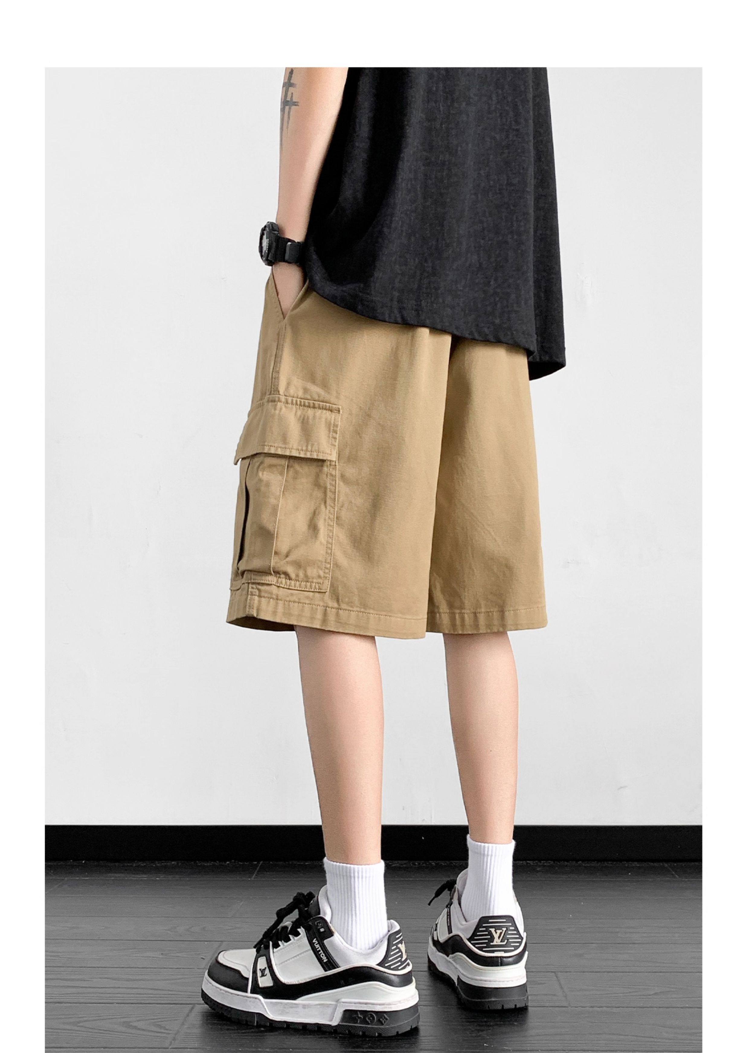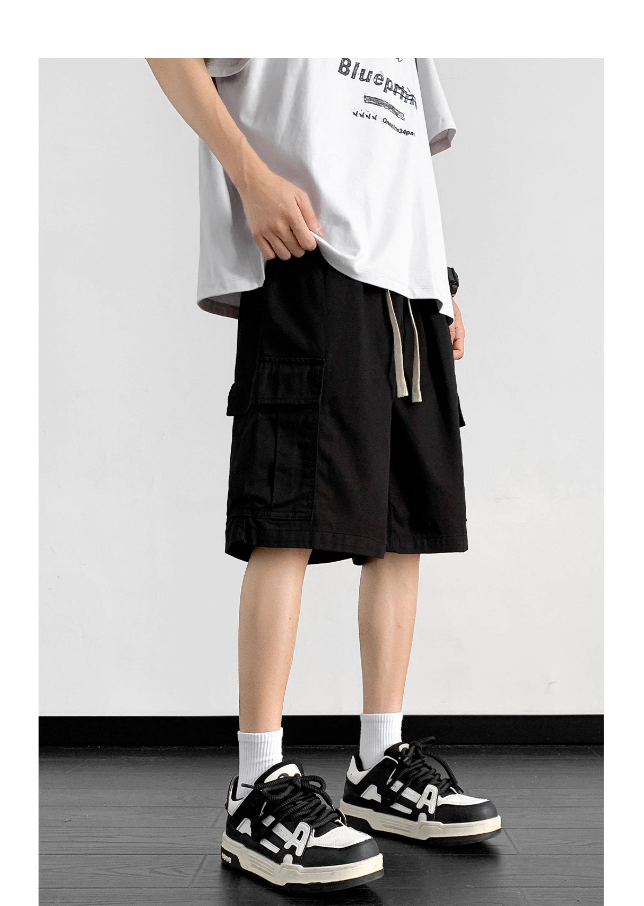 American-Style Work Pants for Men, Summer Thin Loose-Fitting Five-Point Pants, Trendy Black Casual Pants, Straight-Leg Men's Pure Cotton Shorts