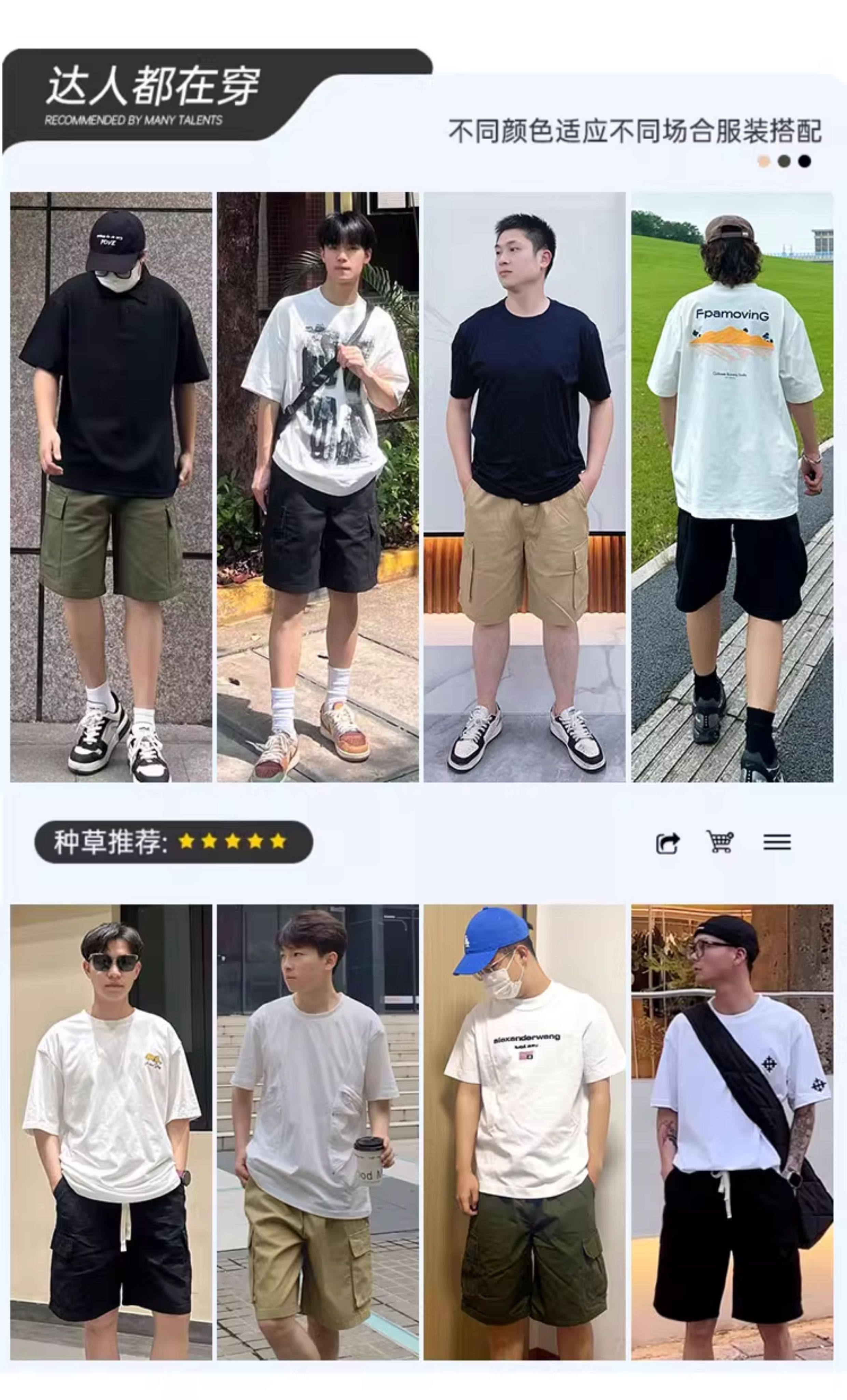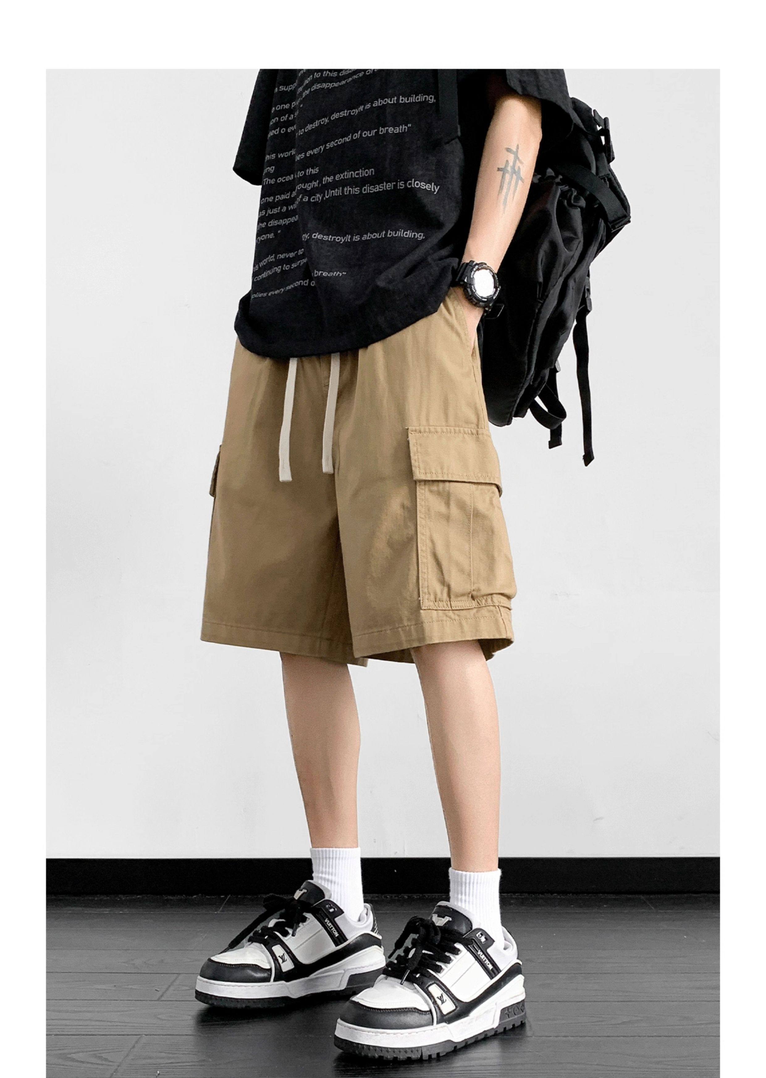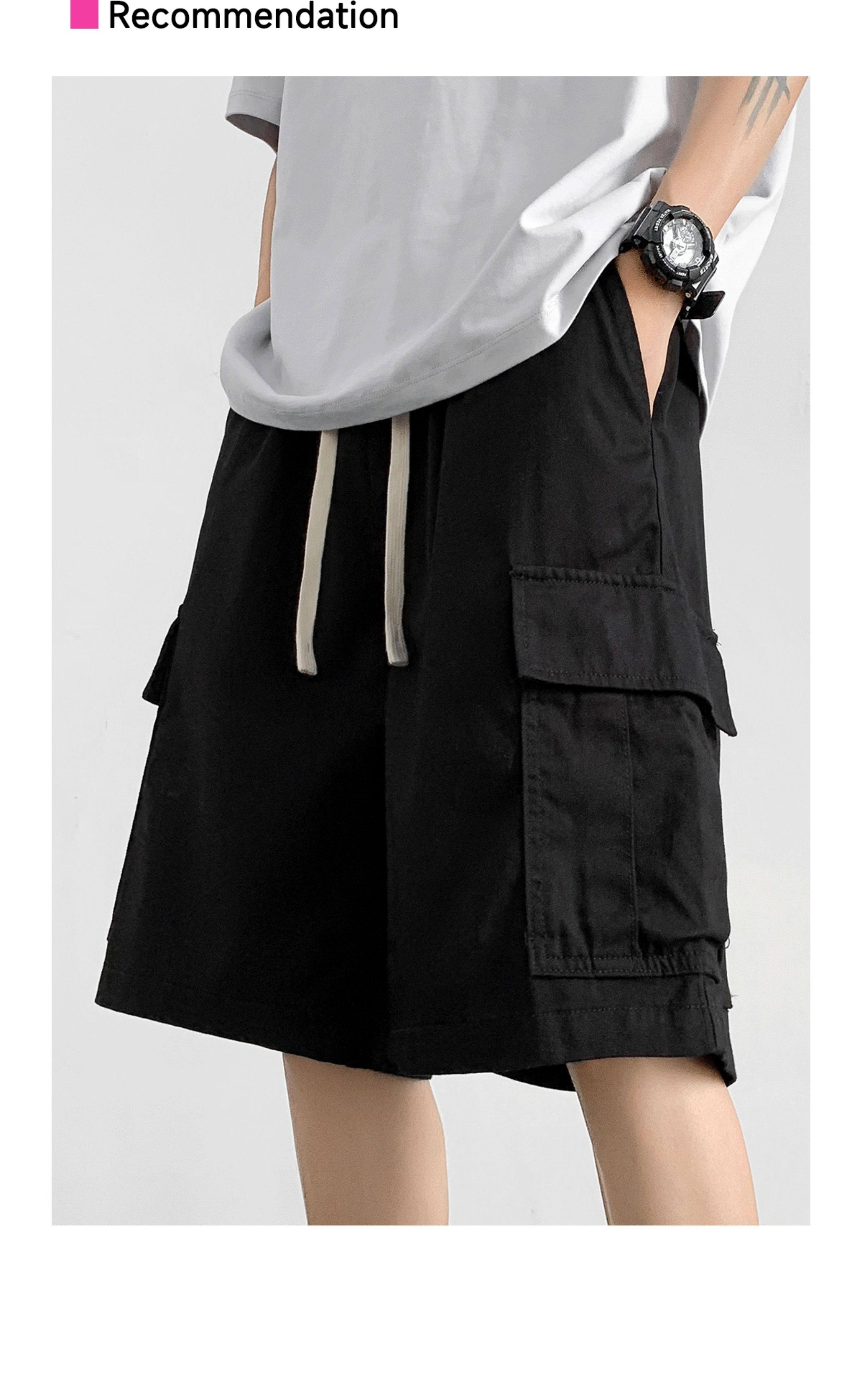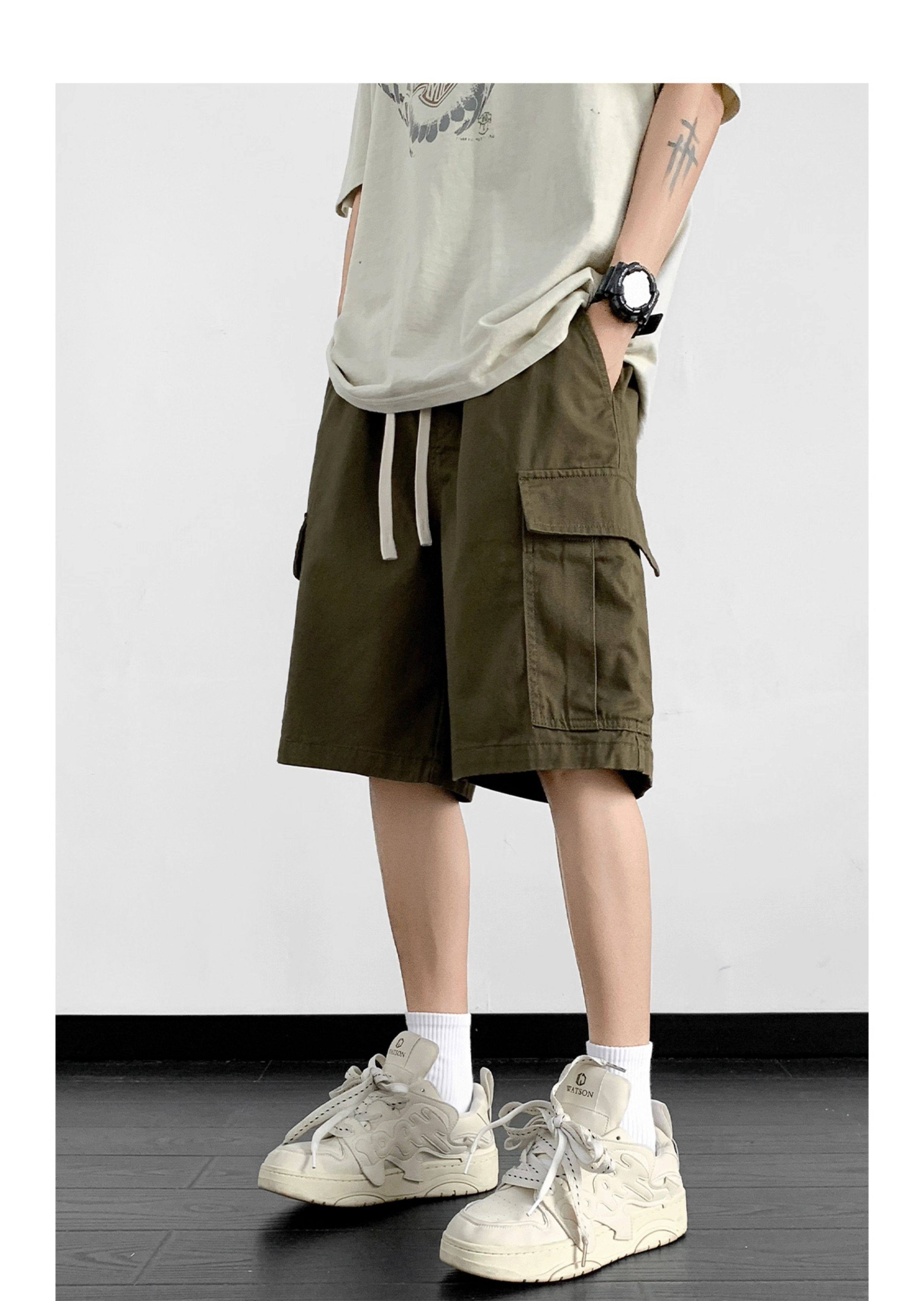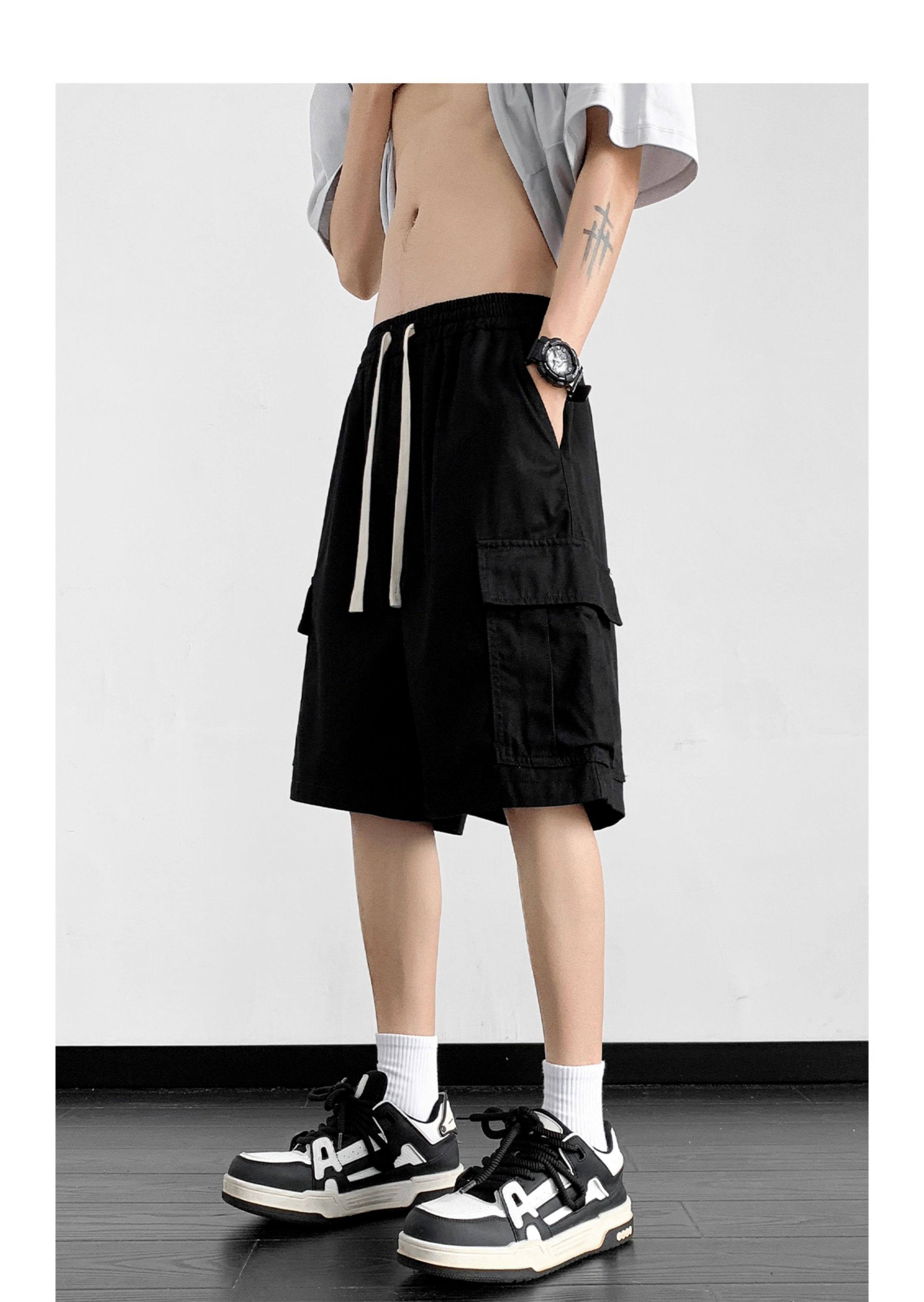 American-Style Work Pants for Men, Summer Thin Loose-Fitting Five-Point Pants, Trendy Black Casual Pants, Straight-Leg Men's Pure Cotton Shorts