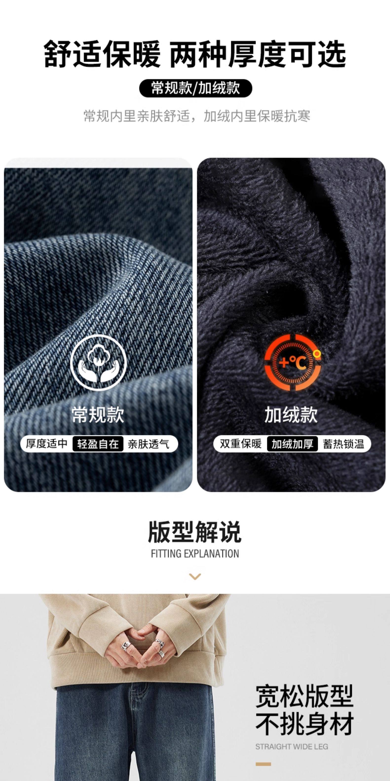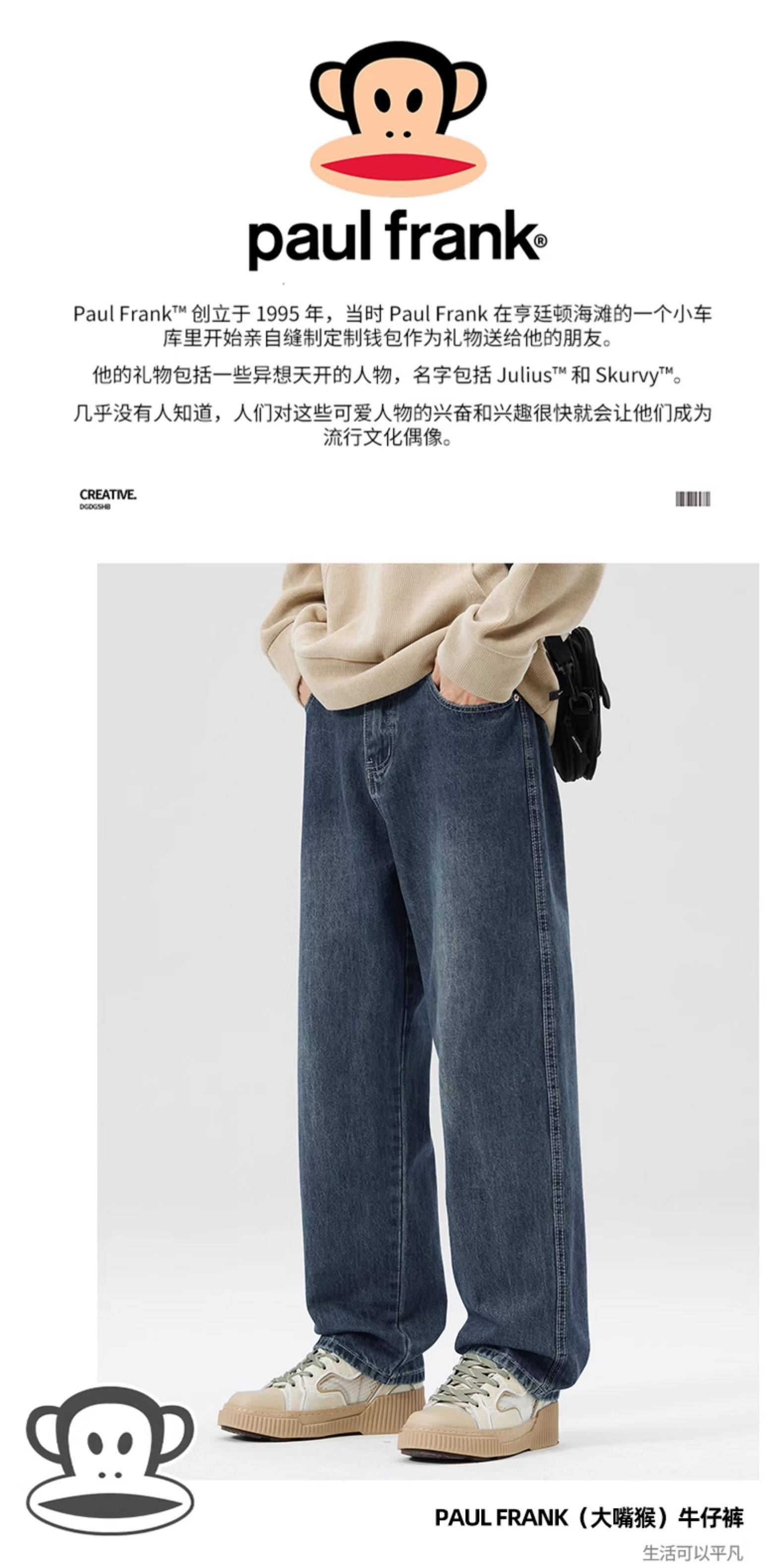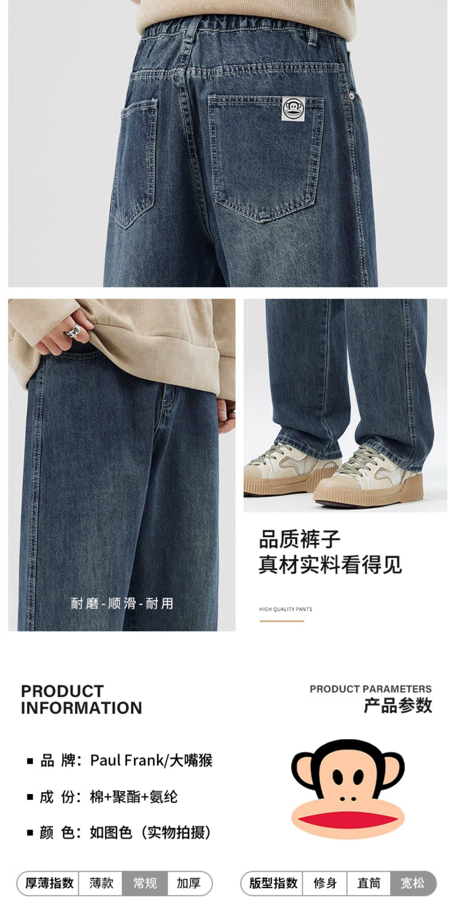 Paulfrank/Big Mouth Monkey Fleece-Lined Thickened Jeans for Men 2025 Winter Straight Loose Wide-Leg Casual Pants