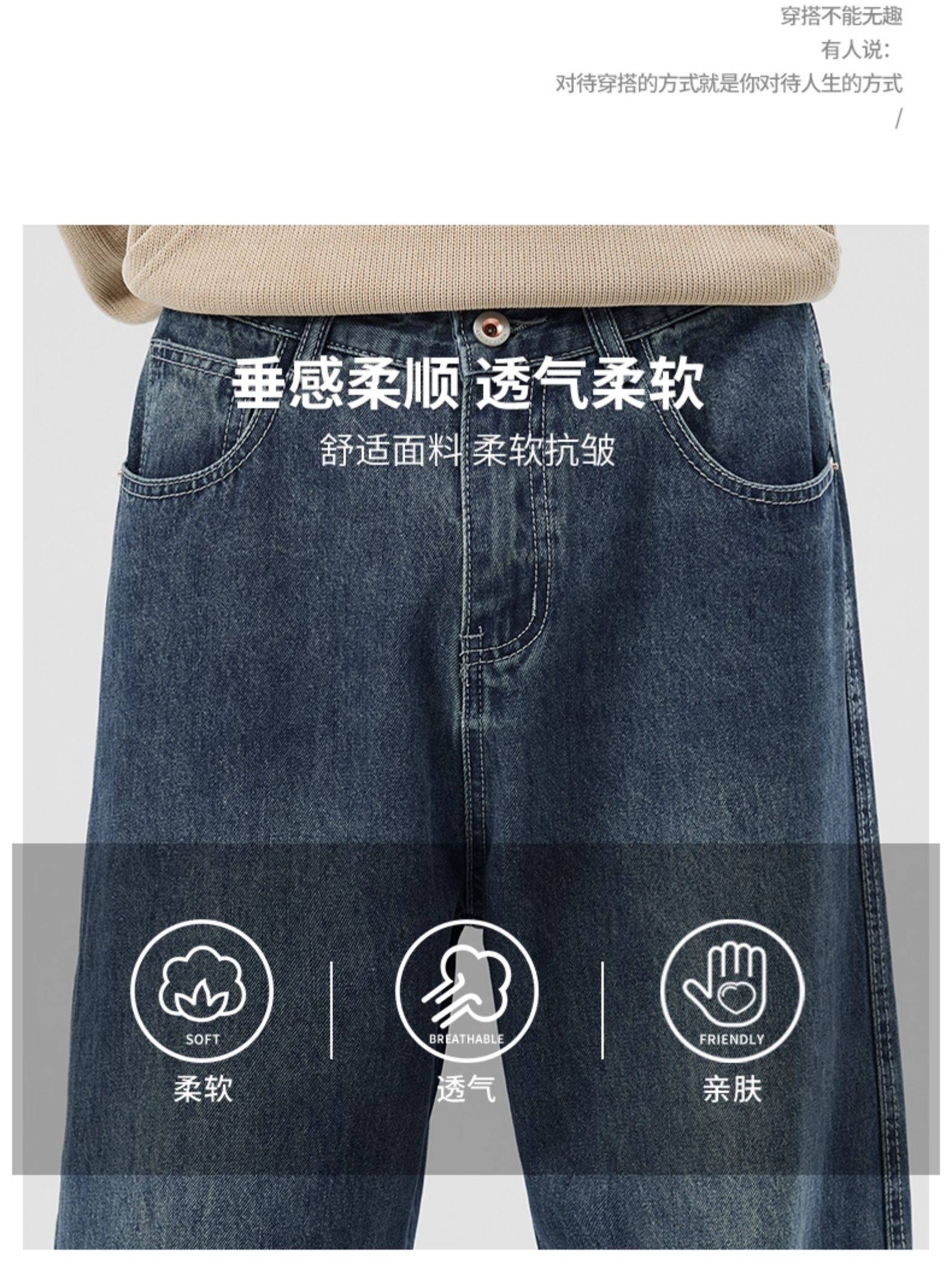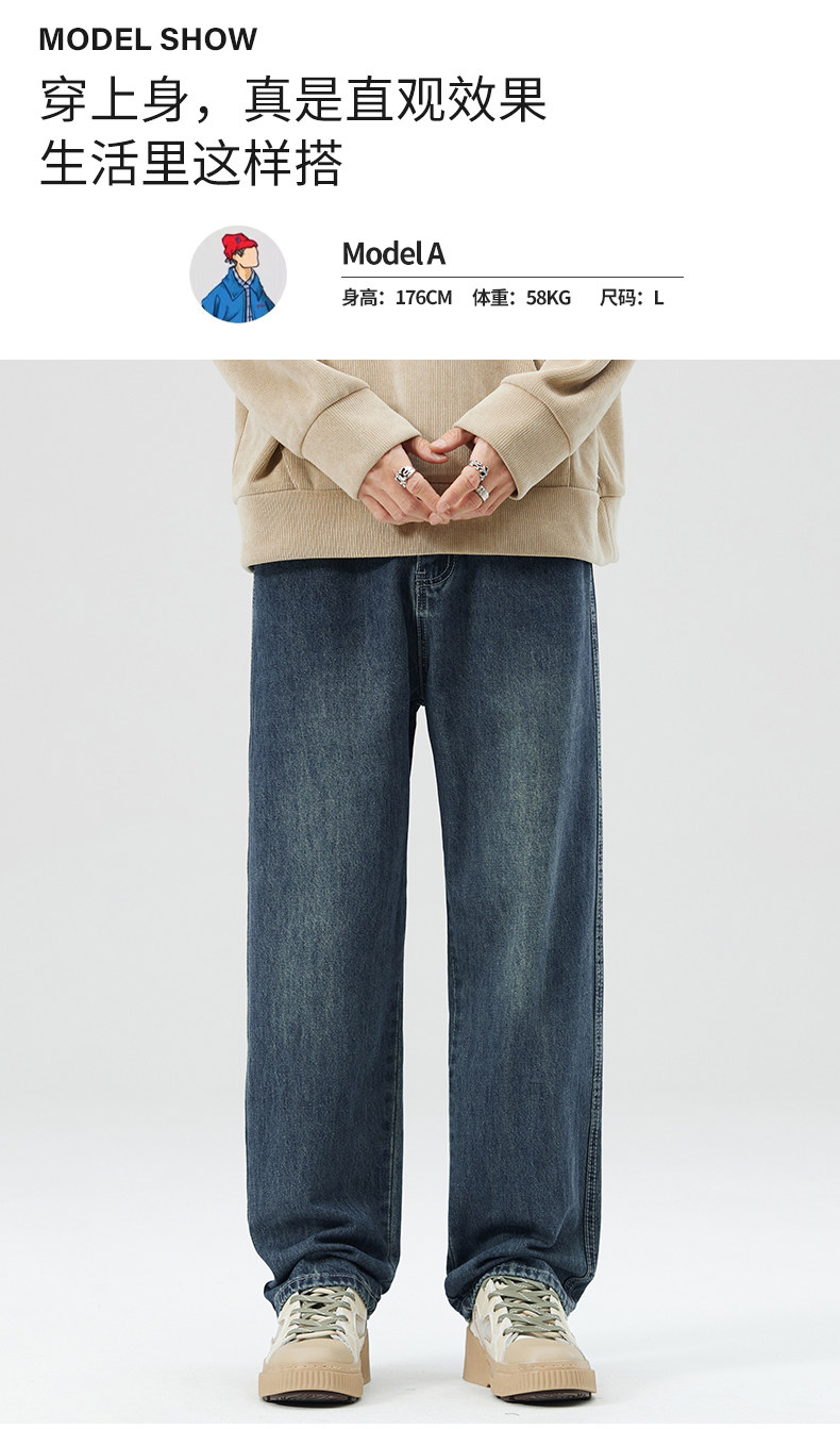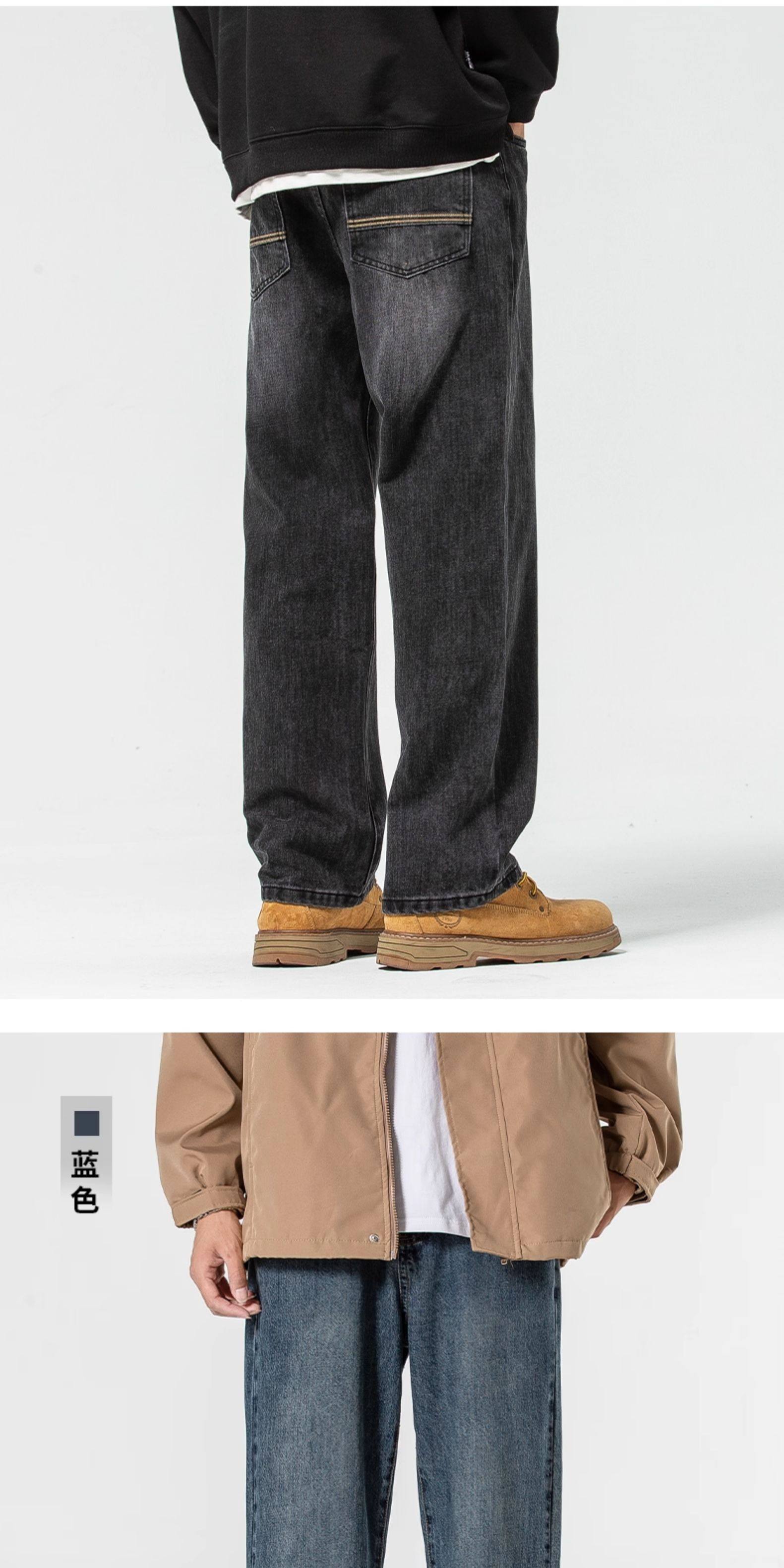 Paulfrank/Big Mouth Monkey Fleece-Lined Thickened Jeans for Men 2025 Winter Straight Loose Wide-Leg Casual Pants
