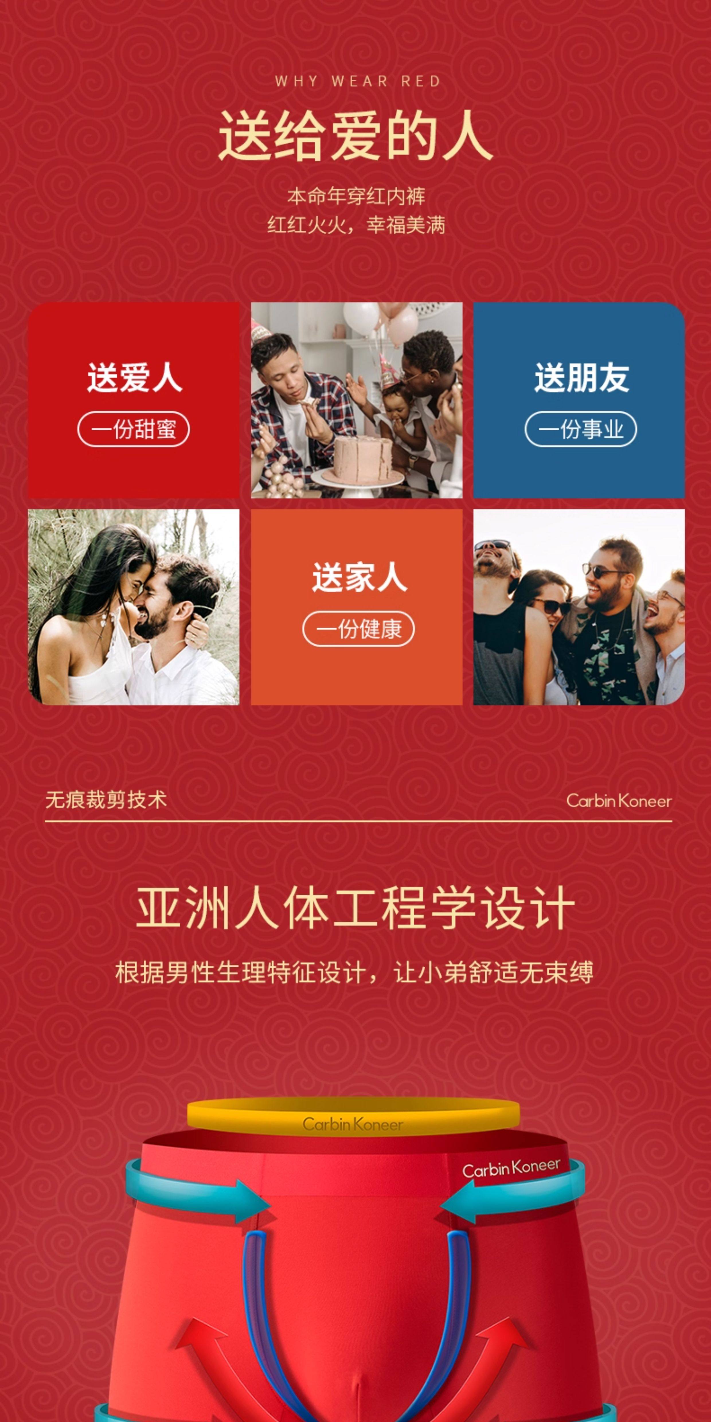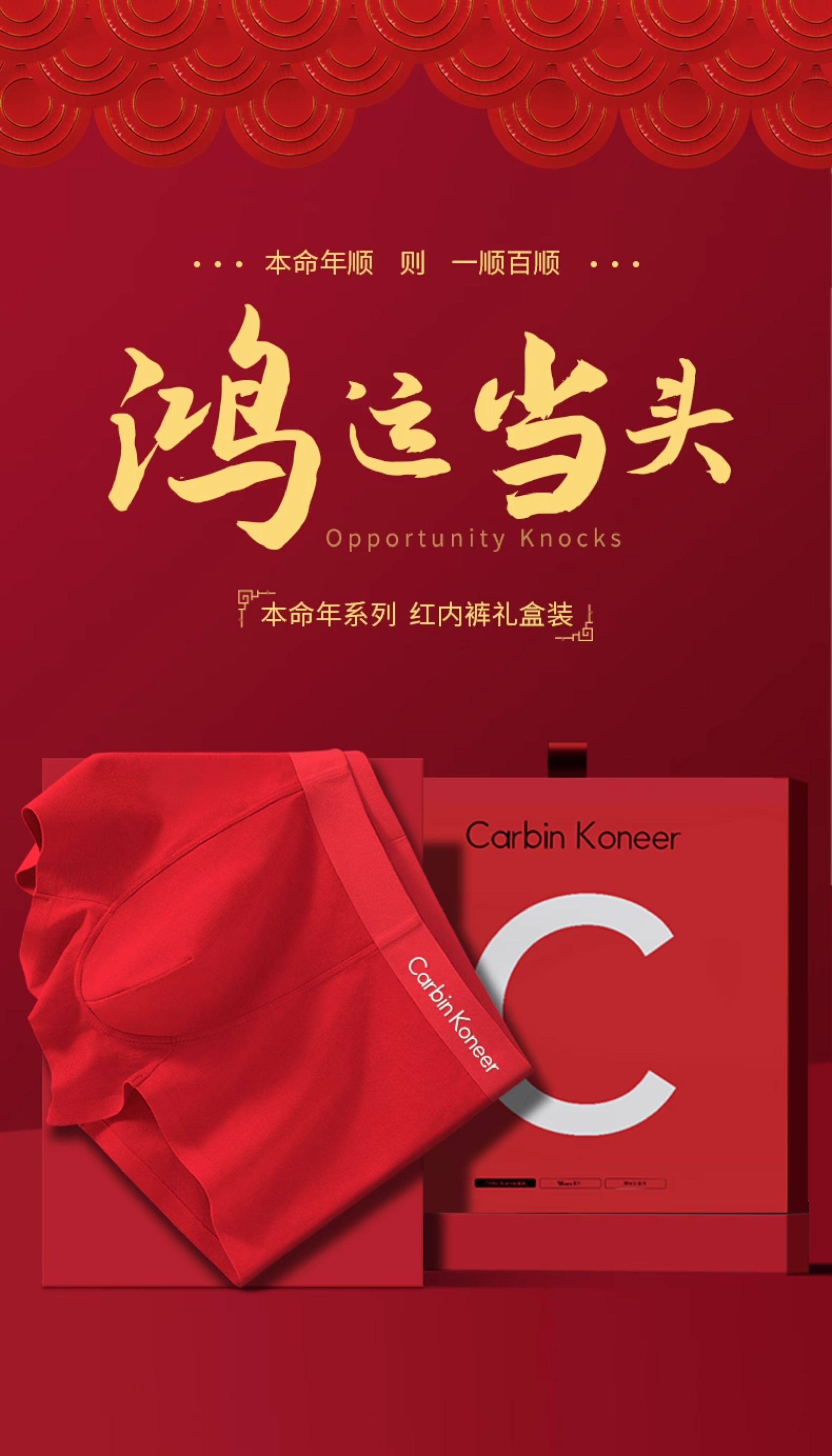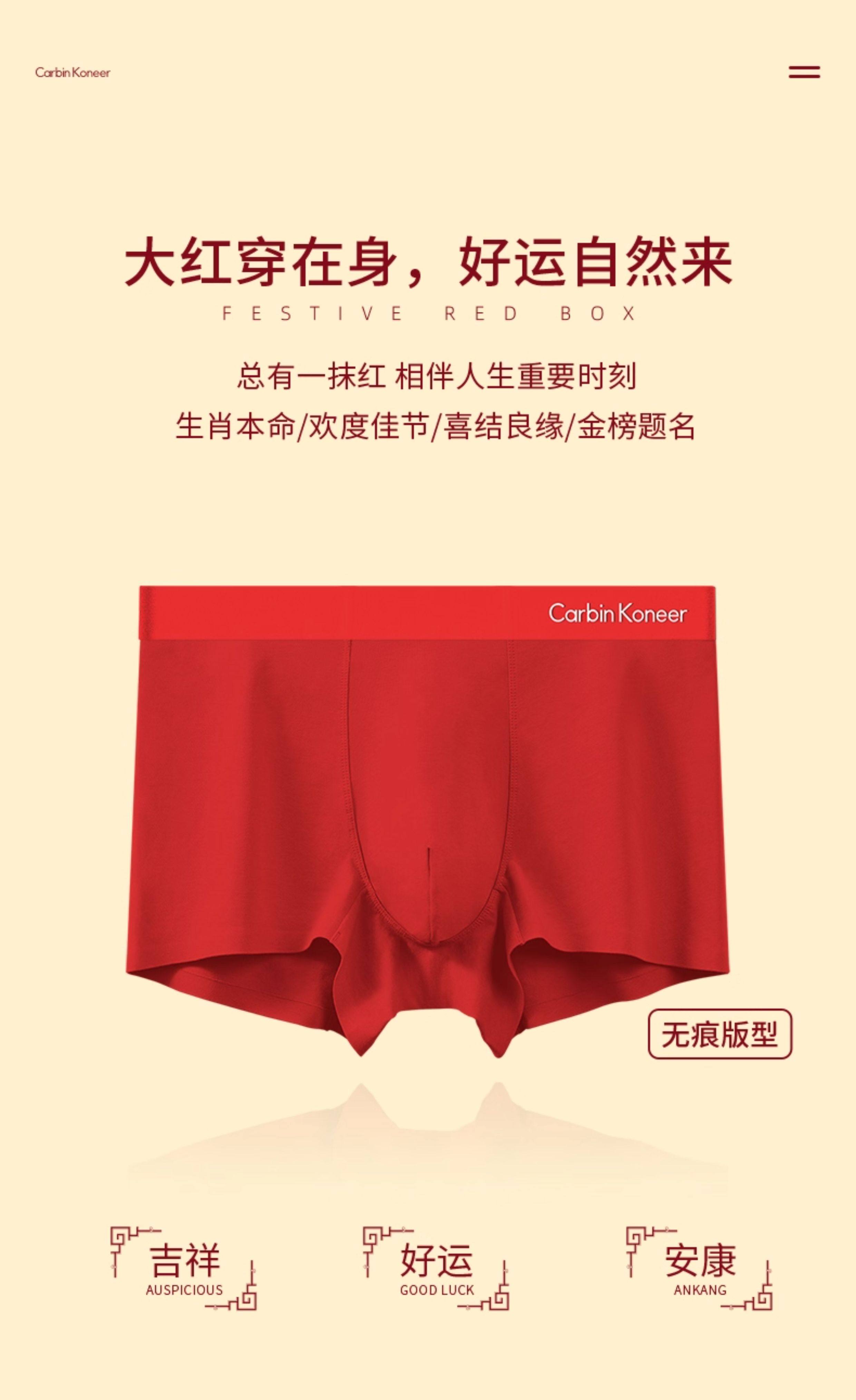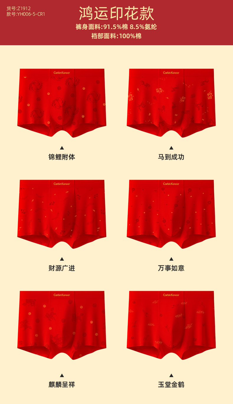 Carbinkoneer Men's Underwear Red Pure Cotton Crotch Boys' Zodiac Year of the Horse Boxer Briefs Gift Box Set