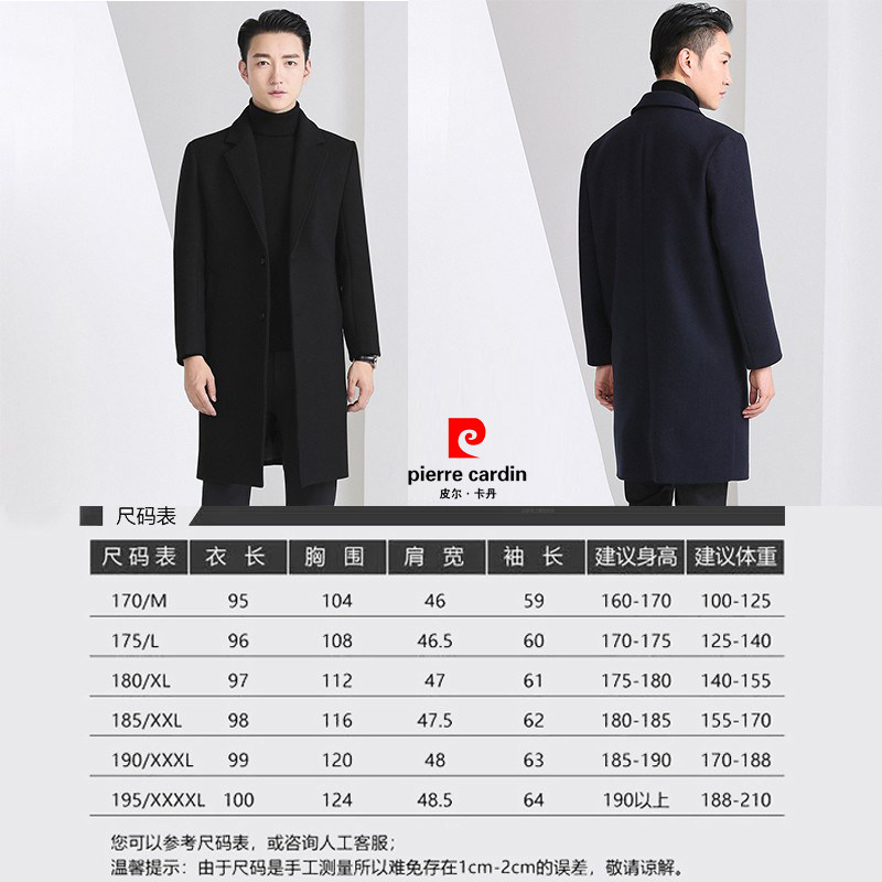 Pierre Cardin Woolen Coat for Men, Mid-Length, Korean Style, Casual, for Young and Middle-Aged People, Winter Thickened Woolen Overcoat