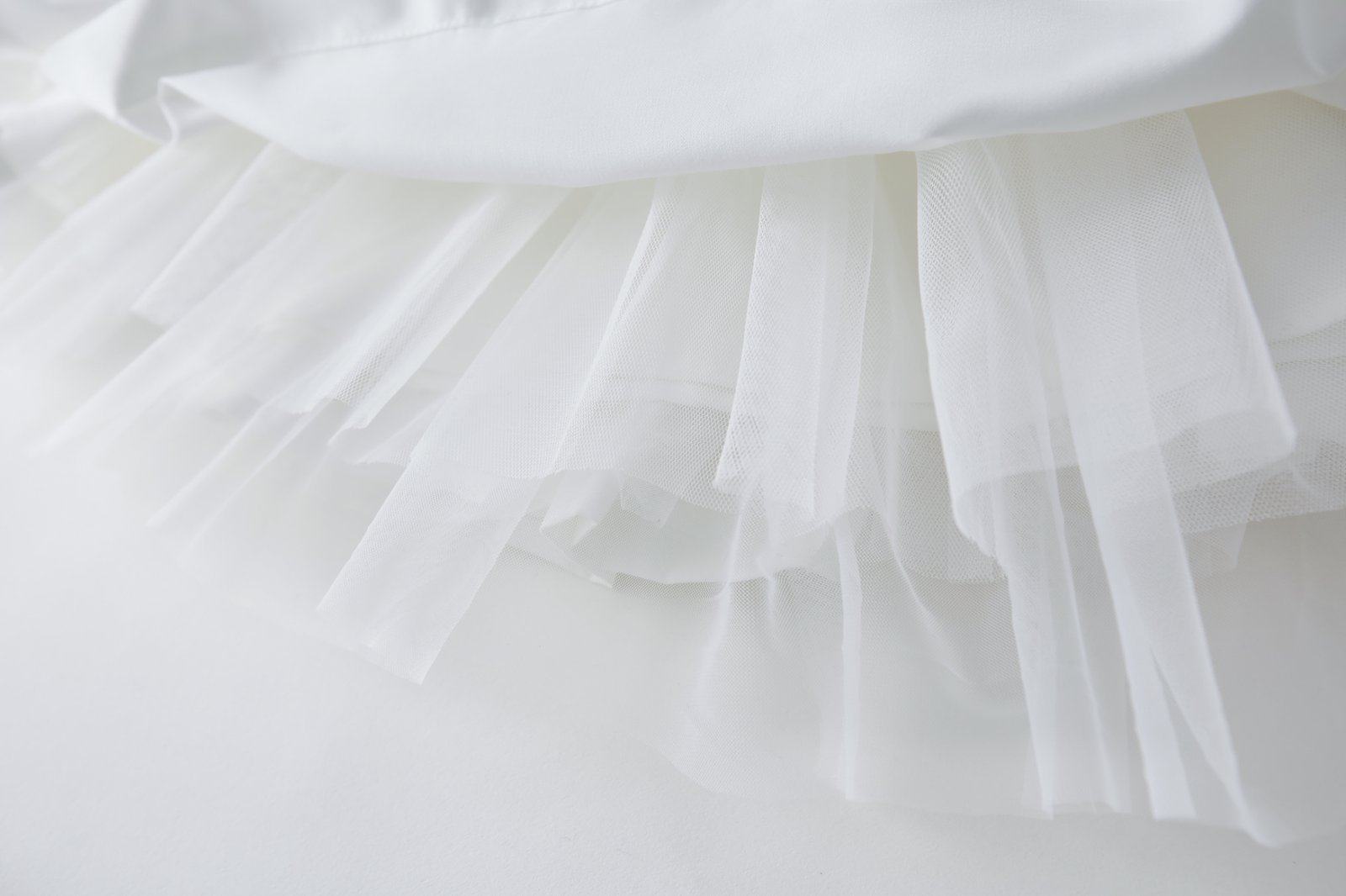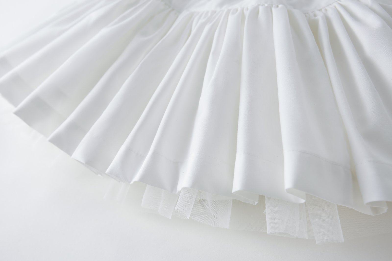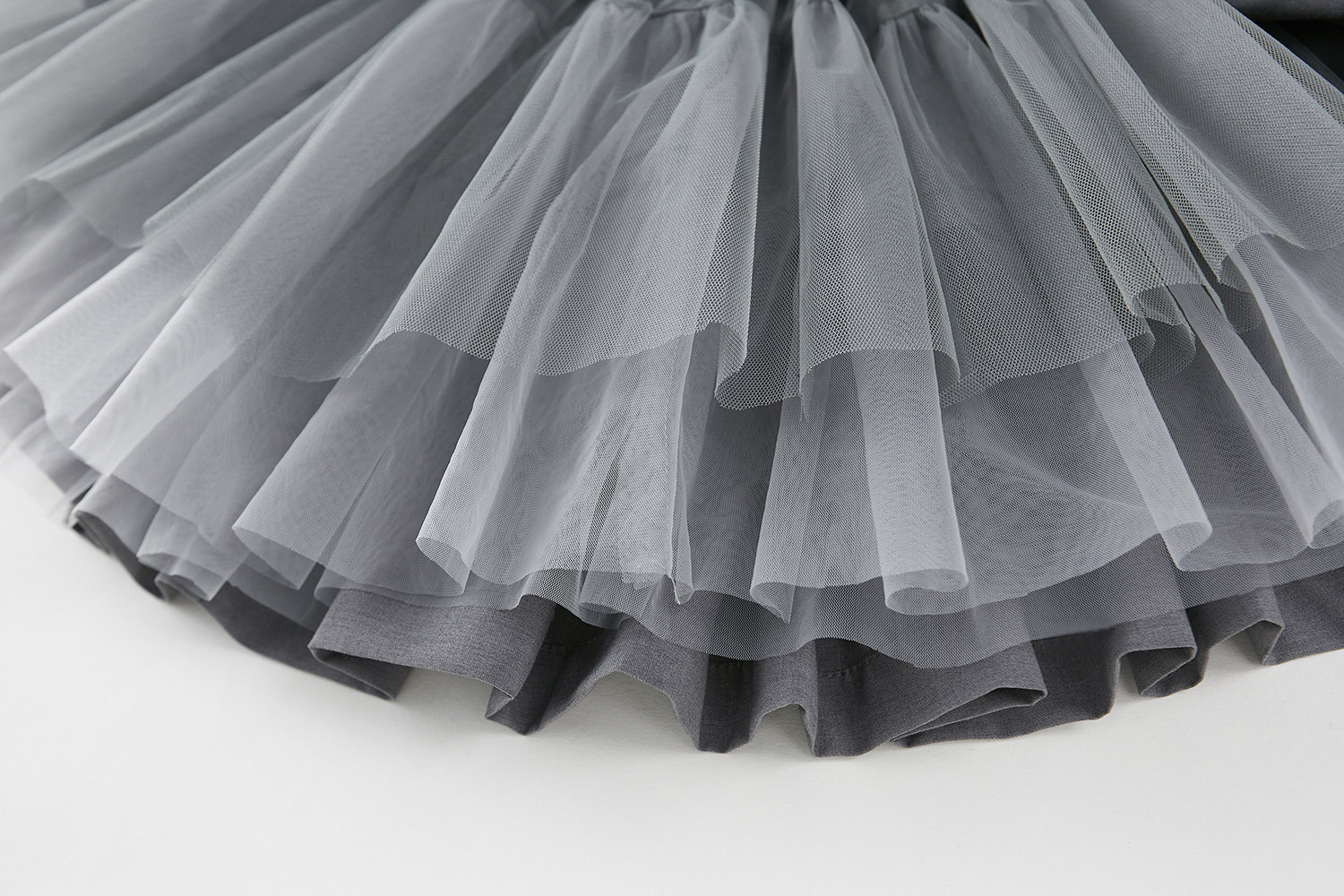 为调节裙摆自然蓬松形态,内里拼接软网与硬网,更好支撑A字裙摆,不易走形。