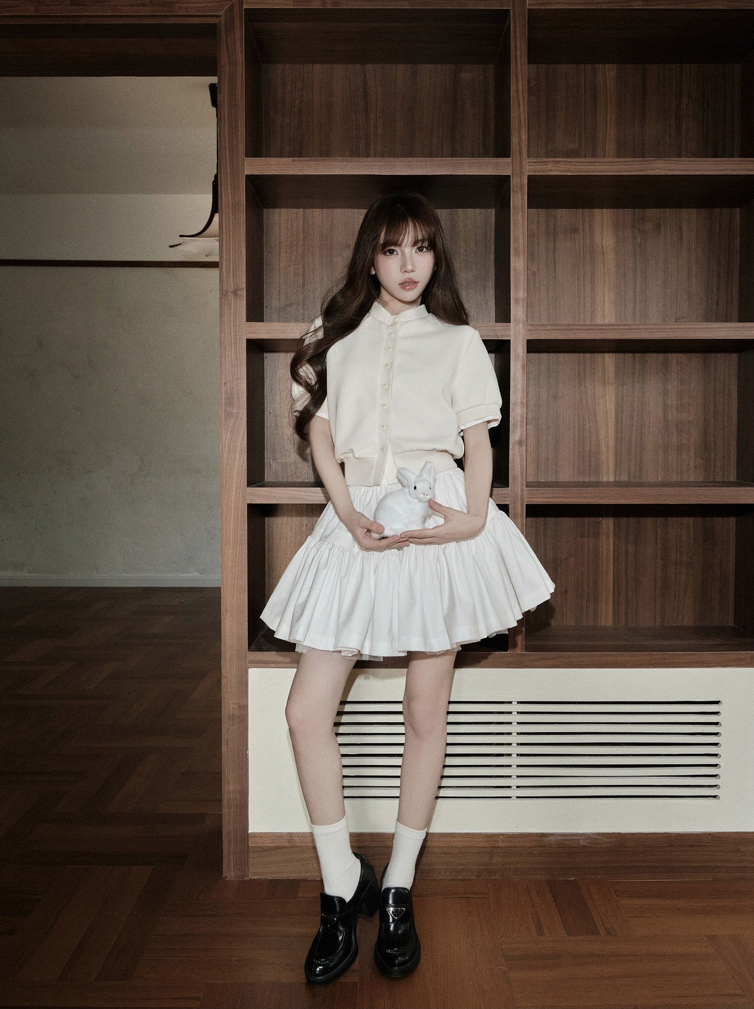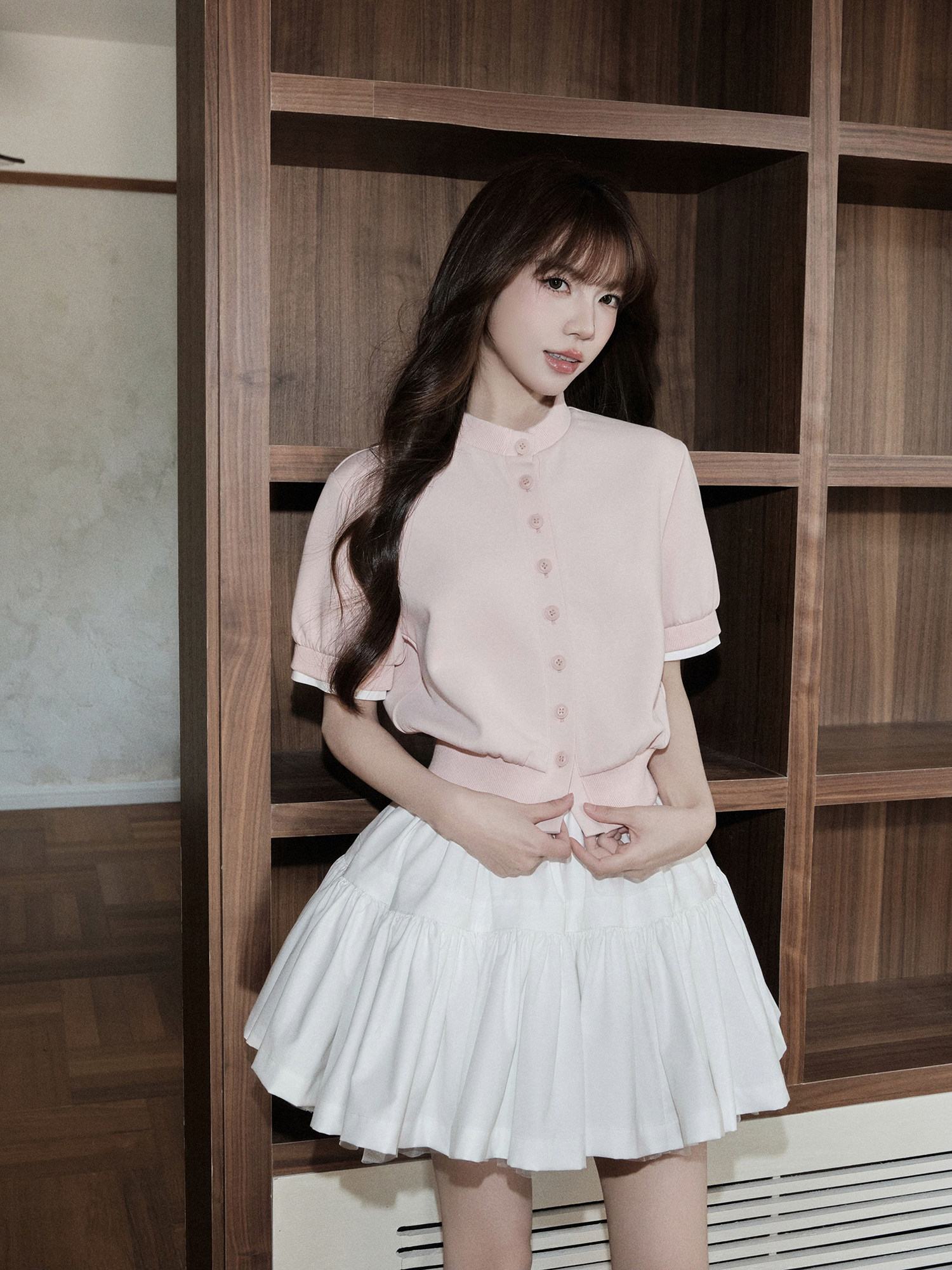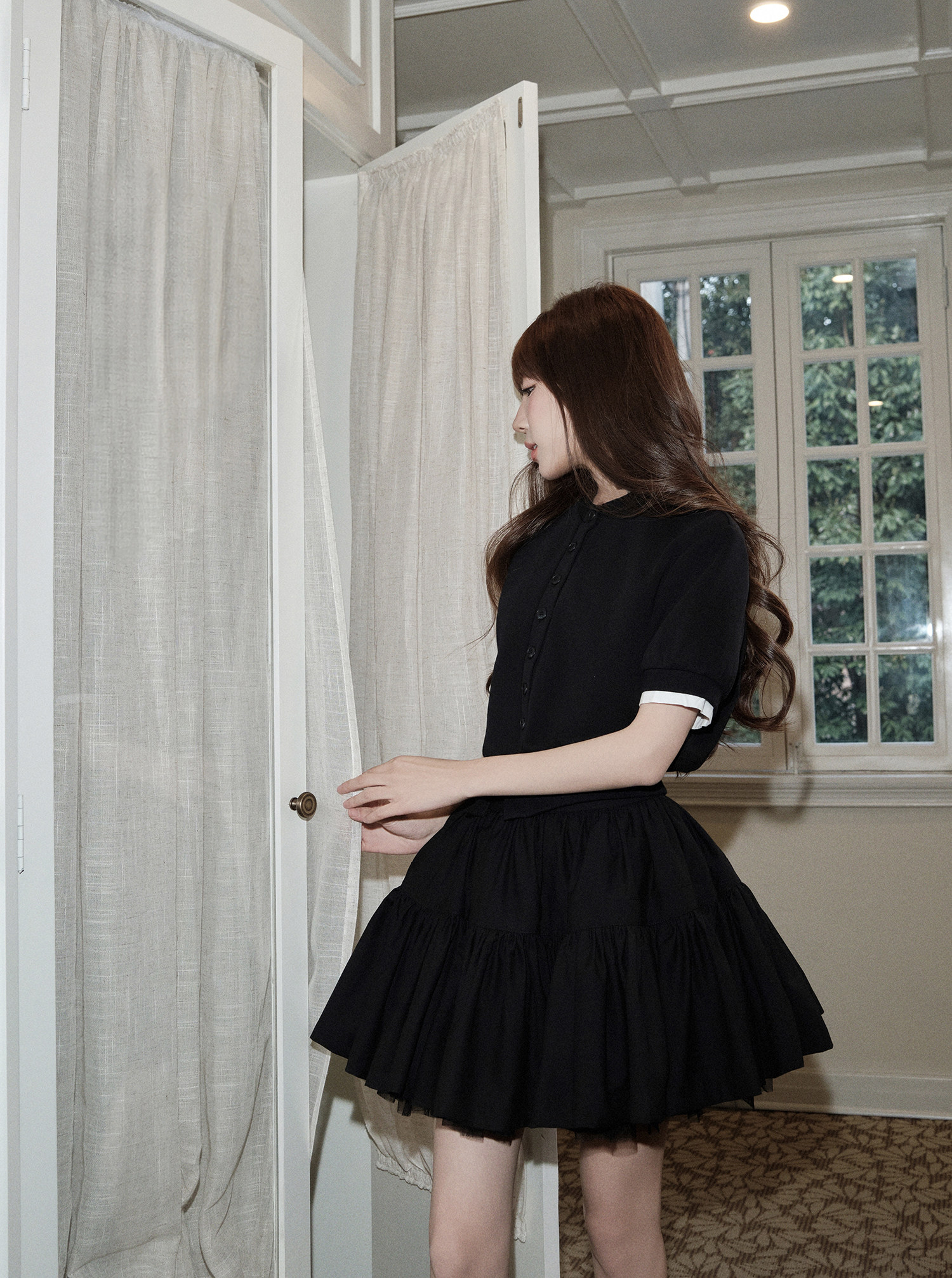 A字摆衬衫蓬蓬裙,选用亲肤透气的衬衫面料,