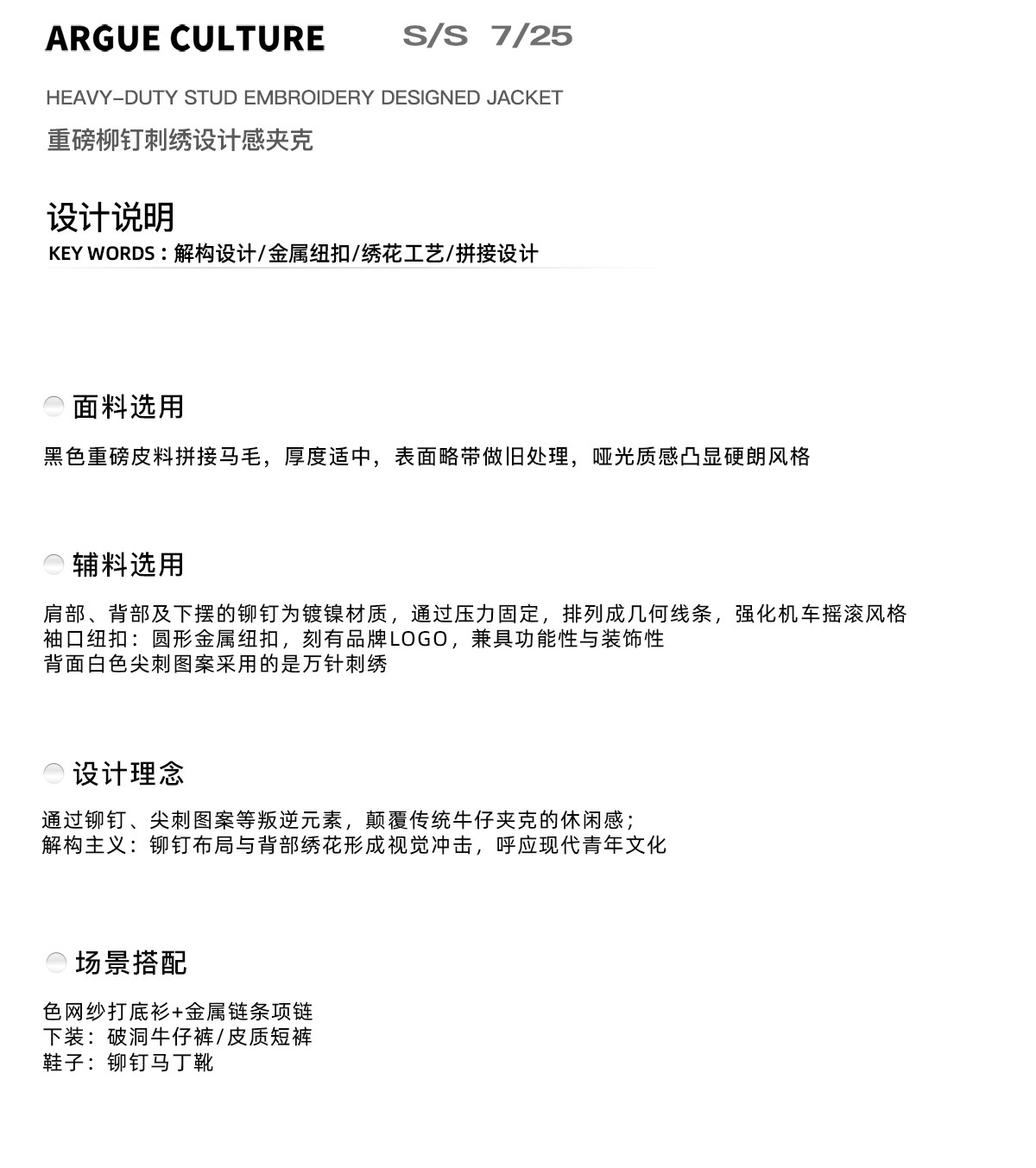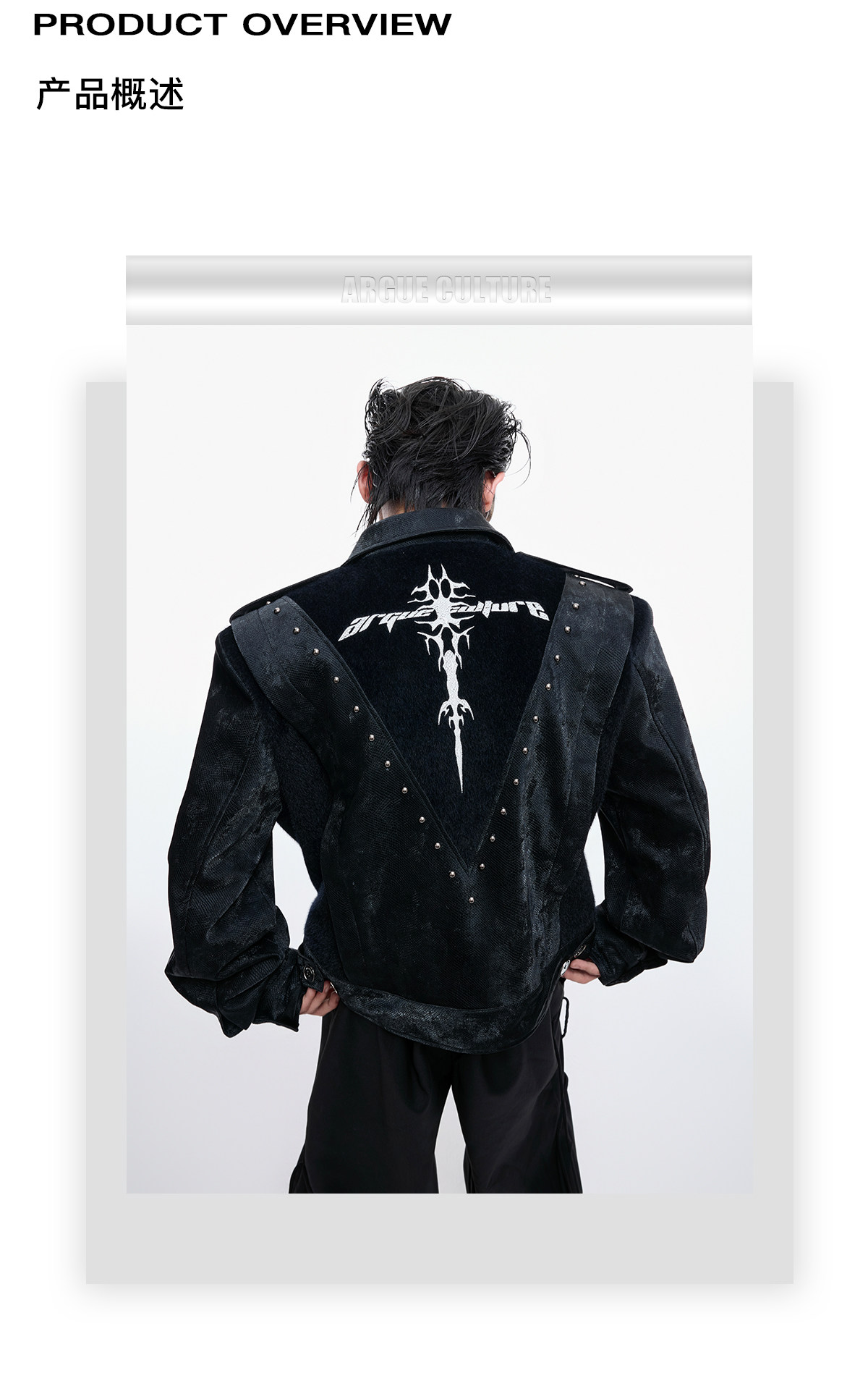 Argue Culture Blade Eye Barbed* Heavy-Duty Rivet Embroidery Design Snake-Pattern Leather Short Jacket