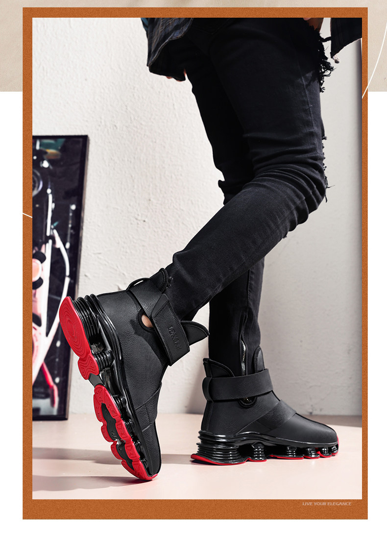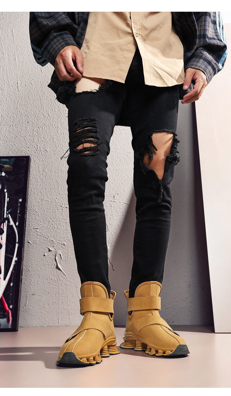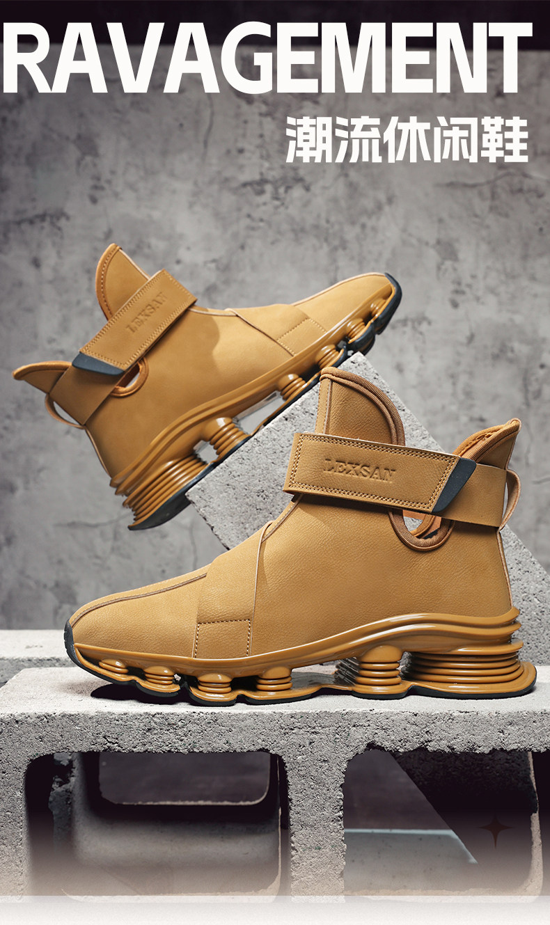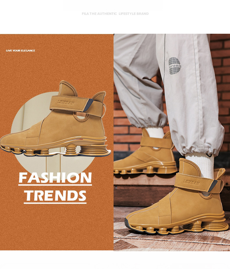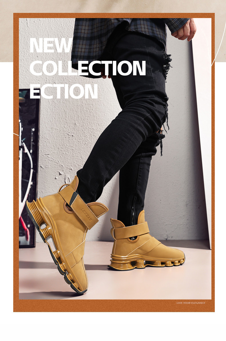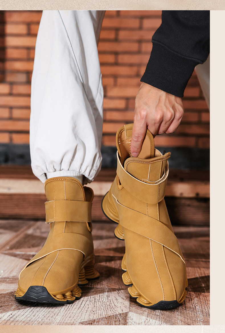 High-Top Martin Boots for Men, Autumn and Winter, Retro Fashion, Trendy, Light Luxury Leather, Large Size, Sports Shock-Absorbing Running Boots, Yellow Leather Boots