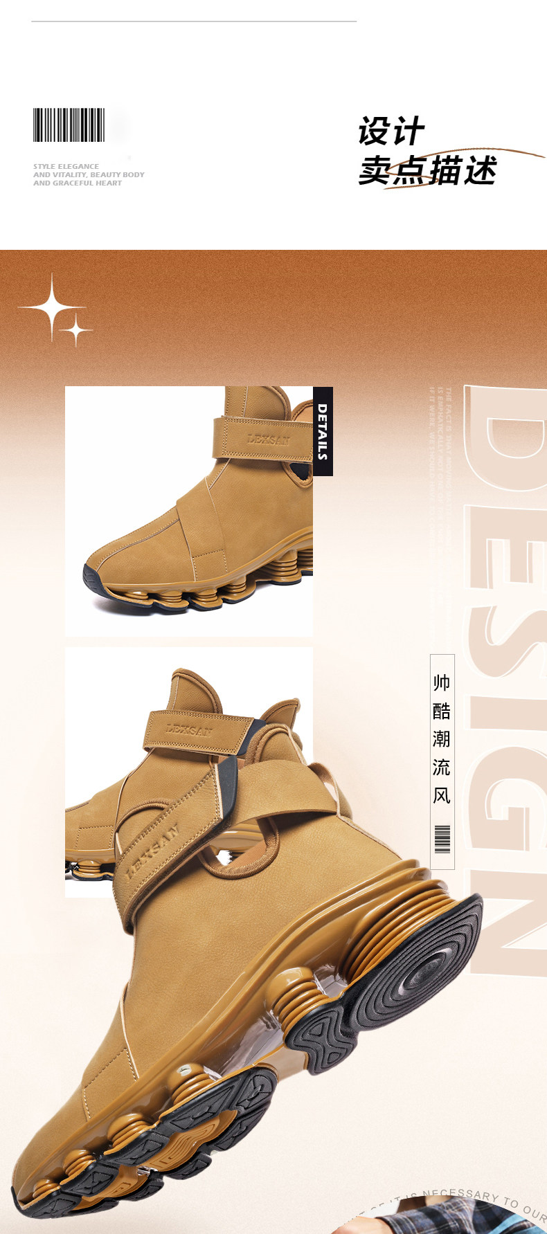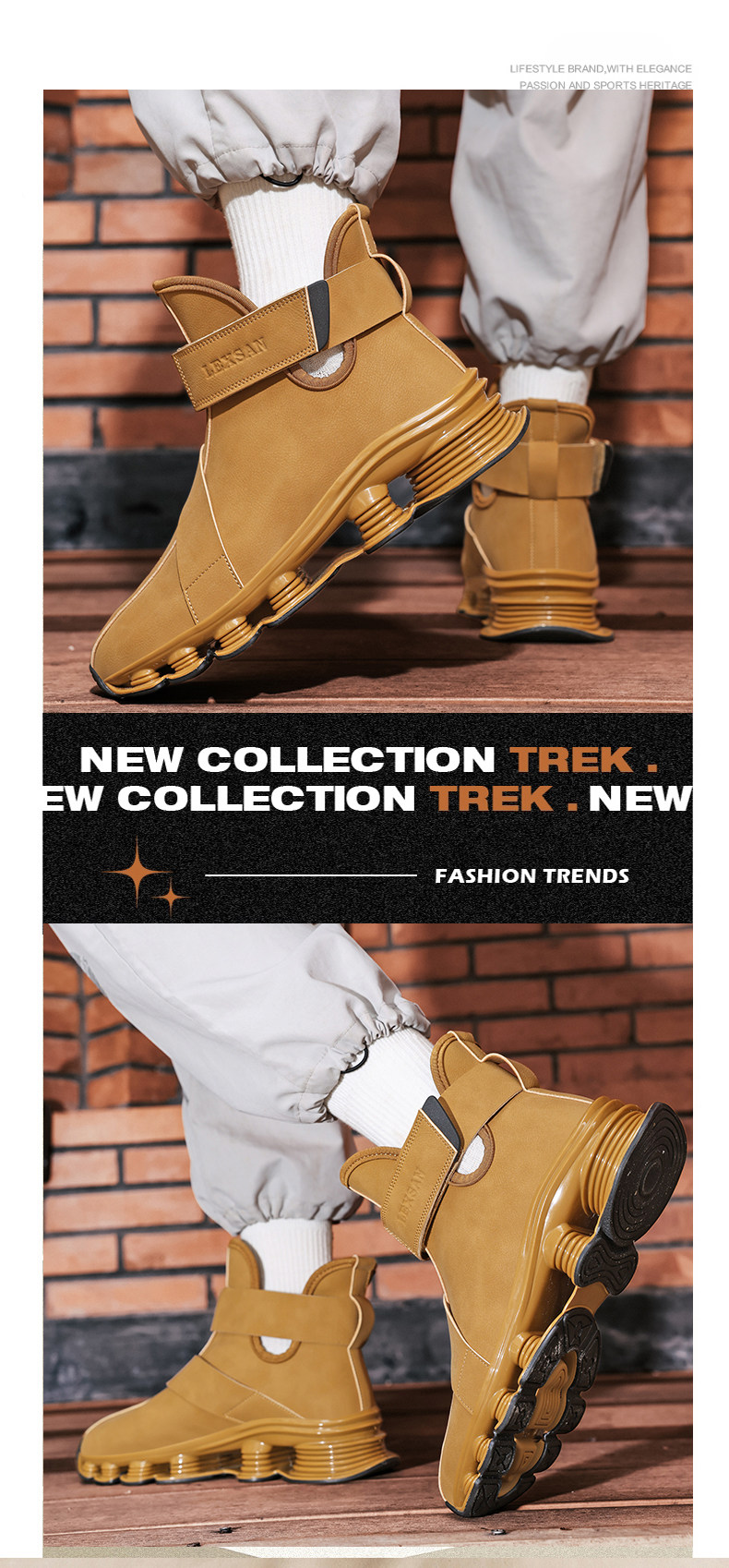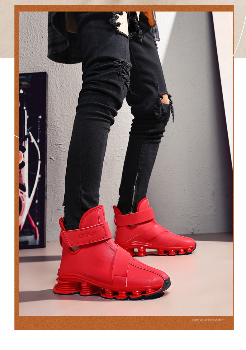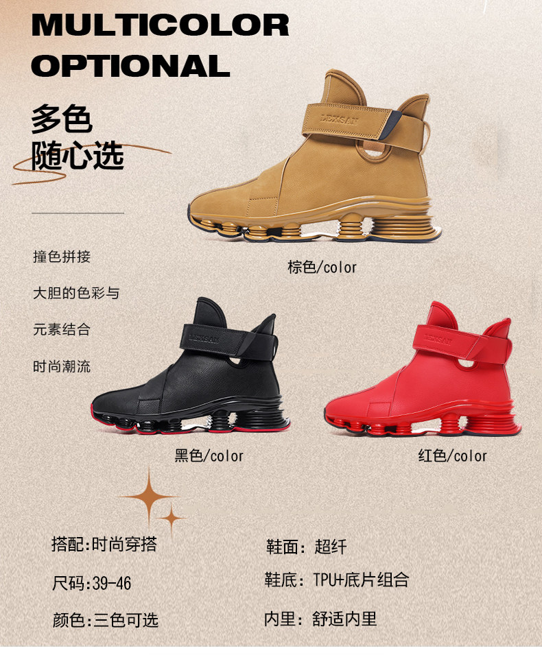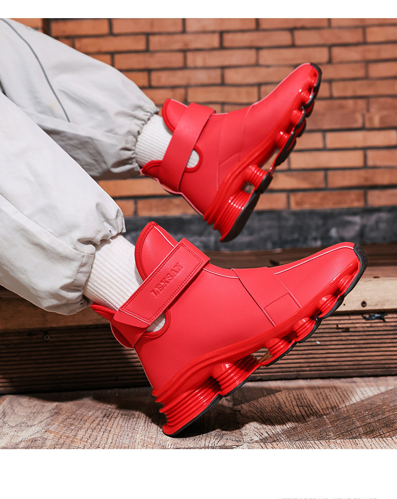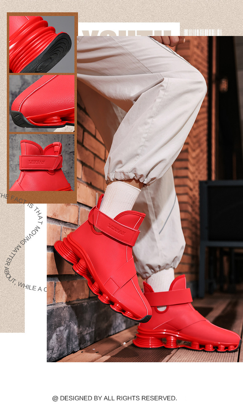 High-Top Martin Boots for Men, Autumn and Winter, Retro Fashion, Trendy, Light Luxury Leather, Large Size, Sports Shock-Absorbing Running Boots, Yellow Leather Boots