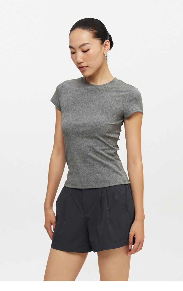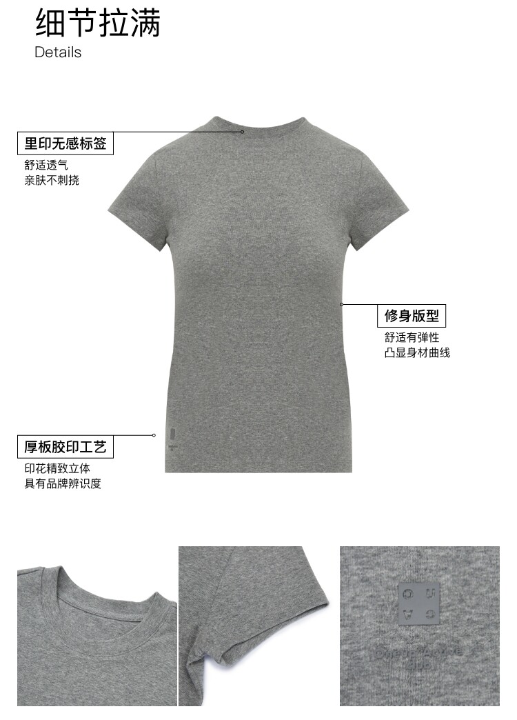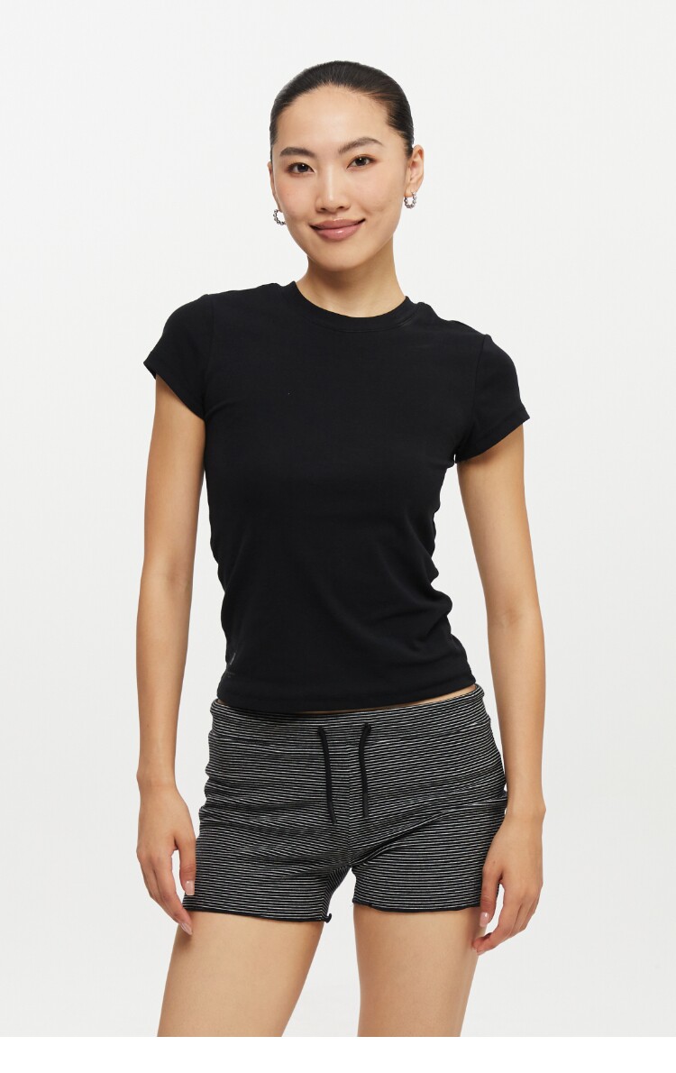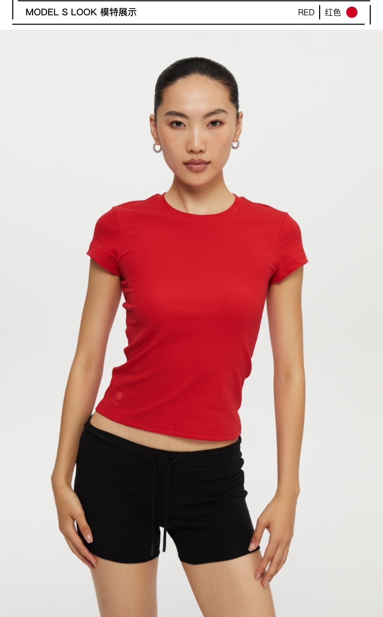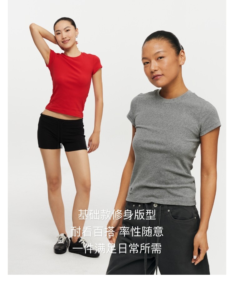 Oneup American Basic Regular Shoulder Elastic T-Shirt 2025 New Summer Slim Fit Black Casual Top Short-Sleeved Women's Style