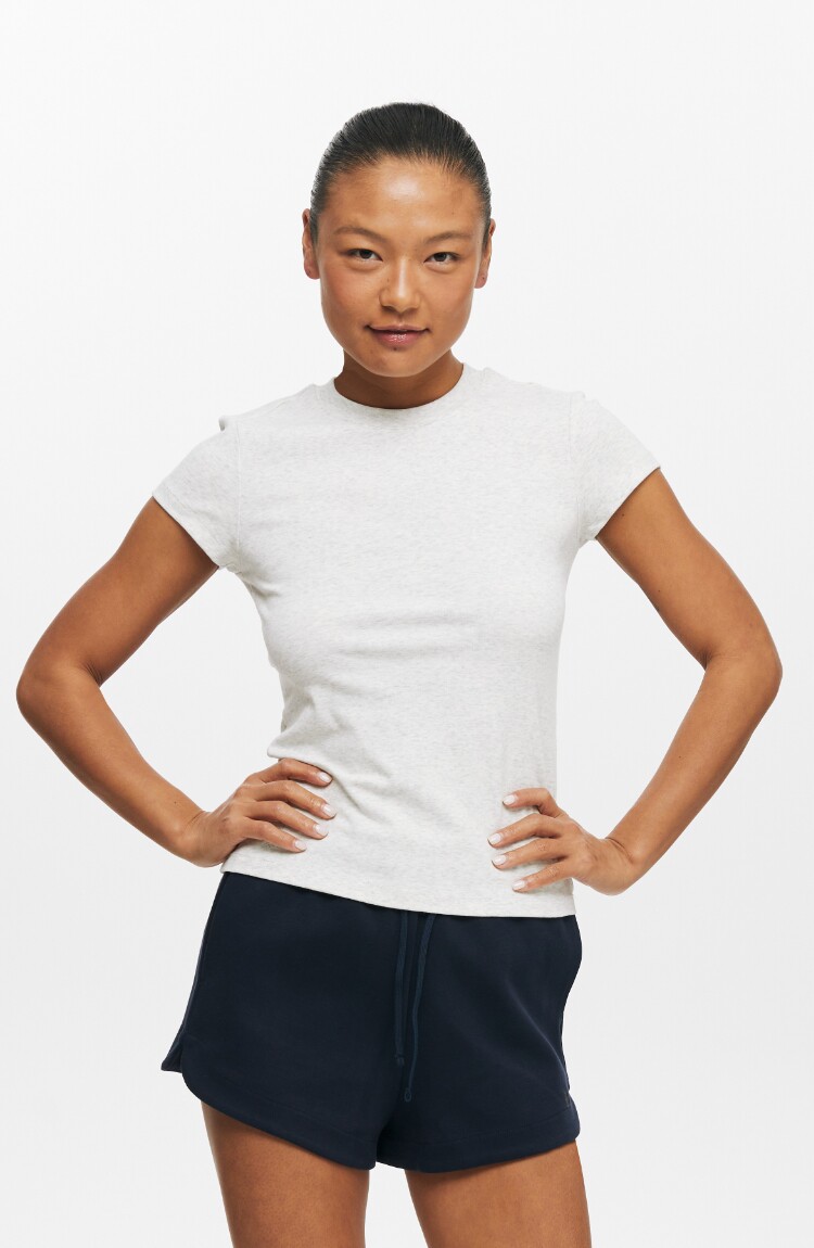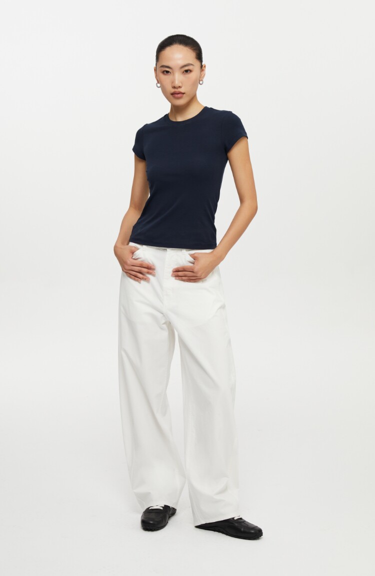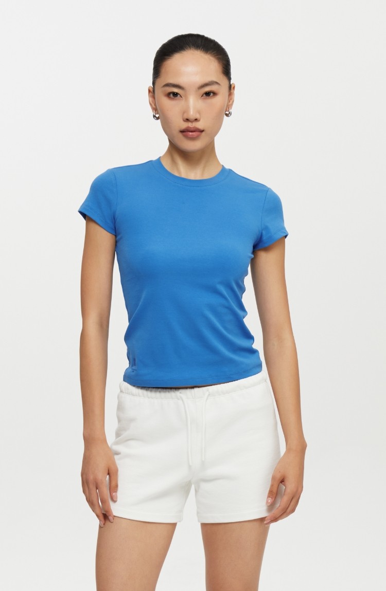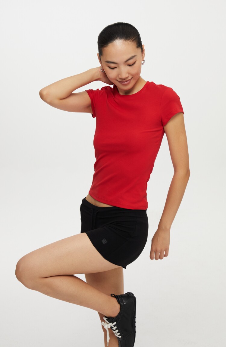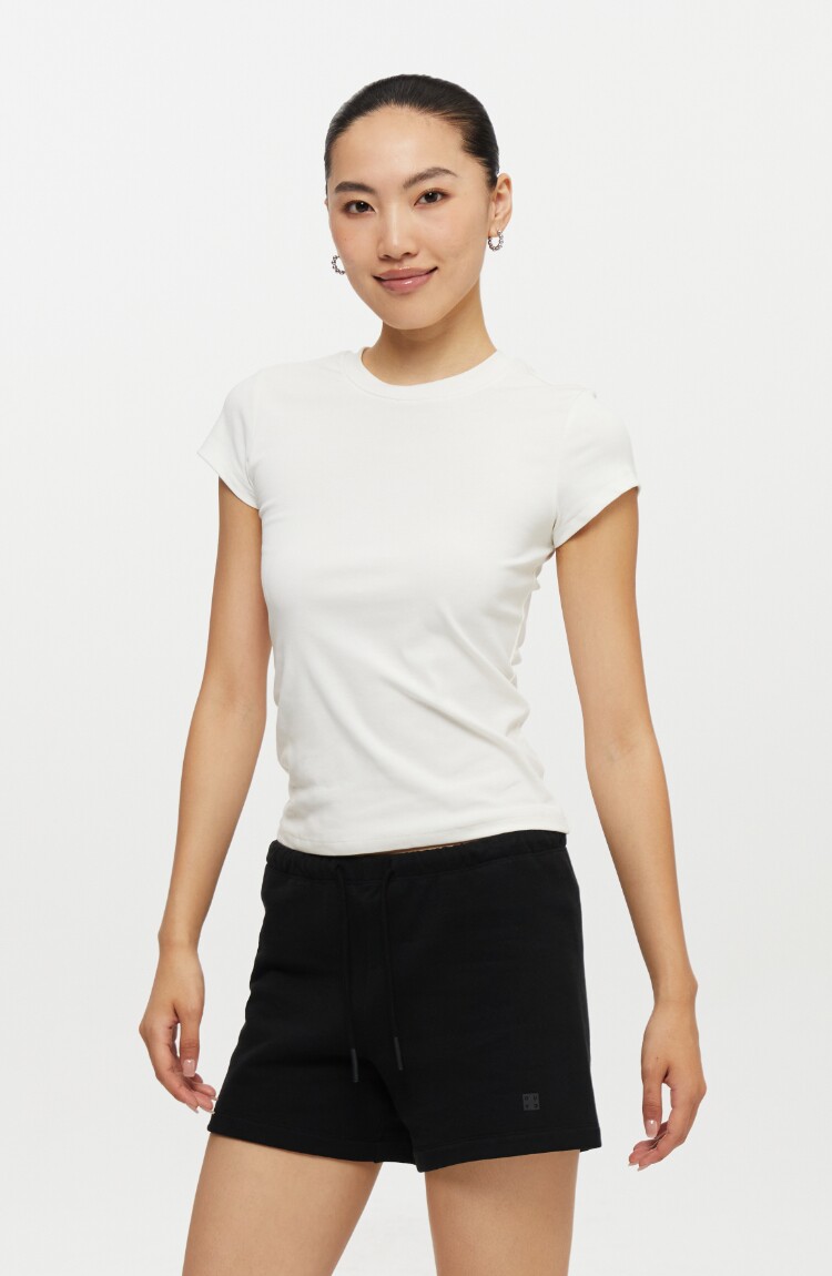 Oneup American Basic Regular Shoulder Elastic T-Shirt 2025 New Summer Slim Fit Black Casual Top Short-Sleeved Women's Style