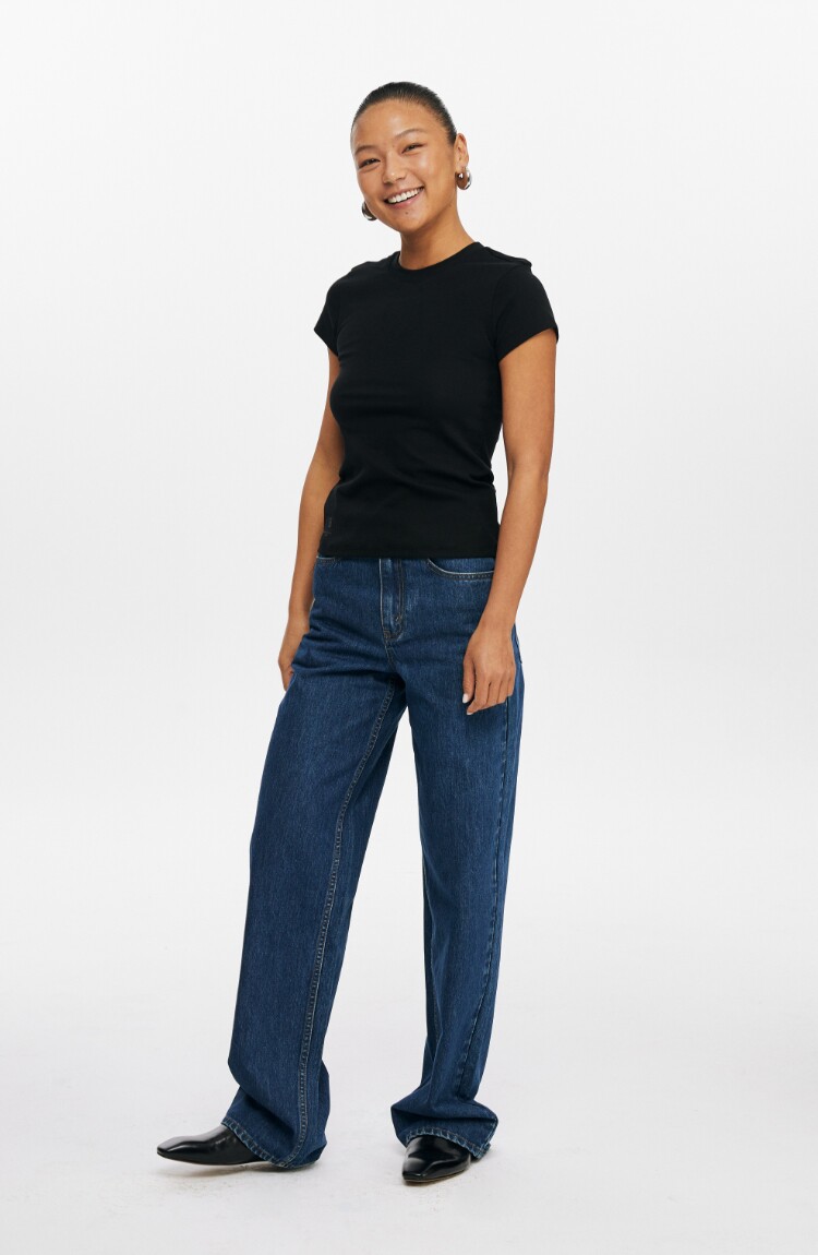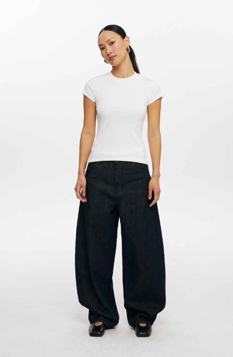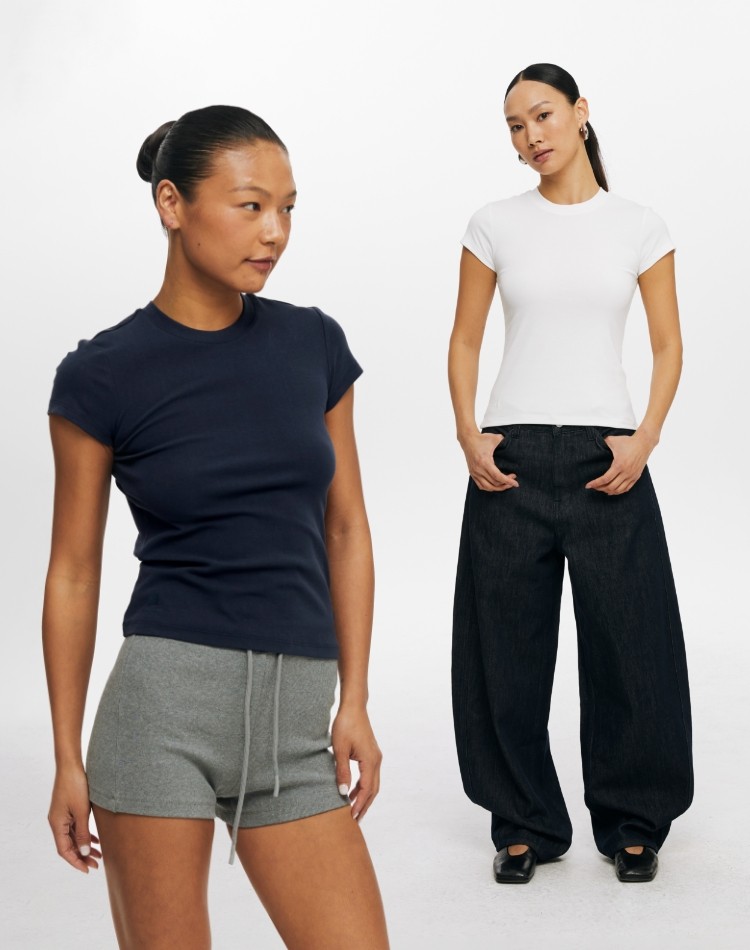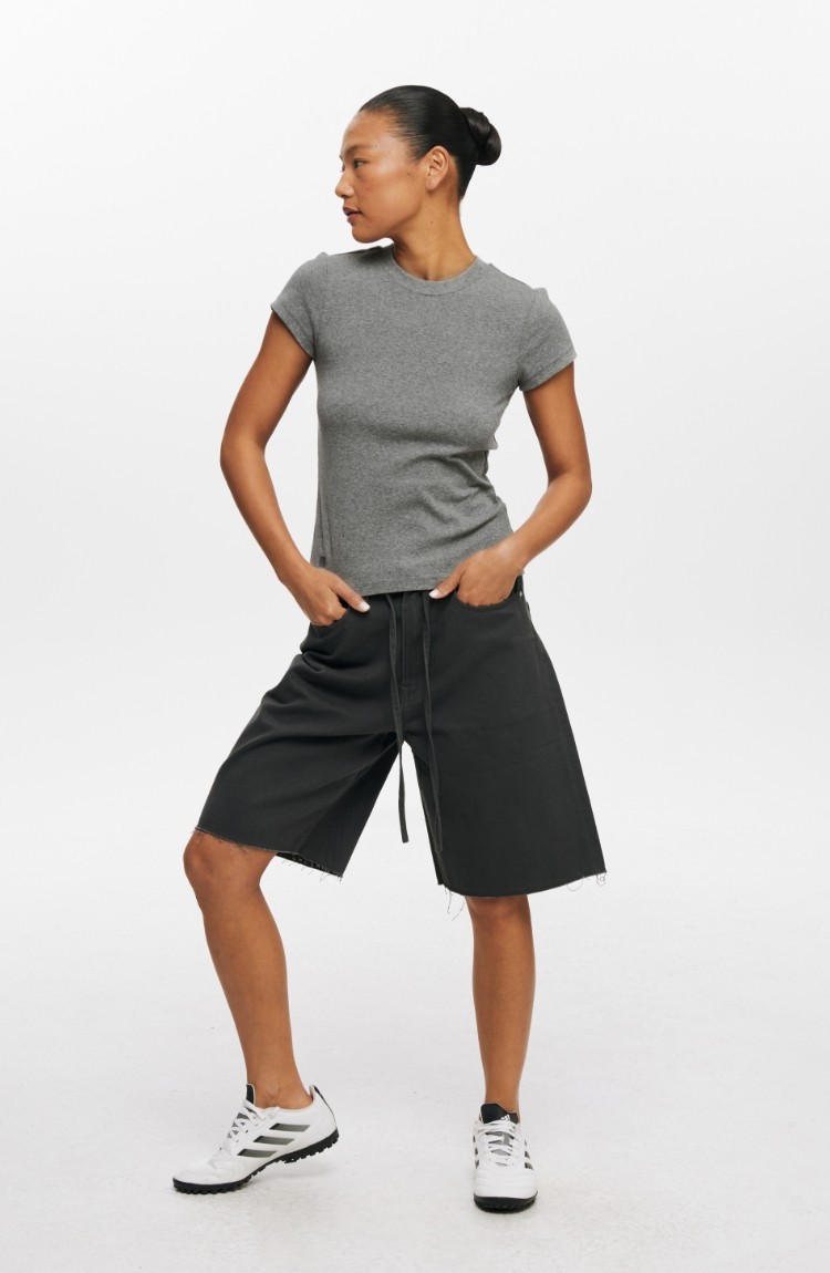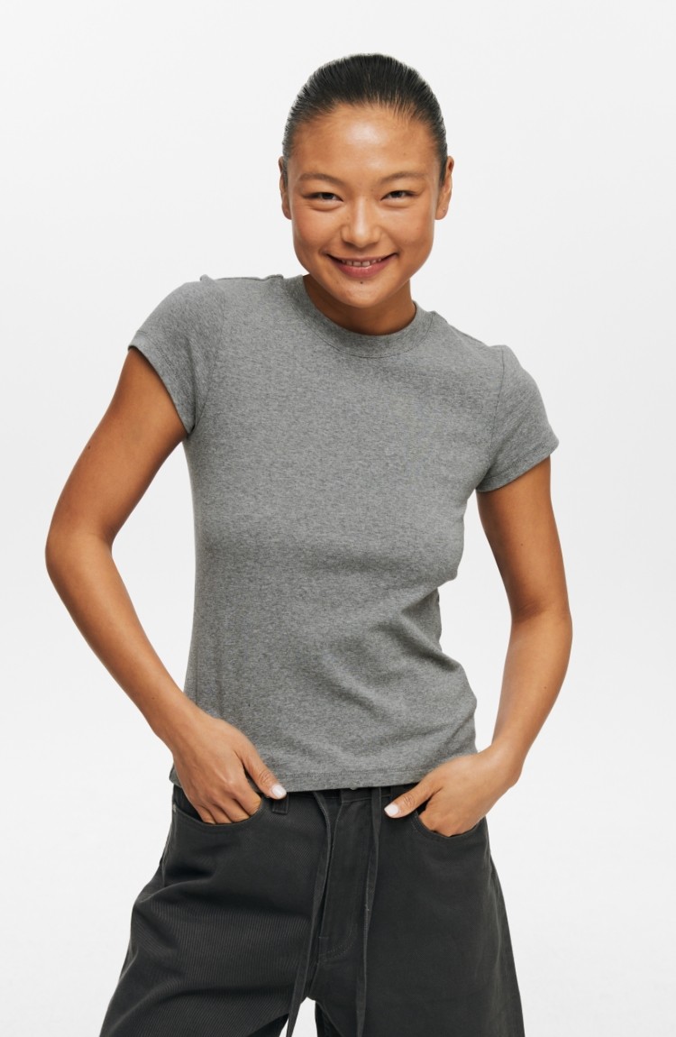 Oneup American Basic Regular Shoulder Elastic T-Shirt 2025 New Summer Slim Fit Black Casual Top Short-Sleeved Women's Style