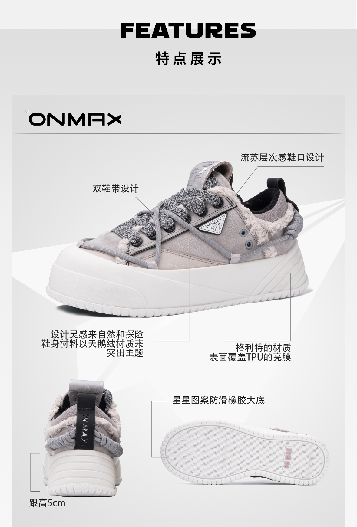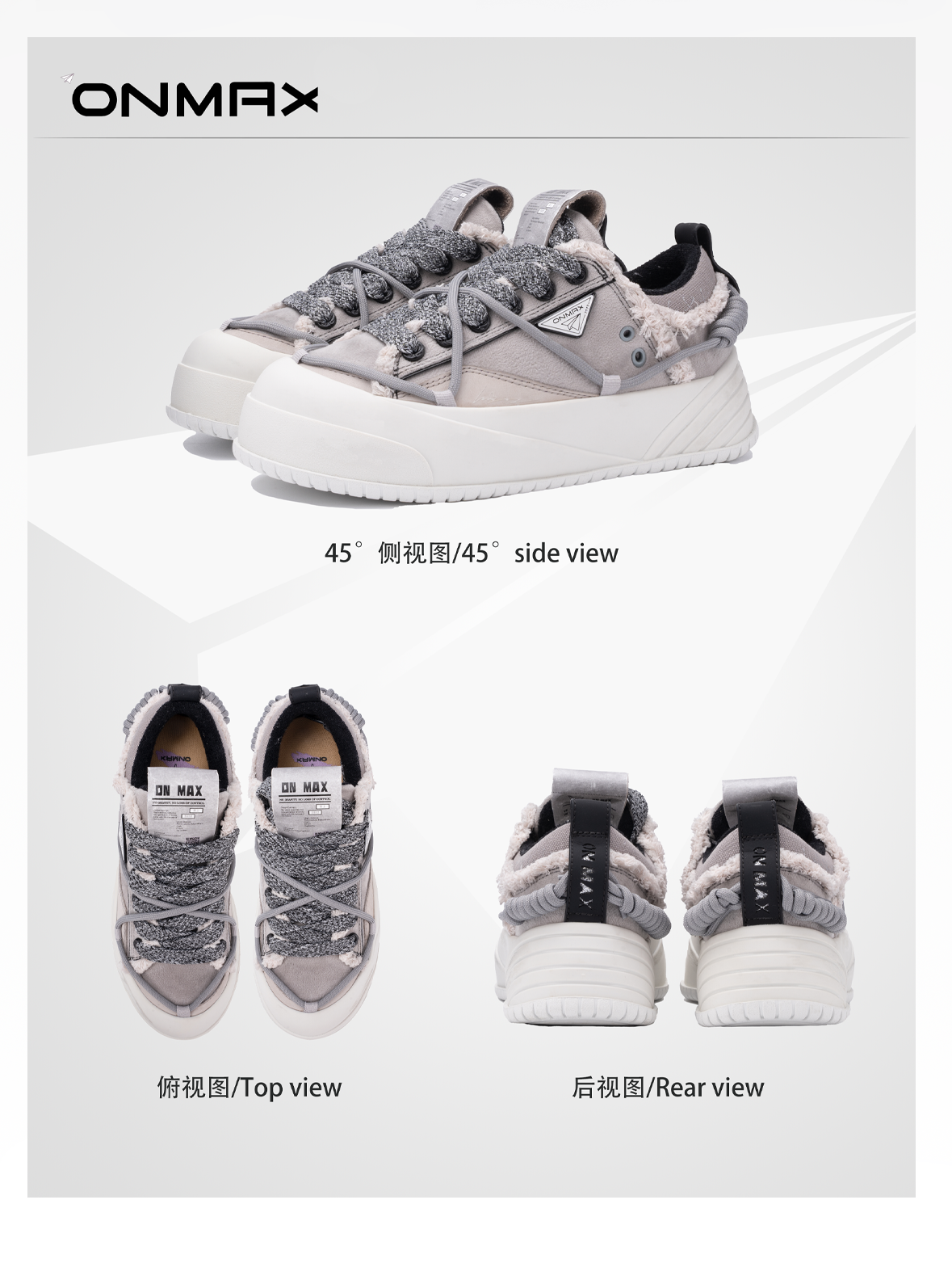 【Yuyan Same Style】Onmax Moon Rock Gray Paper Plane Canvas Shoes Thick Sole Height Increasing Unisex Sneakers 2025 Early Autumn