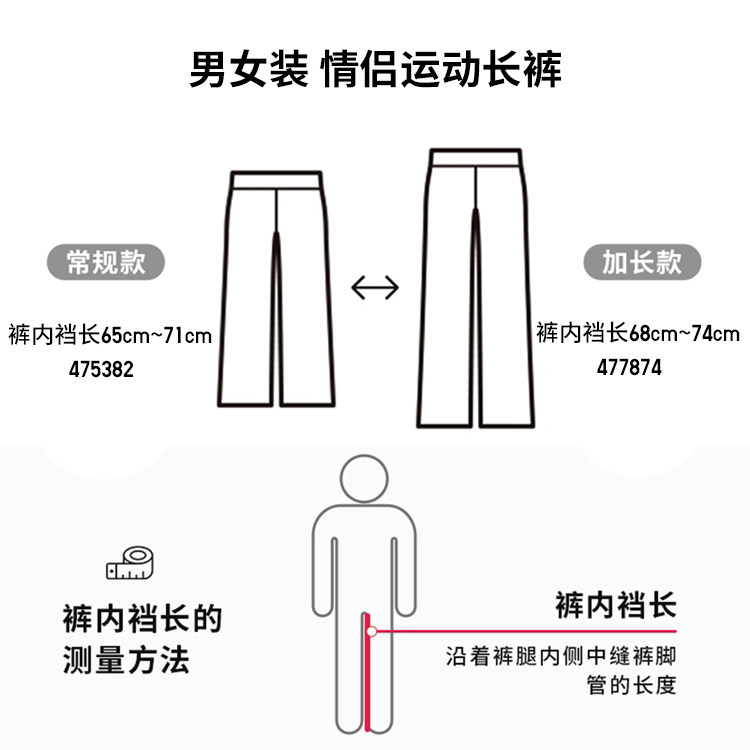 Uniqlo Men's and Women's Sports Pants, Casual Pants, Loose Sweatpants, Extra Long Version 68~74cm 477874