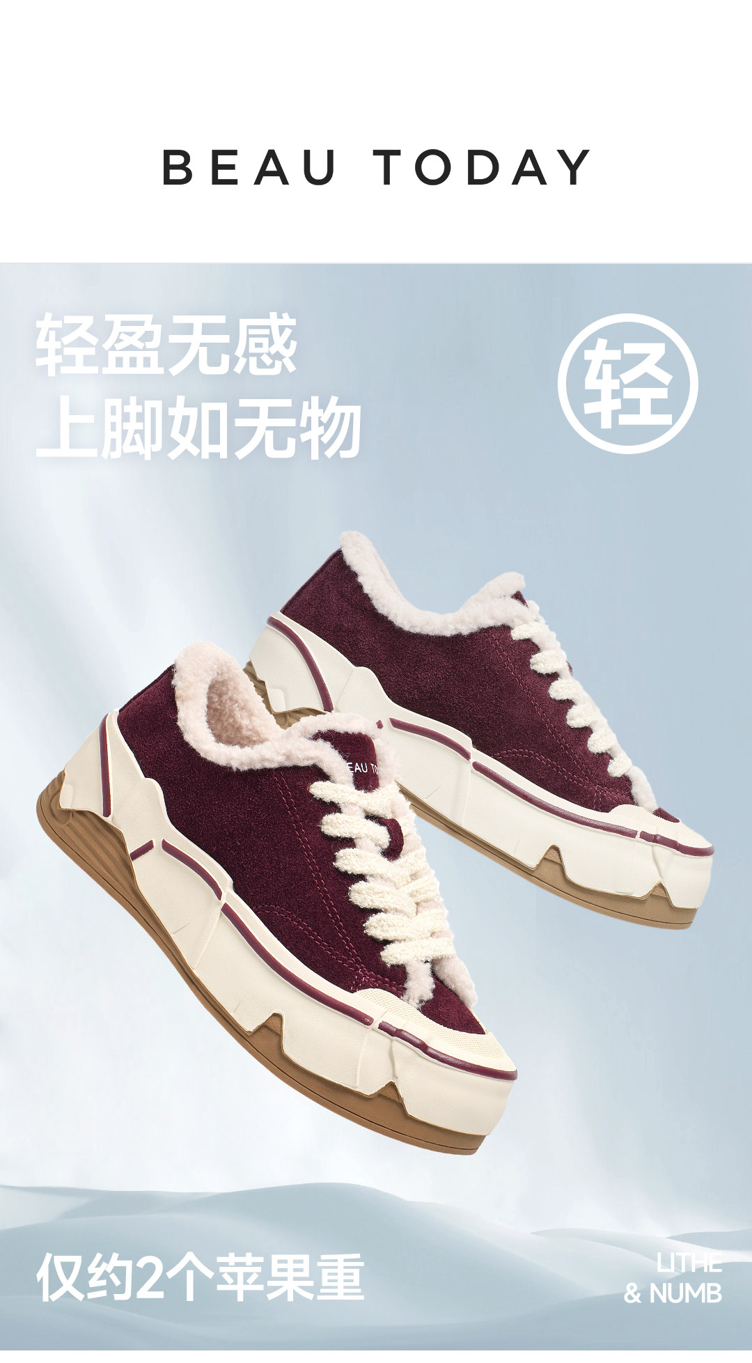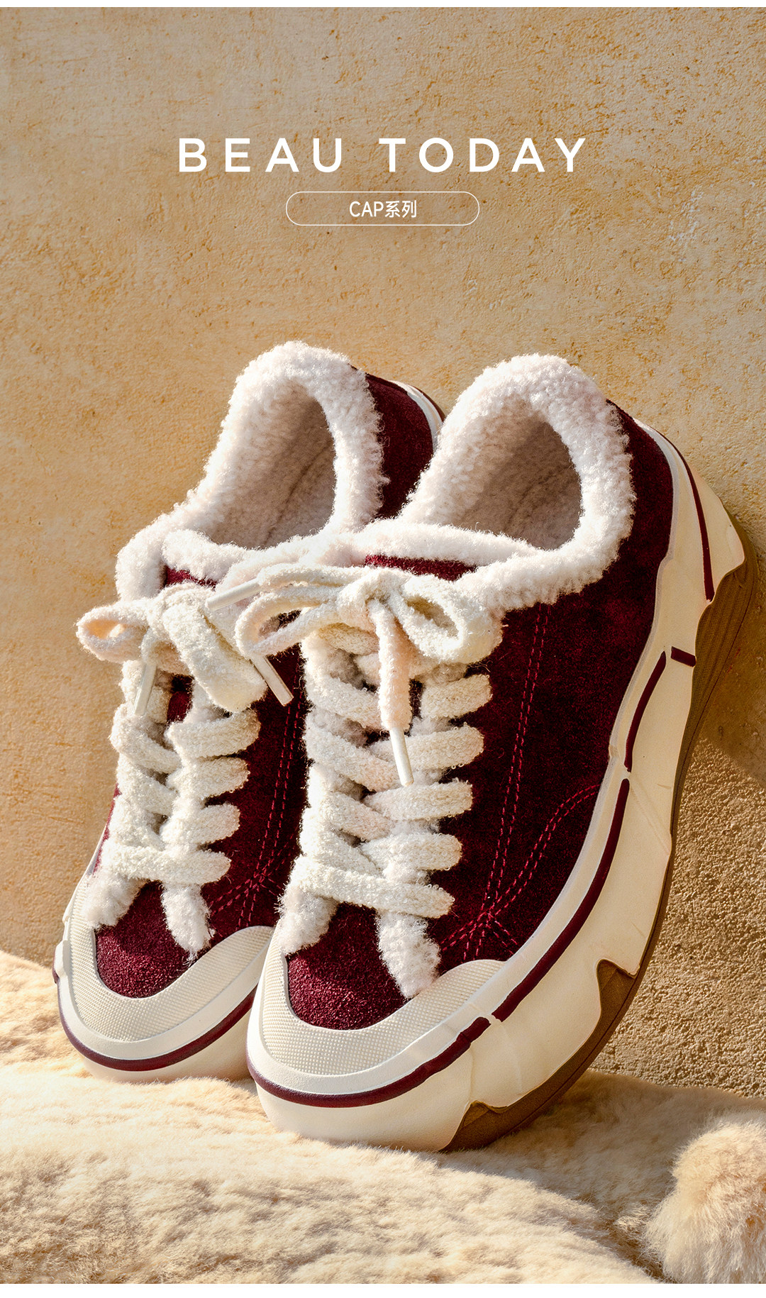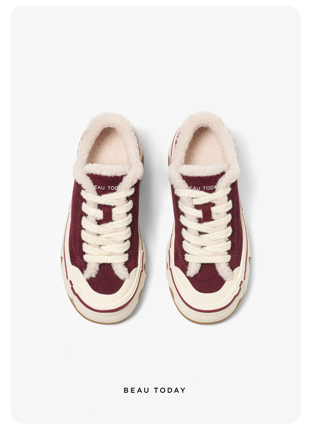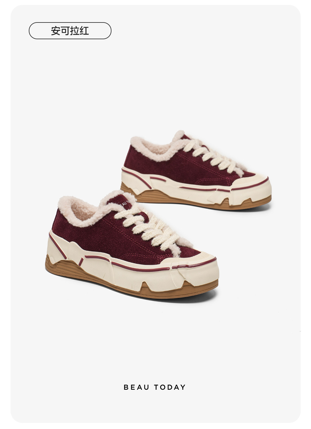 【Duoduo Buyer Store】Beautoday Eggshell Shoes Thick-Soled Furry Shoes for Women Winter with Plush Lining