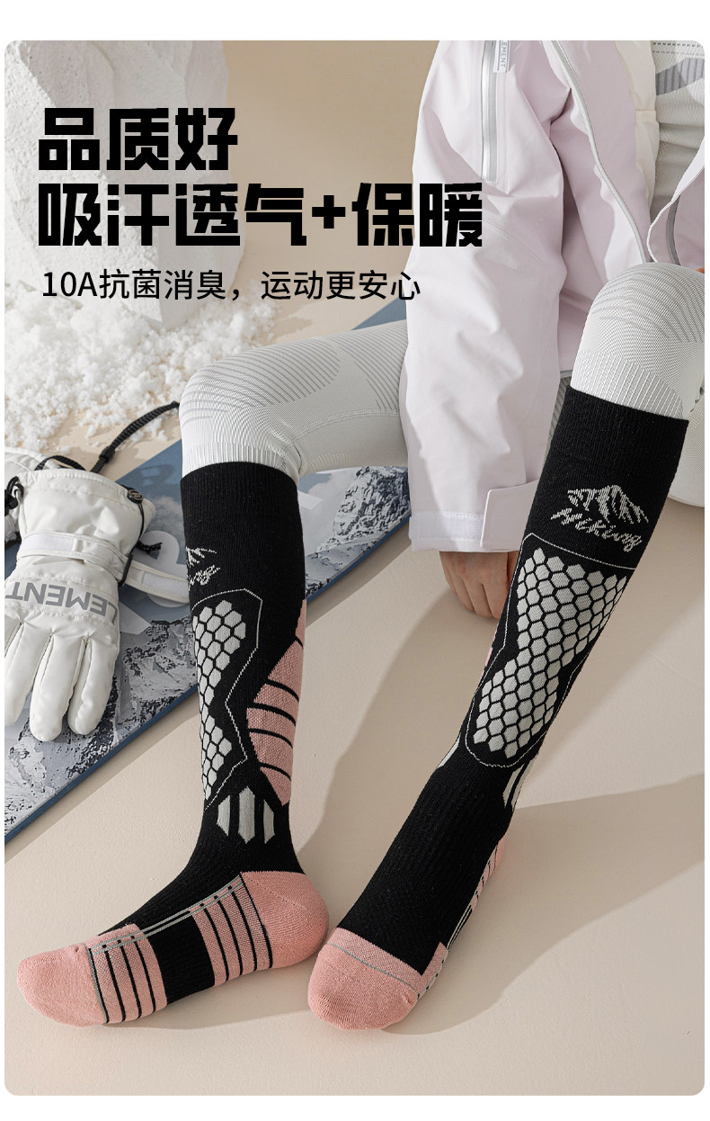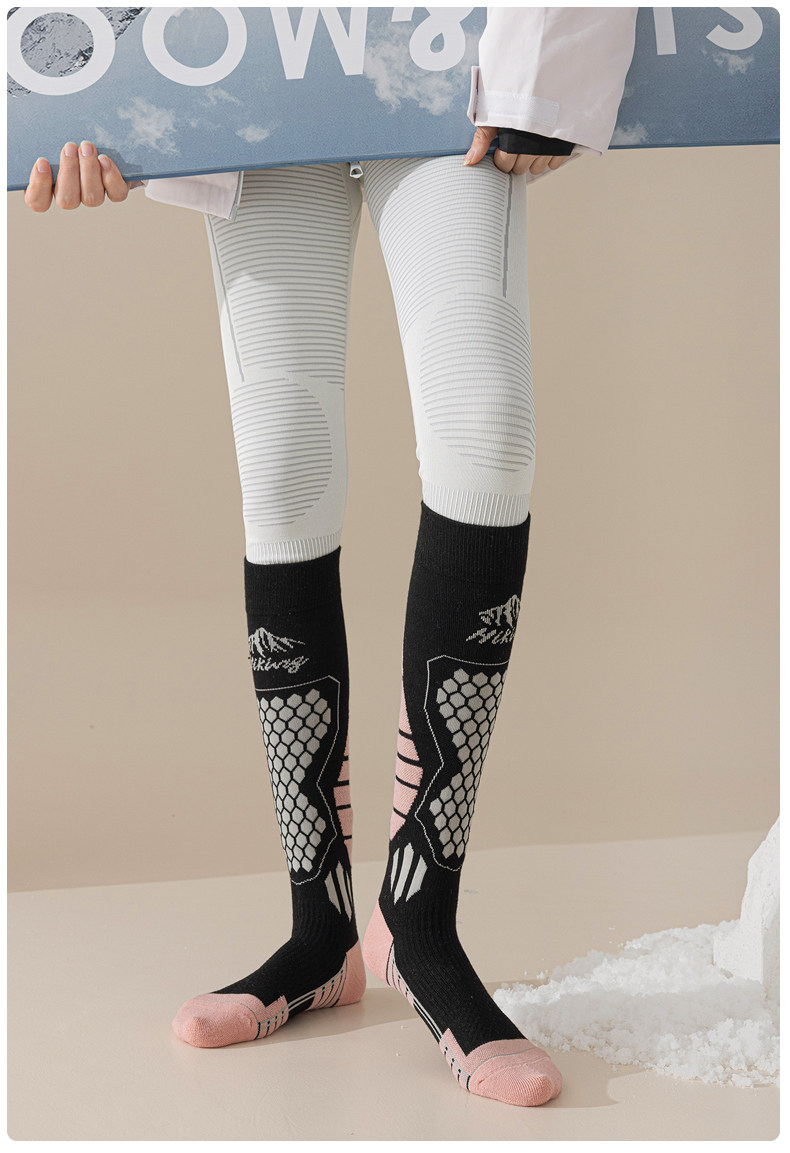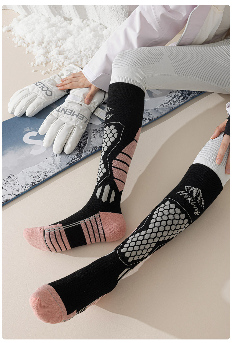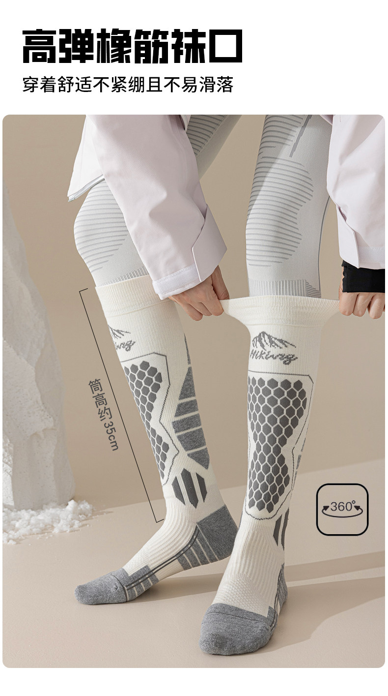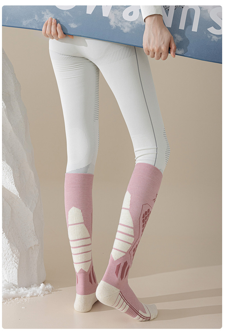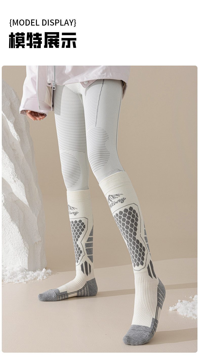 Wool Ski Socks, Cashmere Thickened for Warmth, 10A Antibacterial and Deodorant, Towel Bottom, Professional Sports Compression Calf Socks for Women