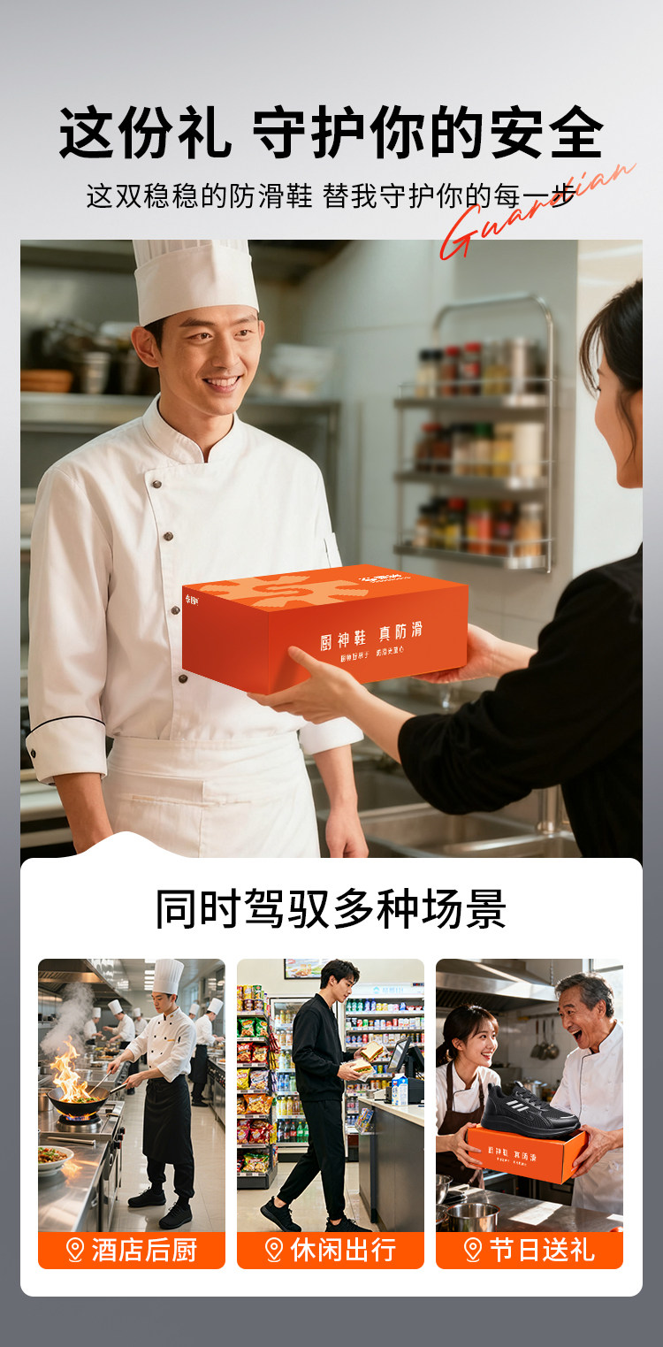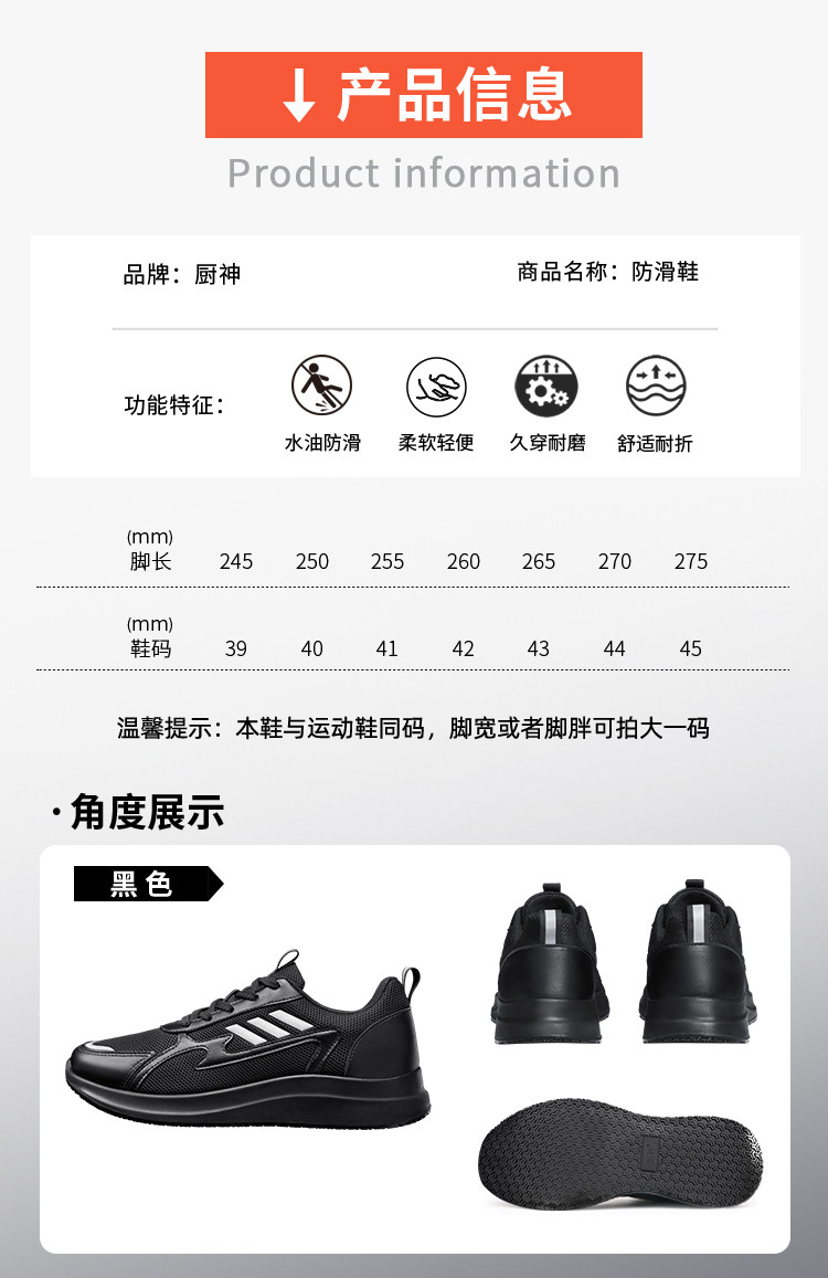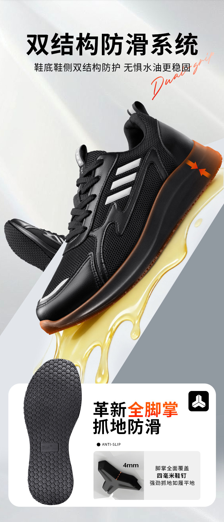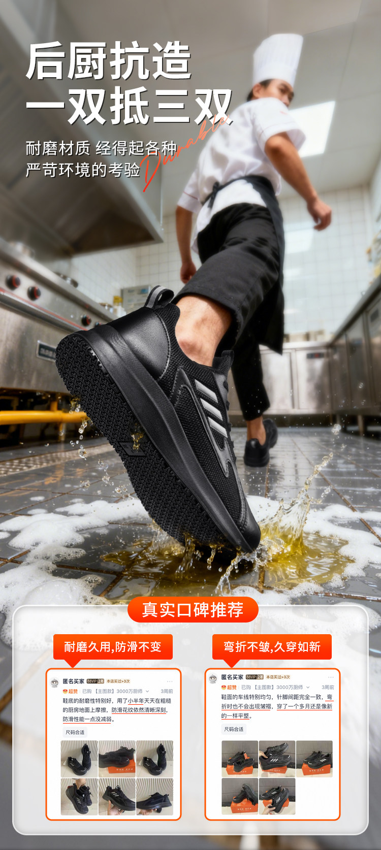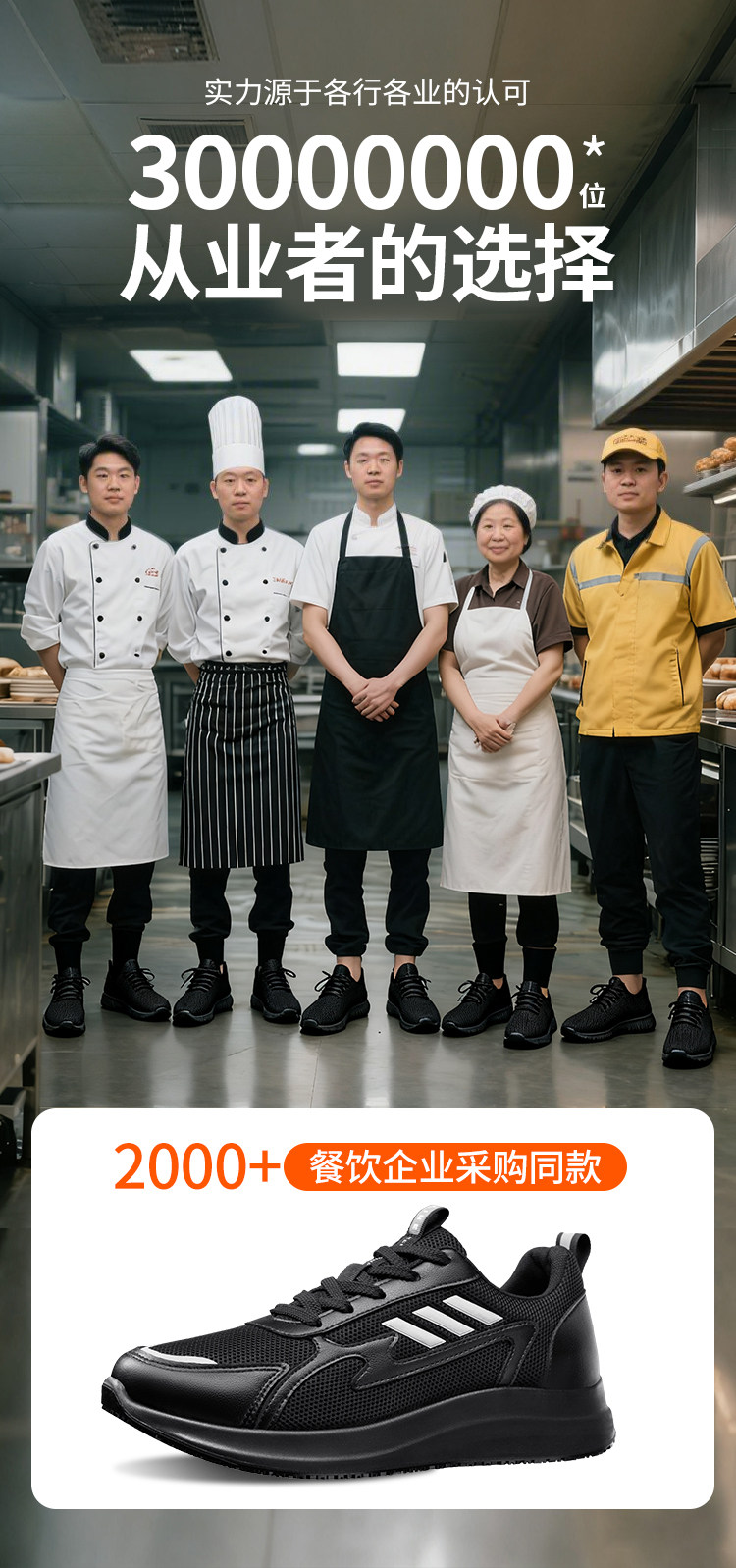 Chef Professional Chef Shoes for Men, Non-Slip, Waterproof, Oil-Proof, Soft-Soled Kitchen Work Shoes, Black, Specially Designed for the Kitchen