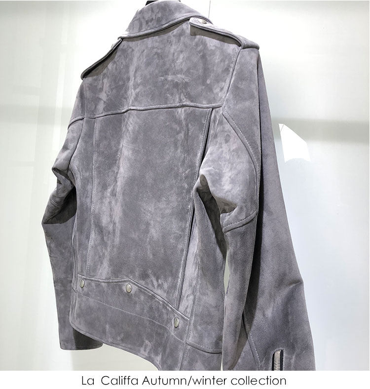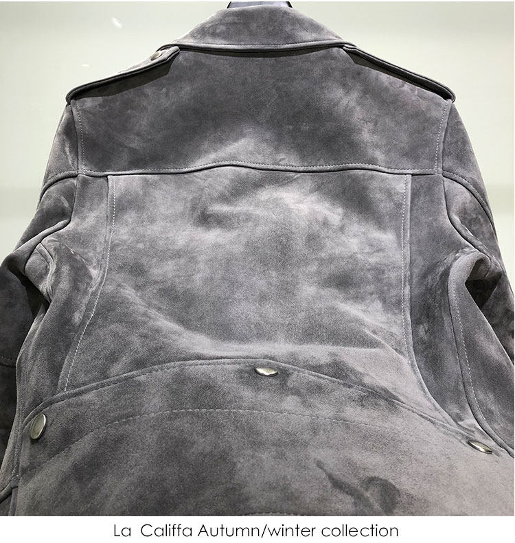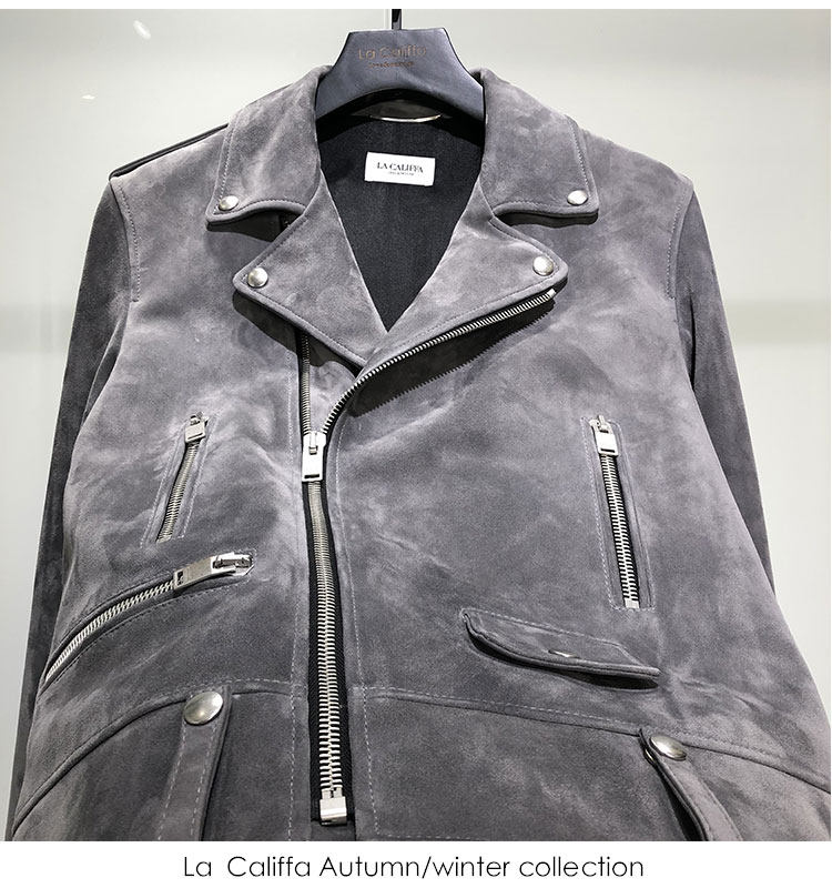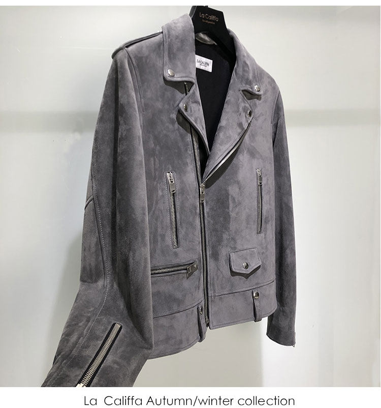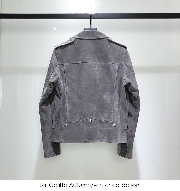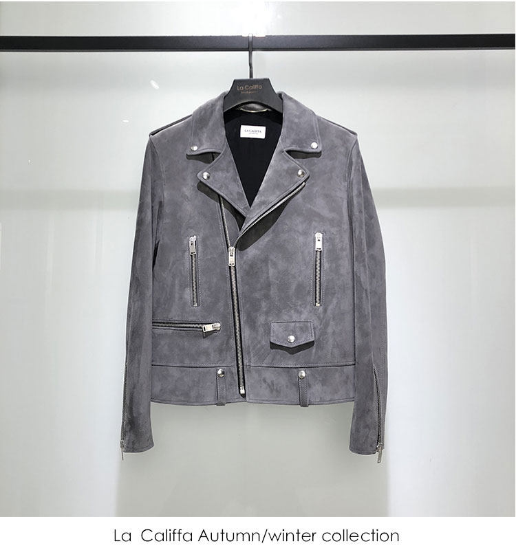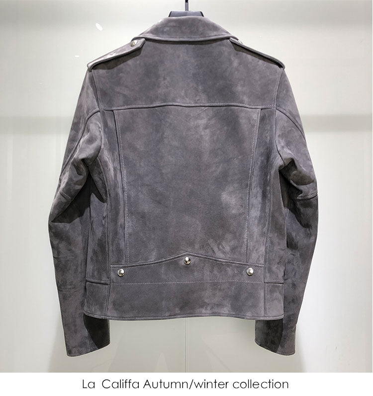 La Califfa Cloud Mud L01 Mist Gray Suede Lambskin Slim Fit Biker Jacket Leather Coat