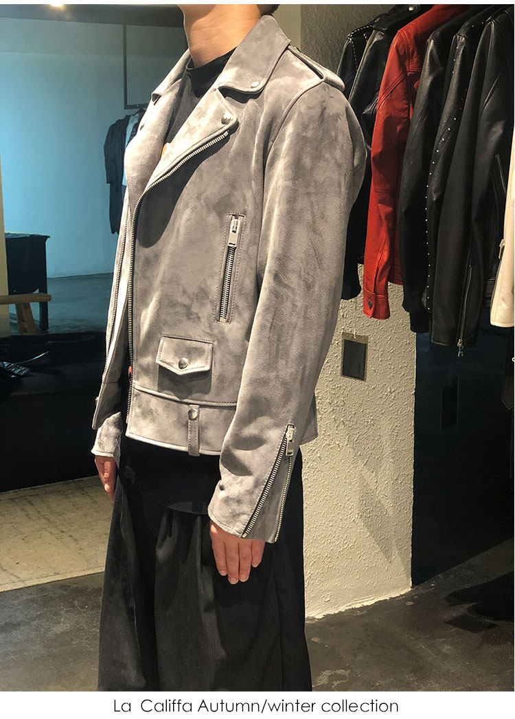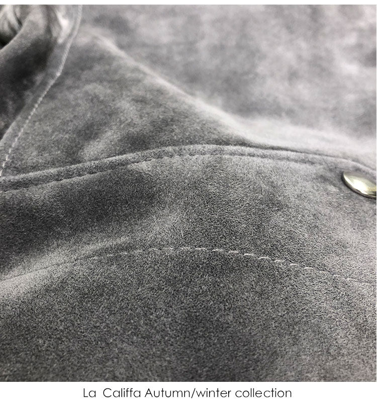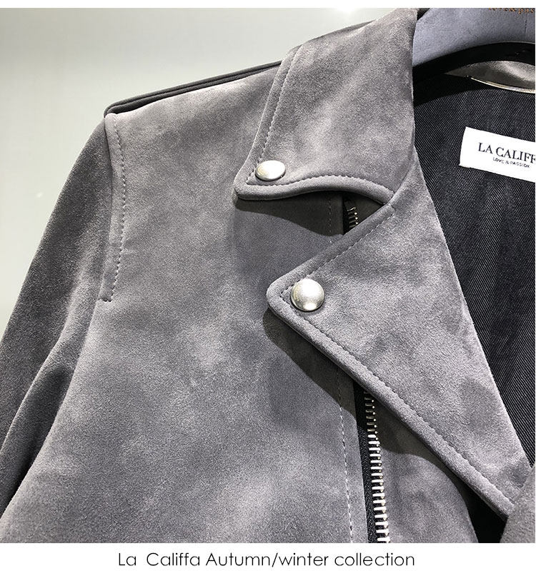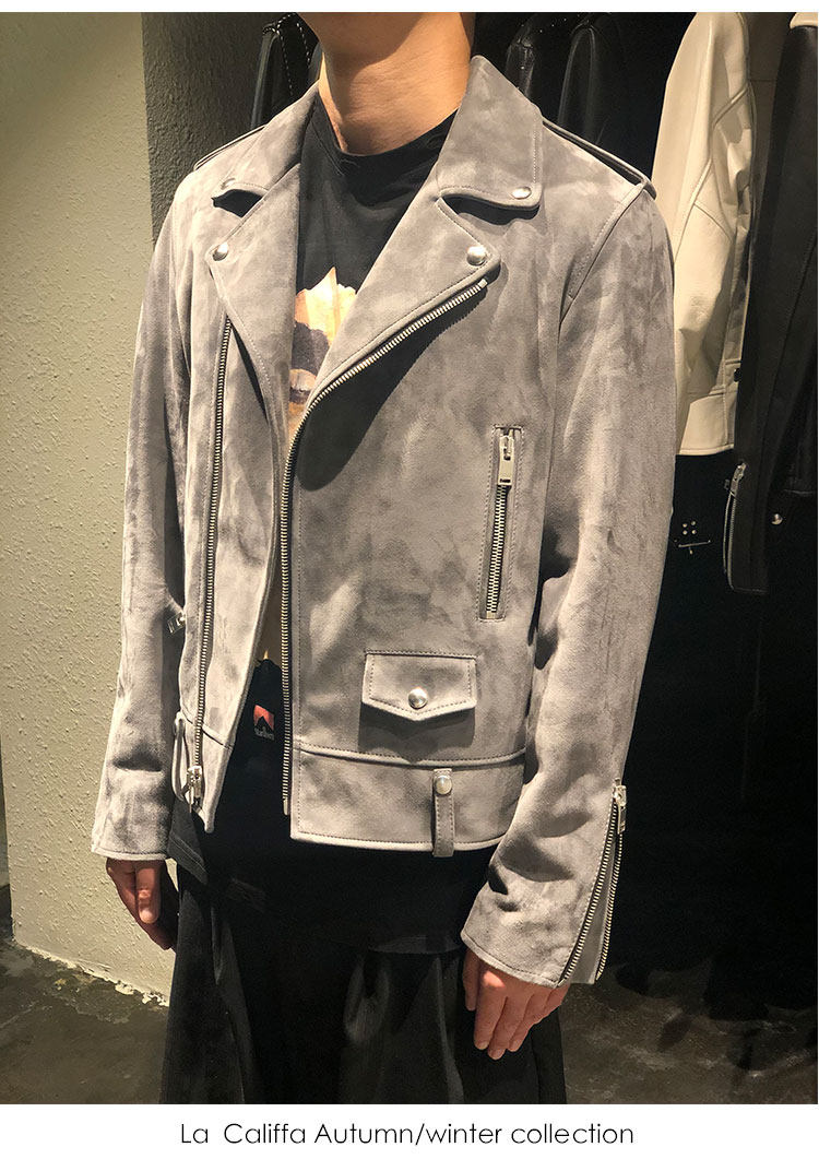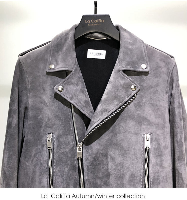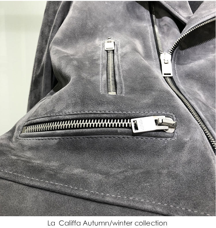 La Califfa Cloud Mud L01 Mist Gray Suede Lambskin Slim Fit Biker Jacket Leather Coat