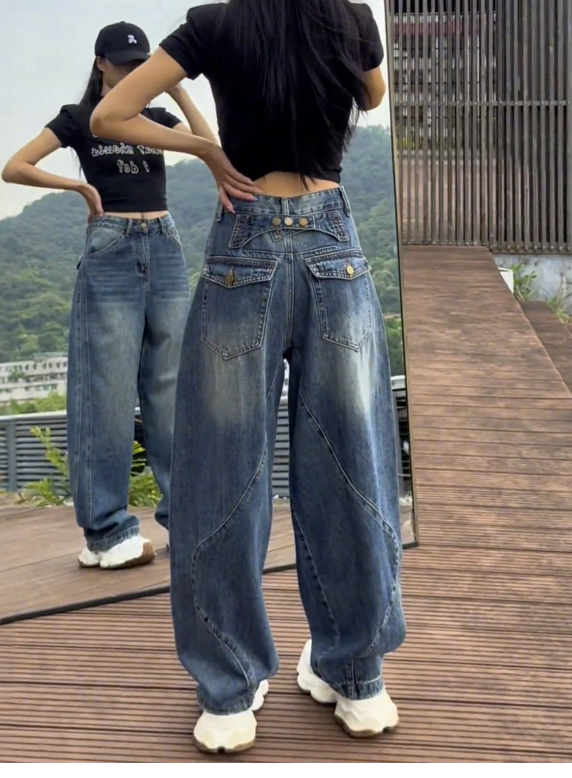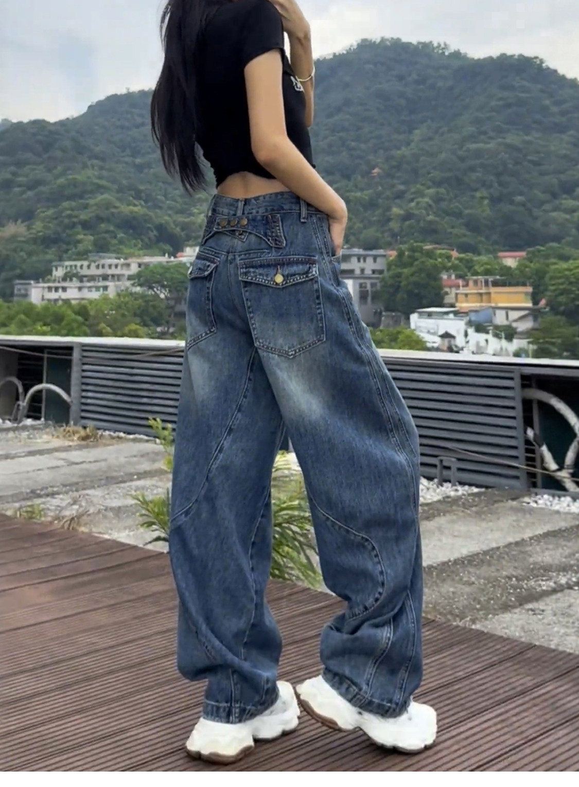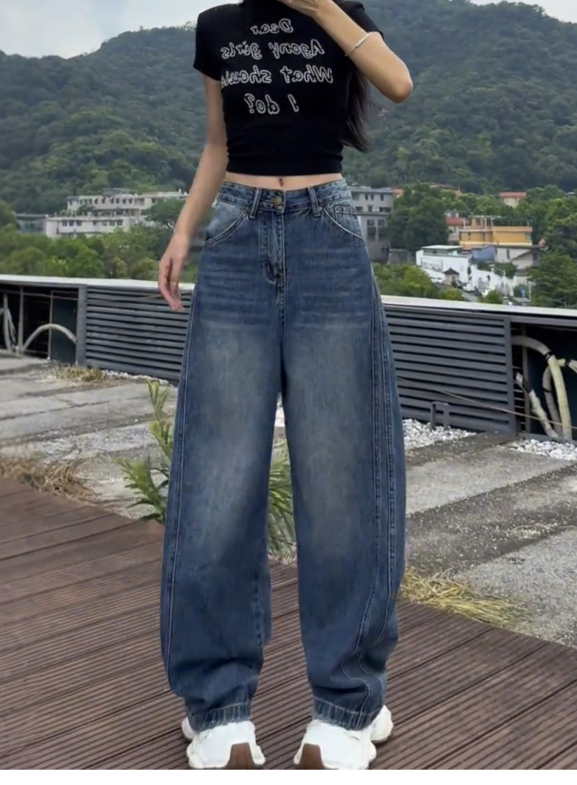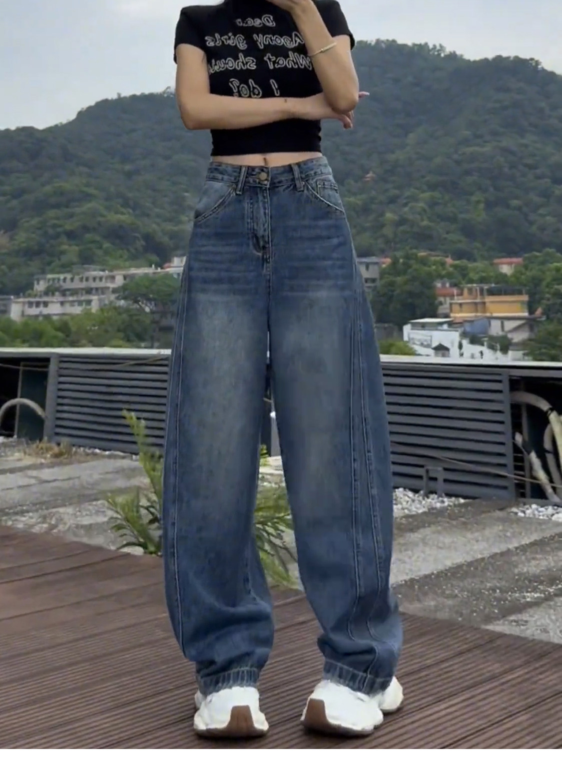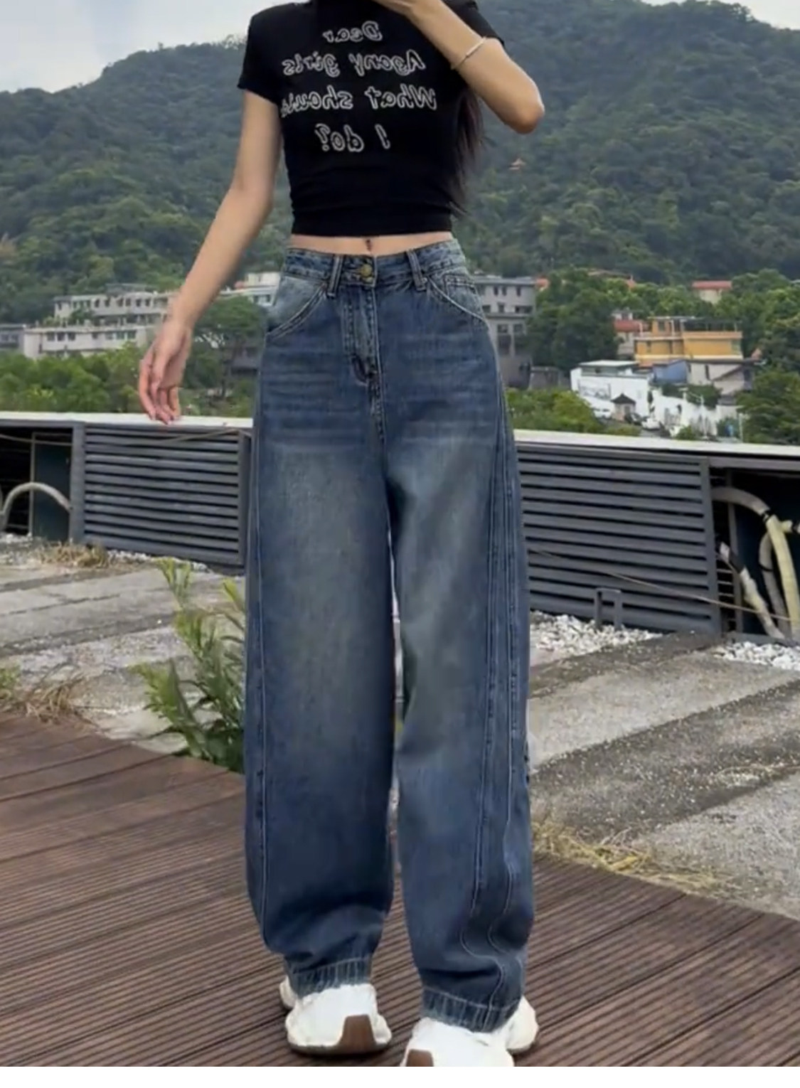 Plus-Size Fleece-Lined Scimitar Jeans for Women, Autumn and Winter 2025 New Wide-Leg Pants, Slimming American-Style Straight Pants for Plus-Size Women