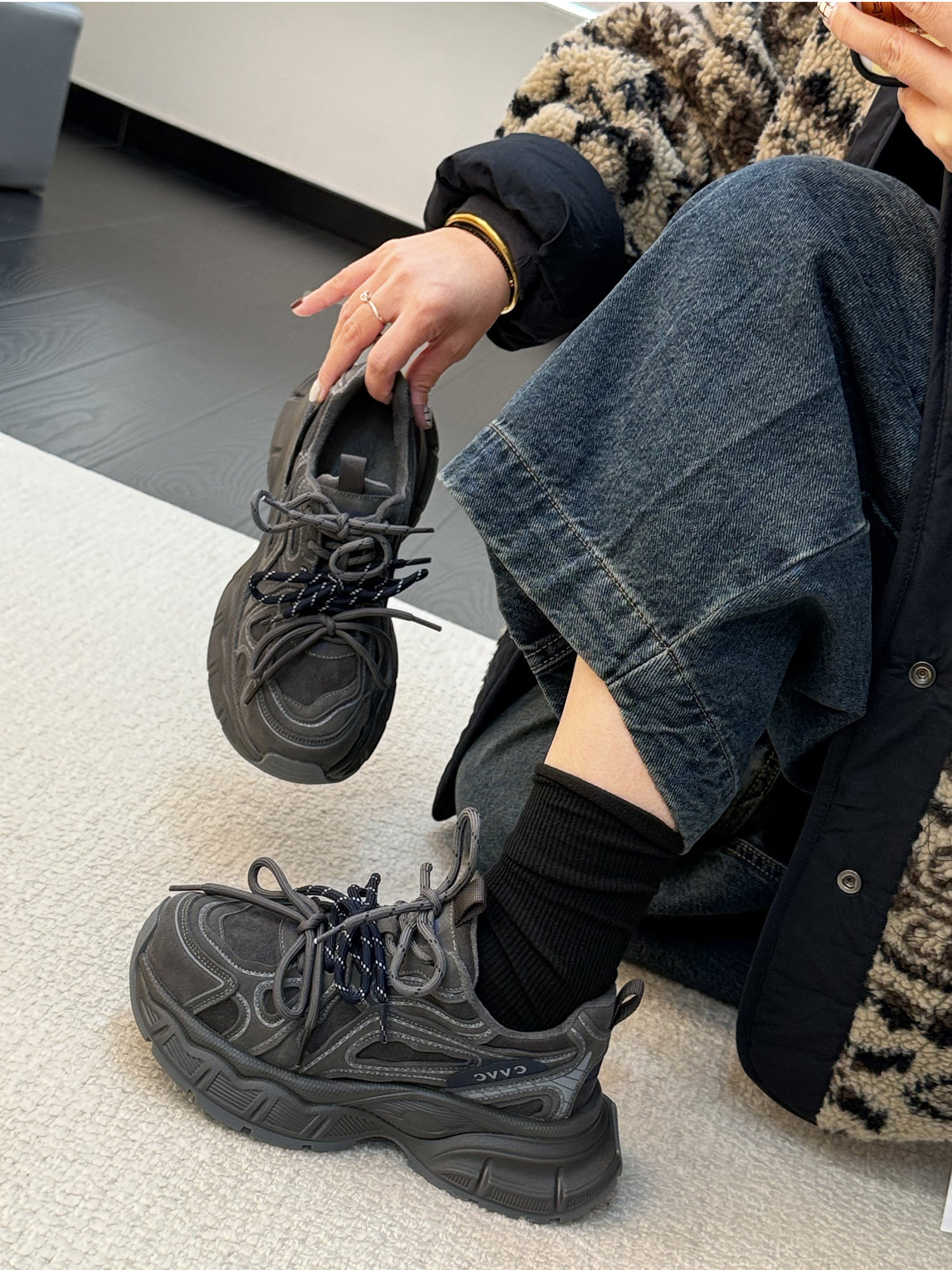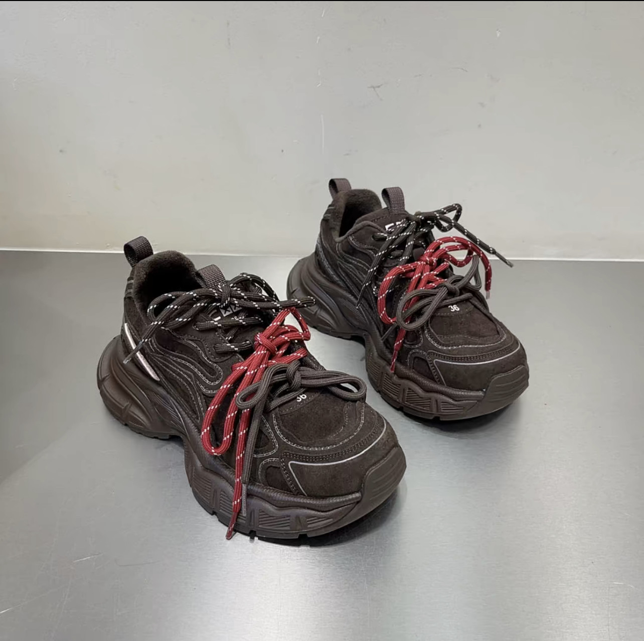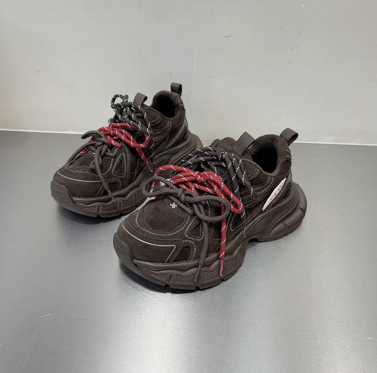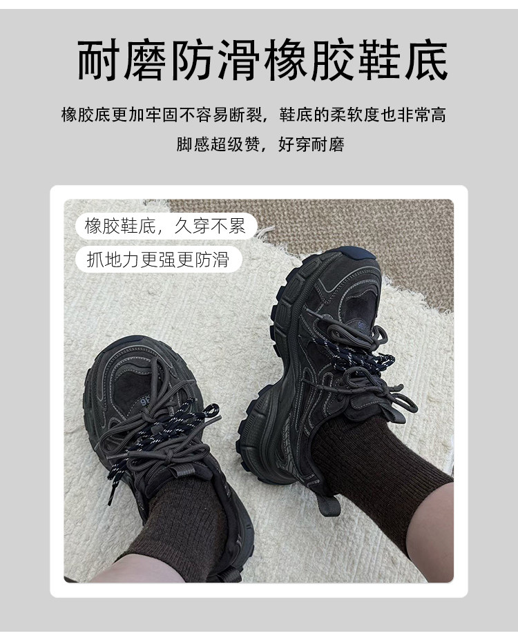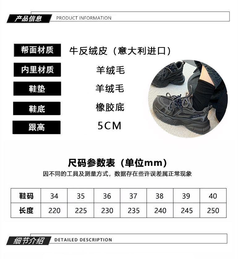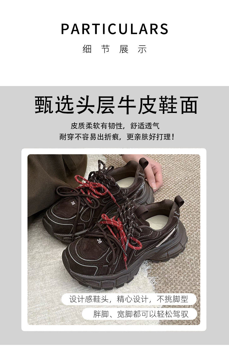 Hong Kong Genuine Leather Retro Thick-Soled Height-Increasing Dad Shoes with Plush Lining for Women, Versatile for Spring and Autumn 2025, Double Shoelaces Casual Sneakers
