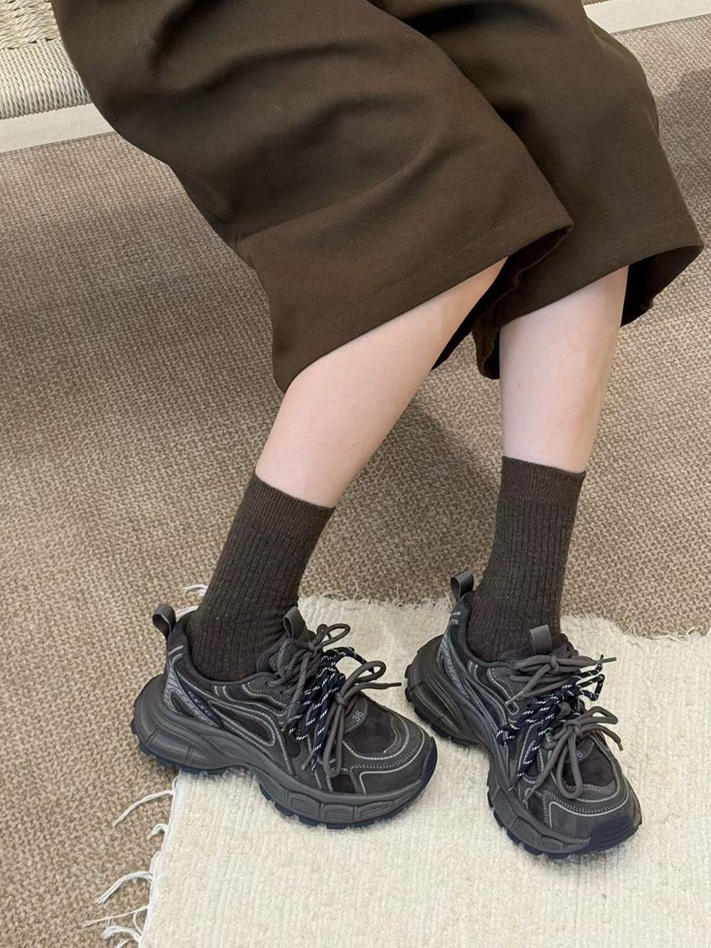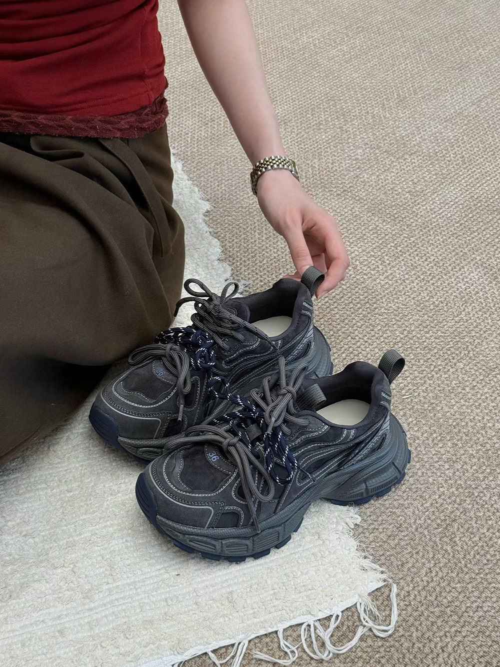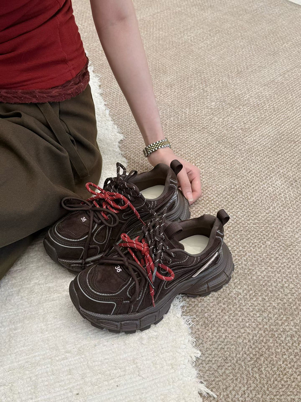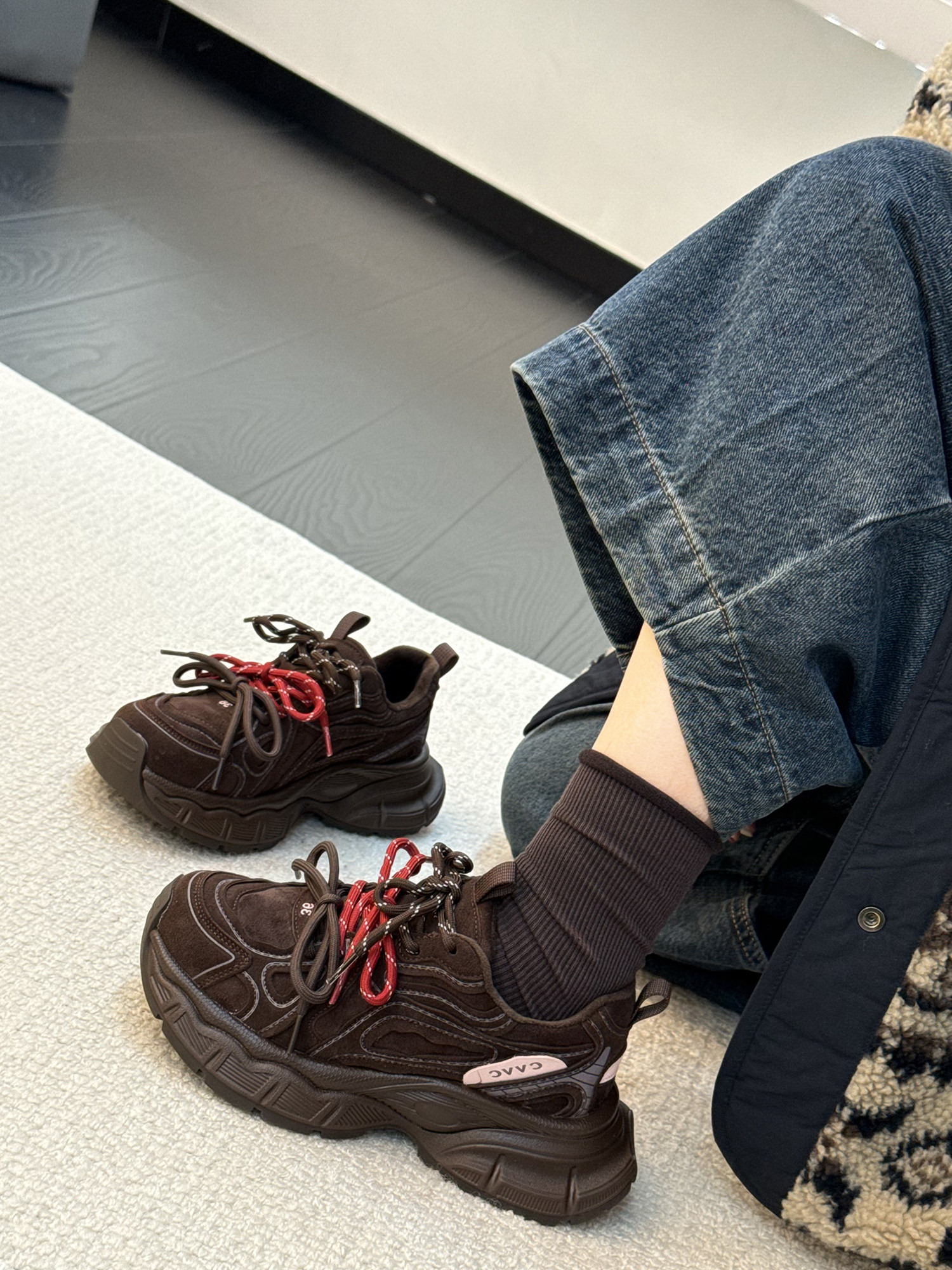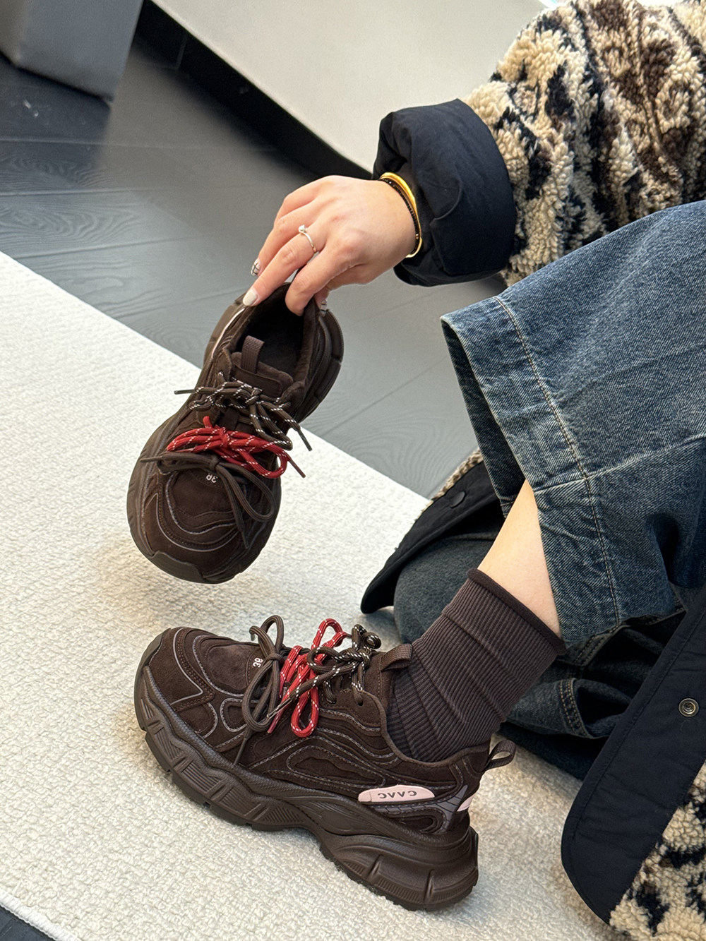 Hong Kong Genuine Leather Retro Thick-Soled Height-Increasing Dad Shoes with Plush Lining for Women, Versatile for Spring and Autumn 2025, Double Shoelaces Casual Sneakers
