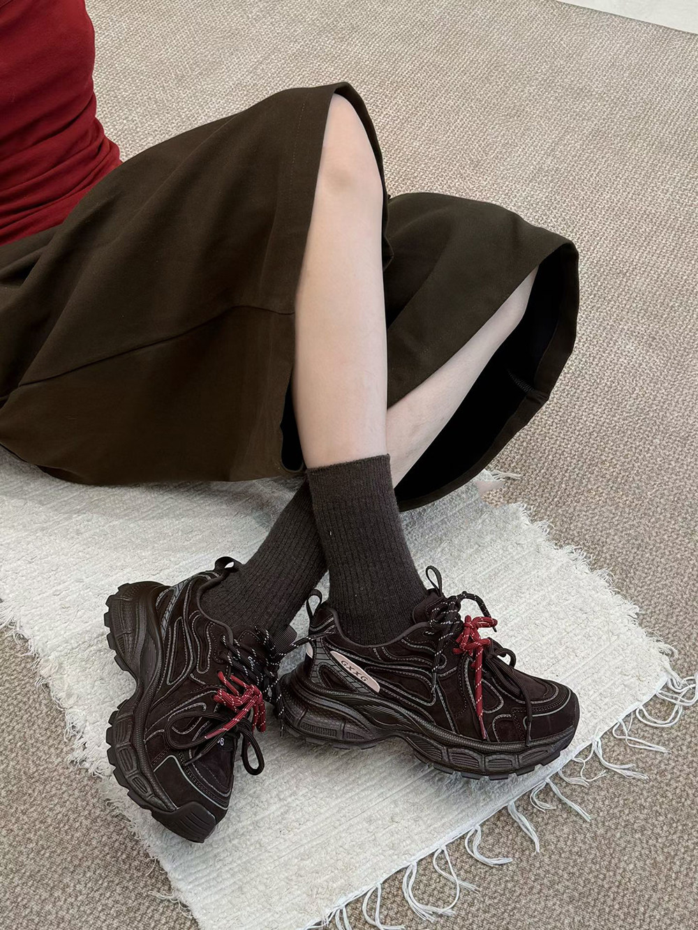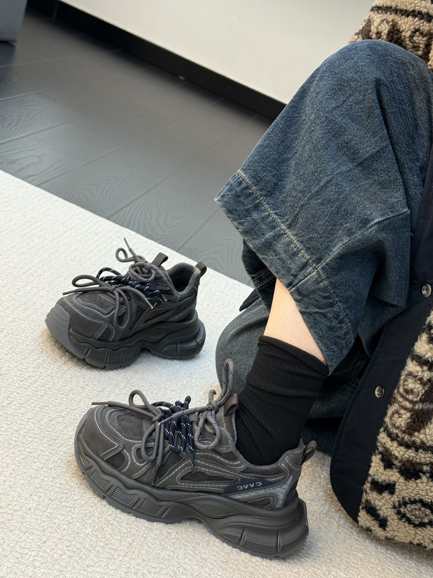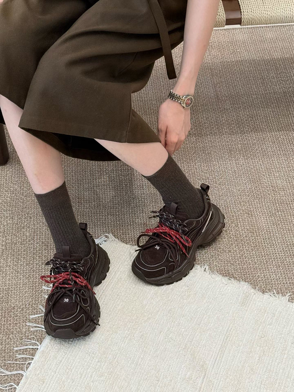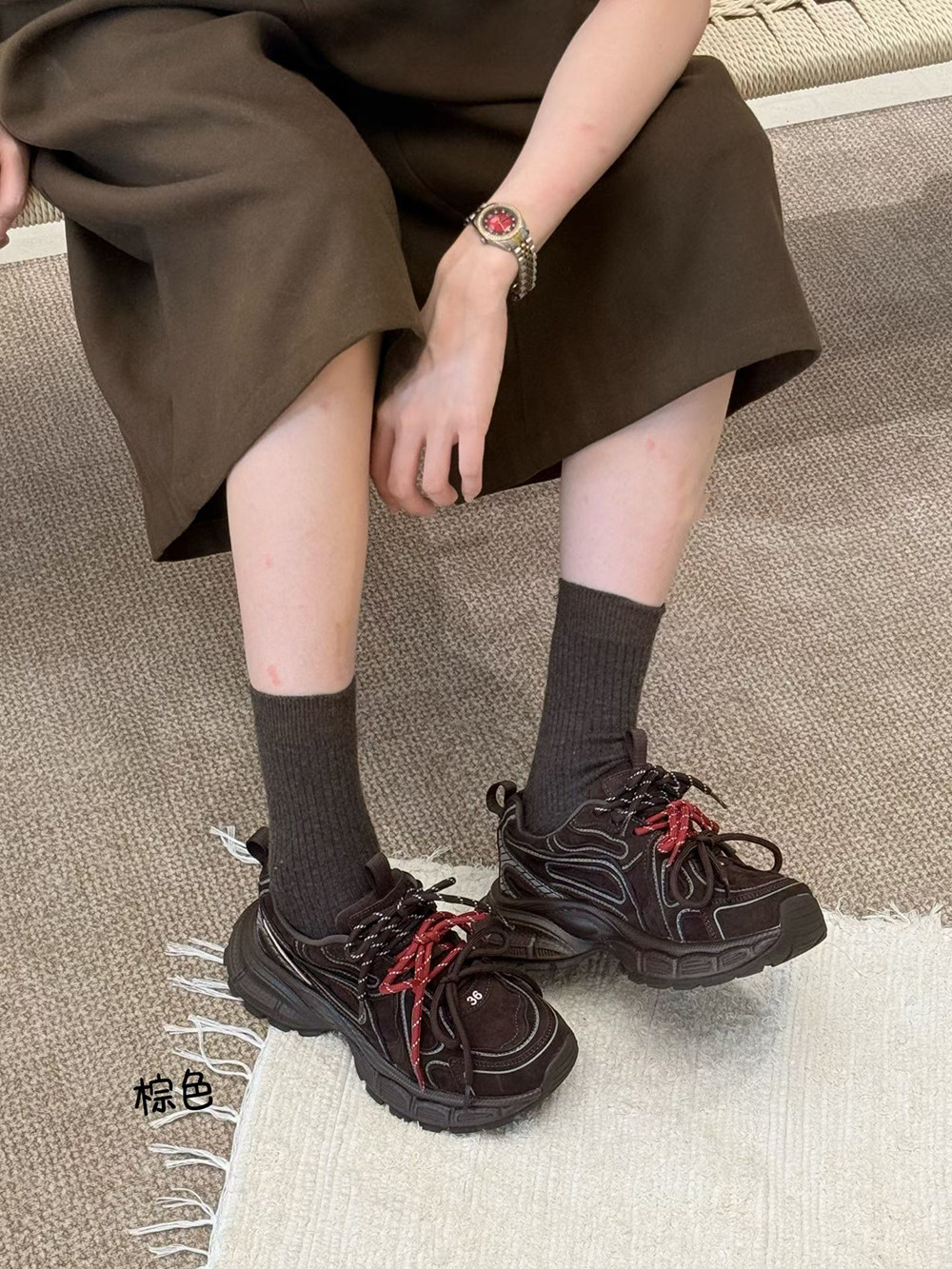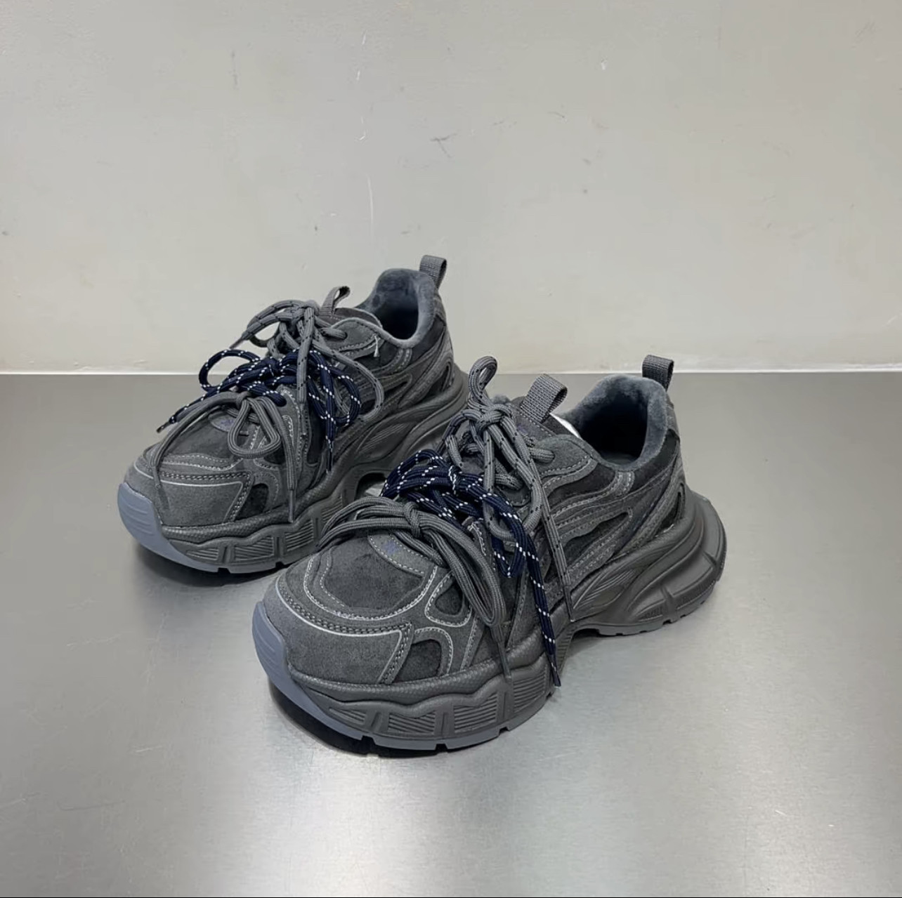 Hong Kong Genuine Leather Retro Thick-Soled Height-Increasing Dad Shoes with Plush Lining for Women, Versatile for Spring and Autumn 2025, Double Shoelaces Casual Sneakers