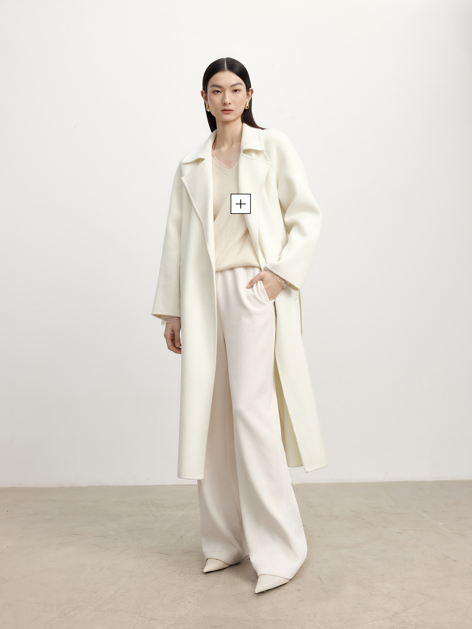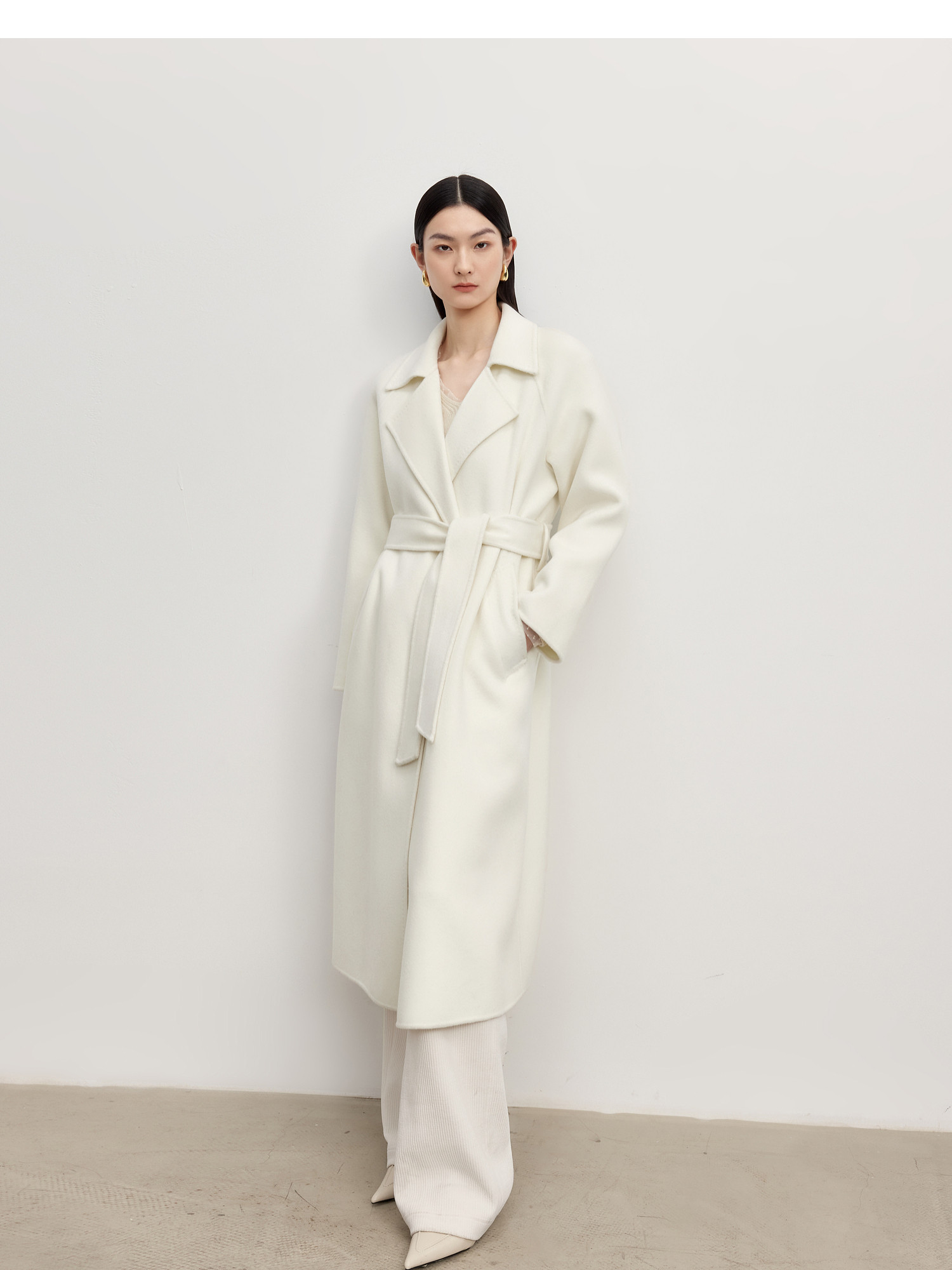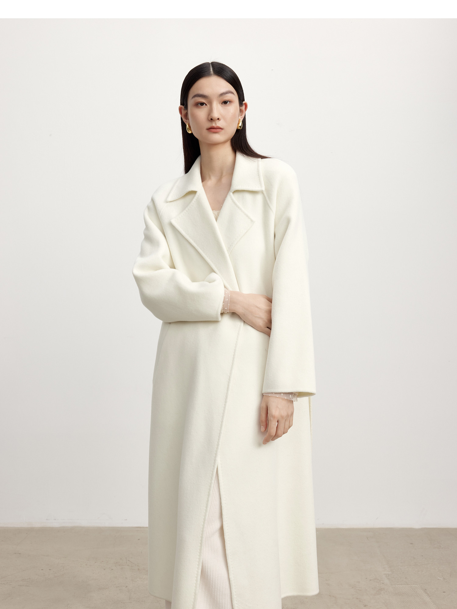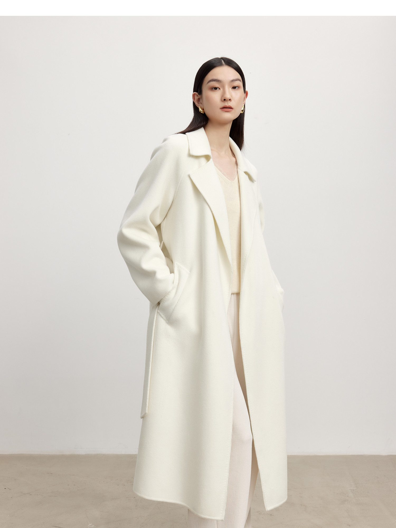 Eveli White Moonlight Elegant Wool White High-End Double-Sided Cashmere Coat for Women Autumn and Winter Outerwear