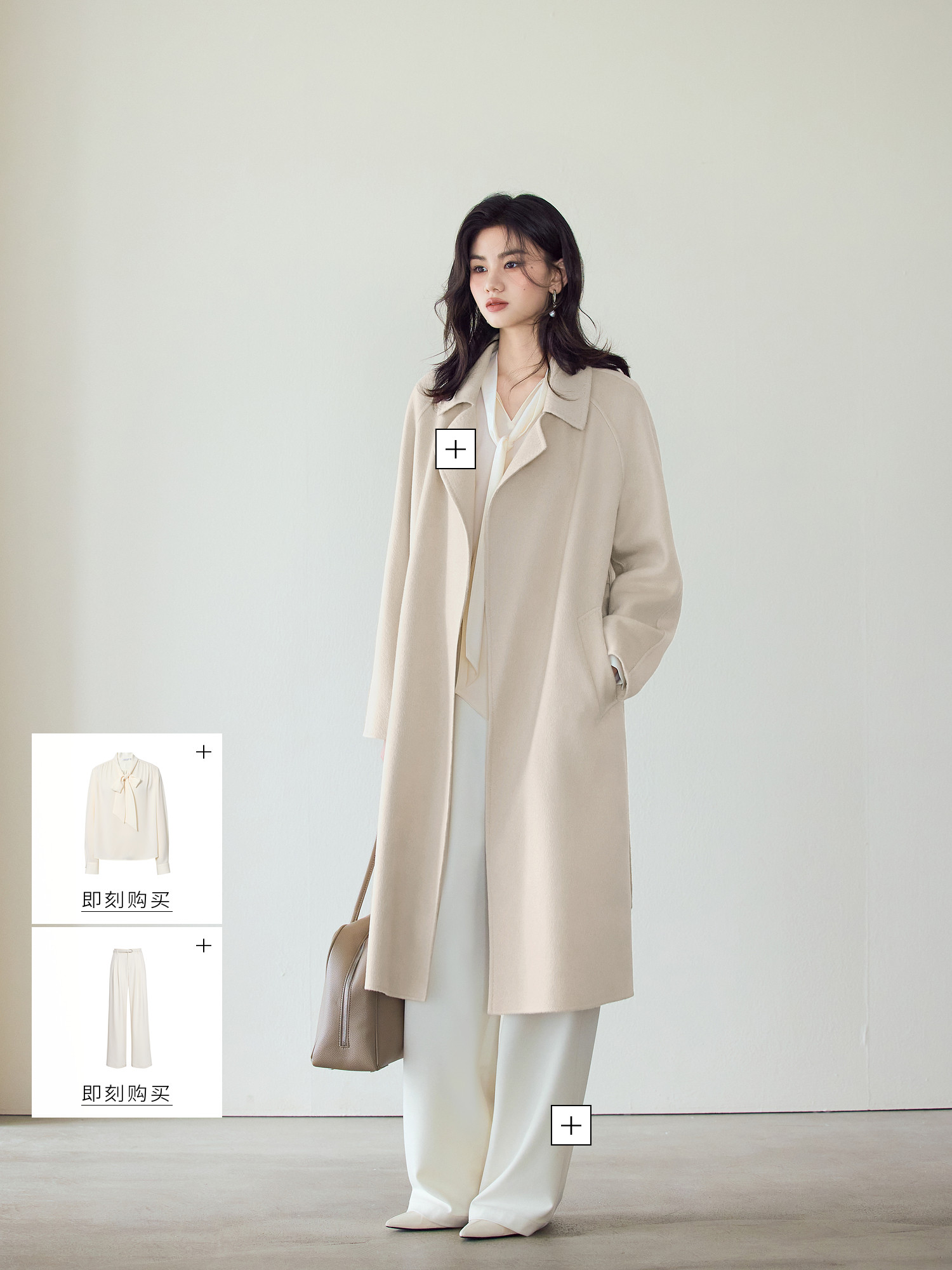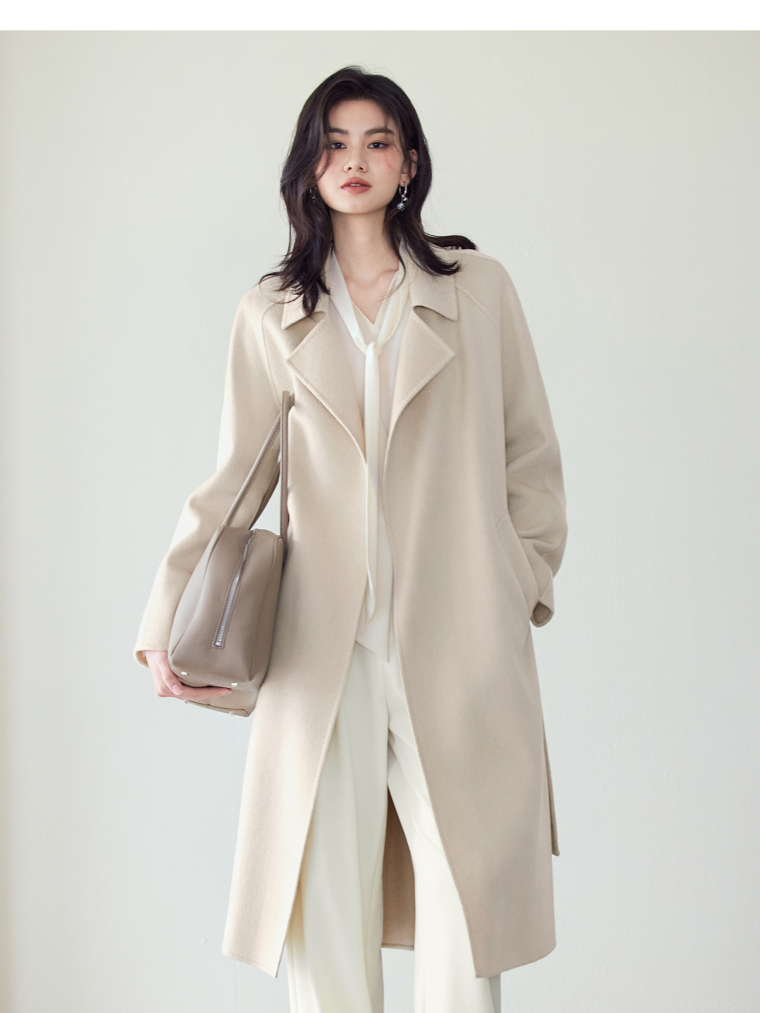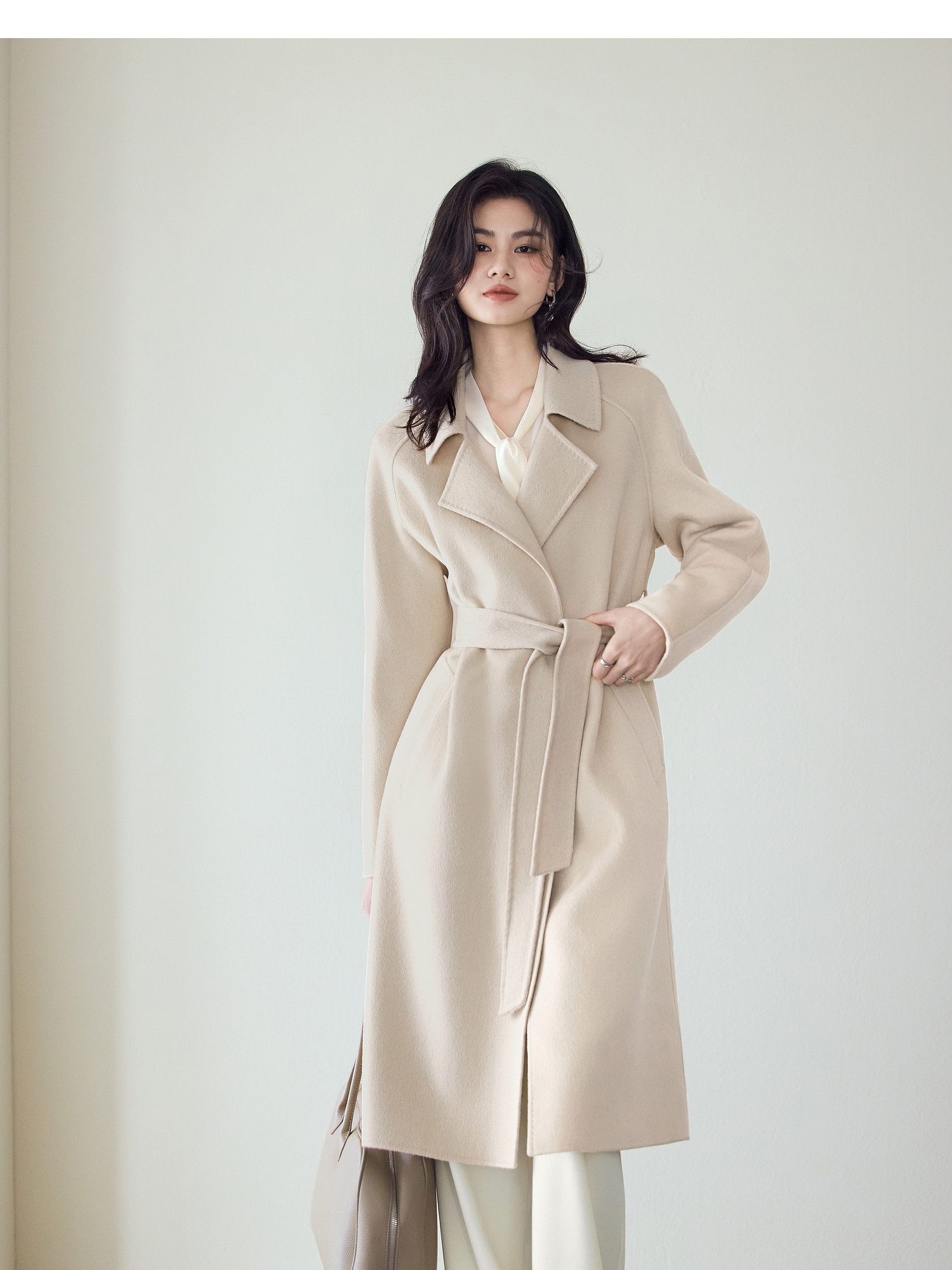 Eveli White Moonlight Elegant Wool White High-End Double-Sided Cashmere Coat for Women Autumn and Winter Outerwear