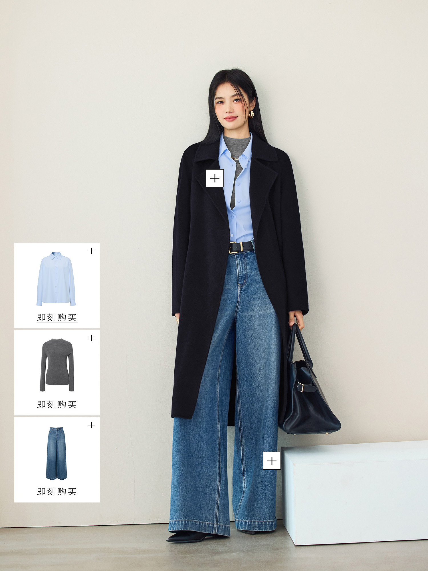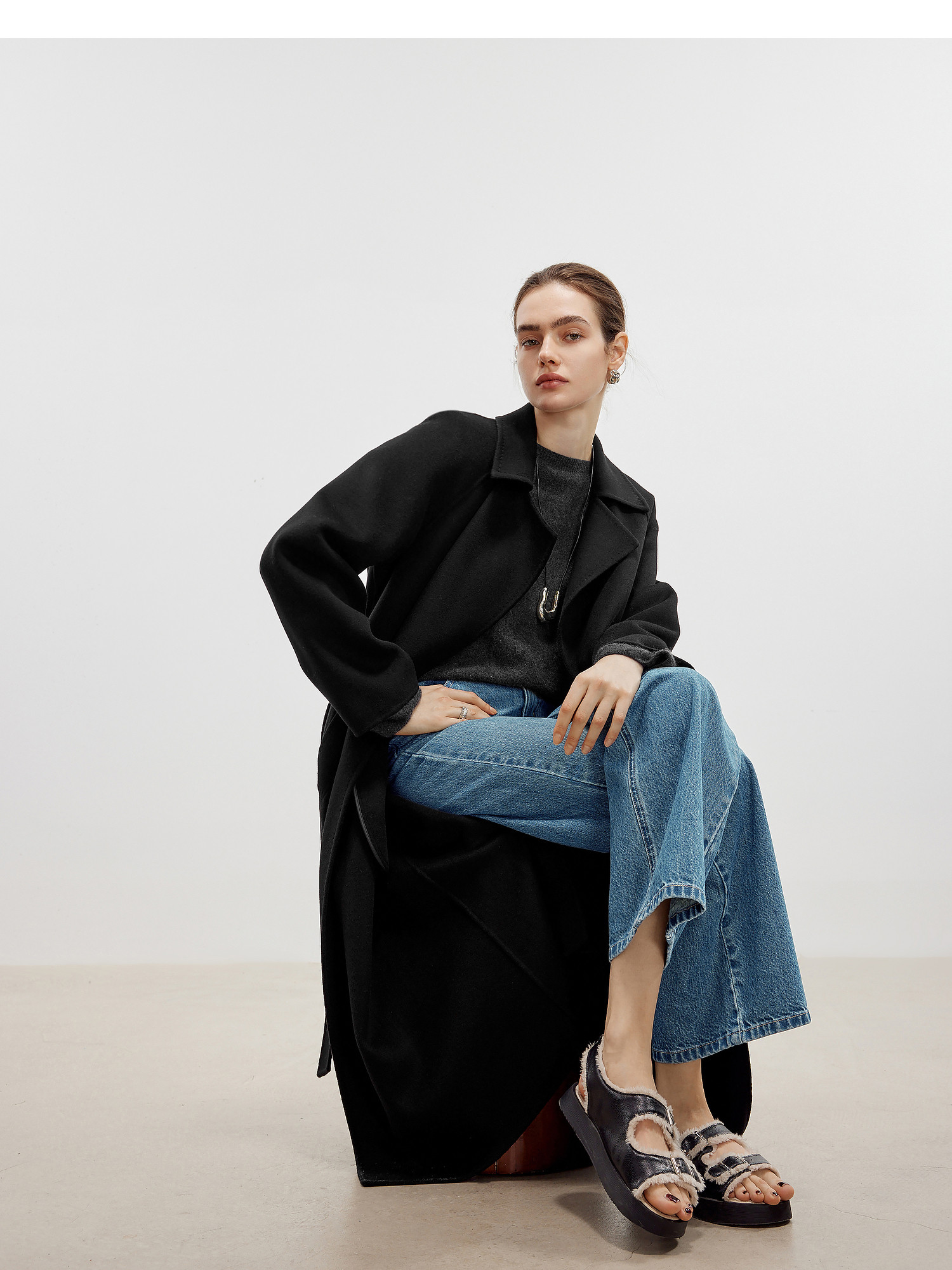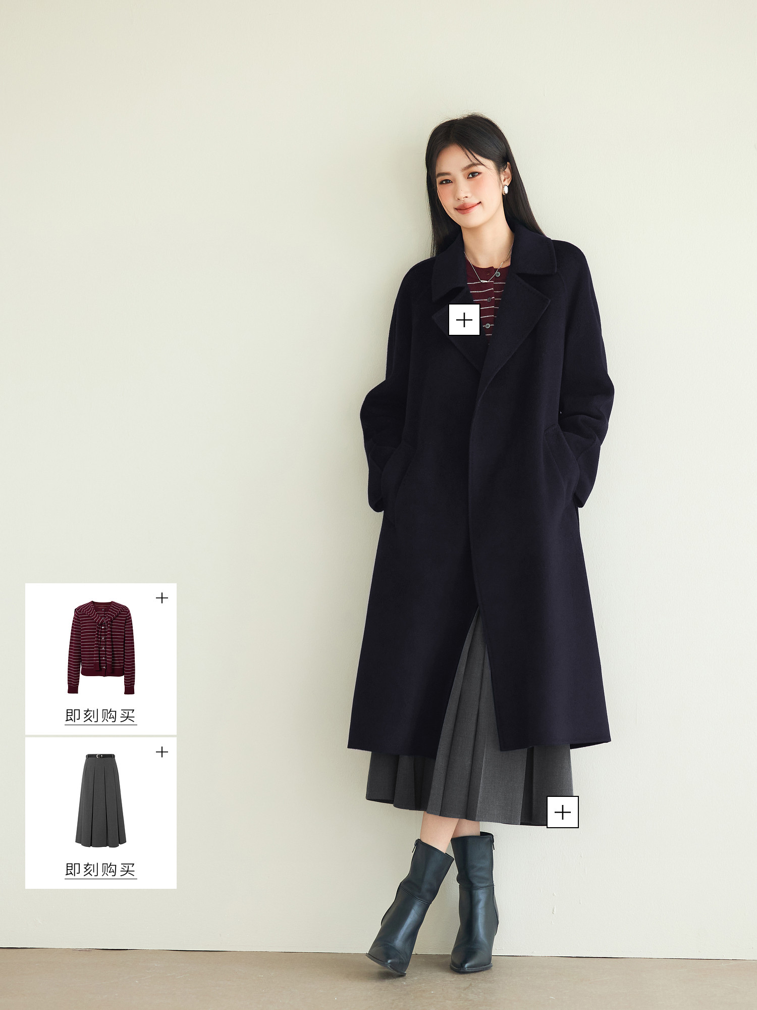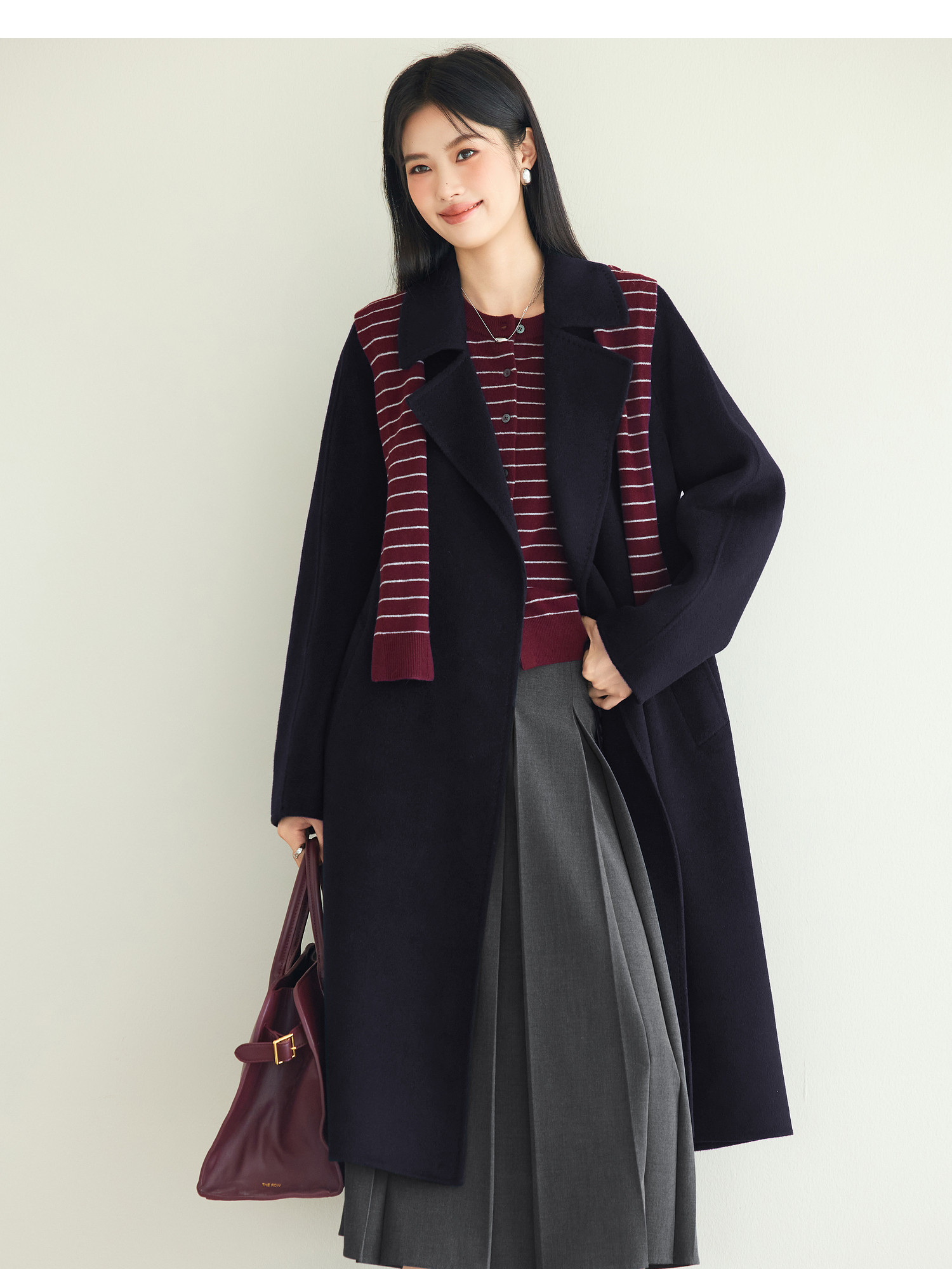 Eveli White Moonlight Elegant Wool White High-End Double-Sided Cashmere Coat for Women Autumn and Winter Outerwear