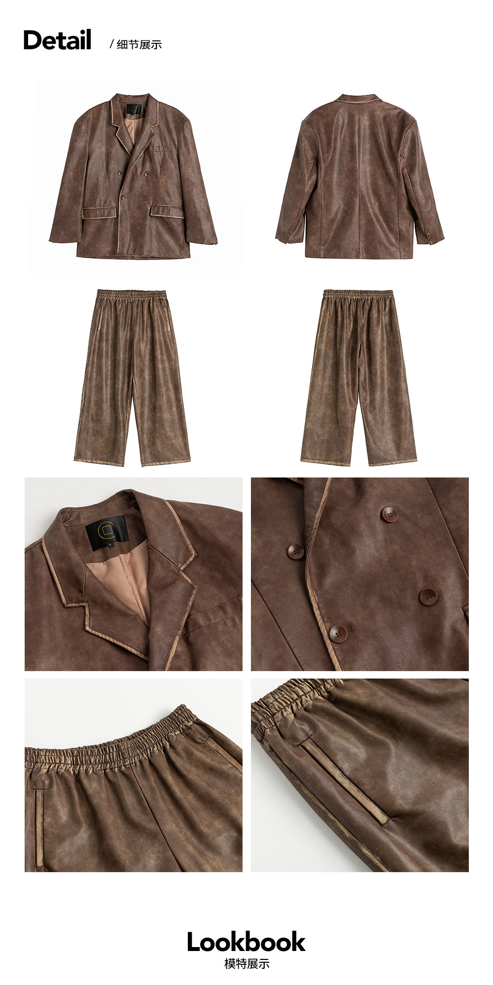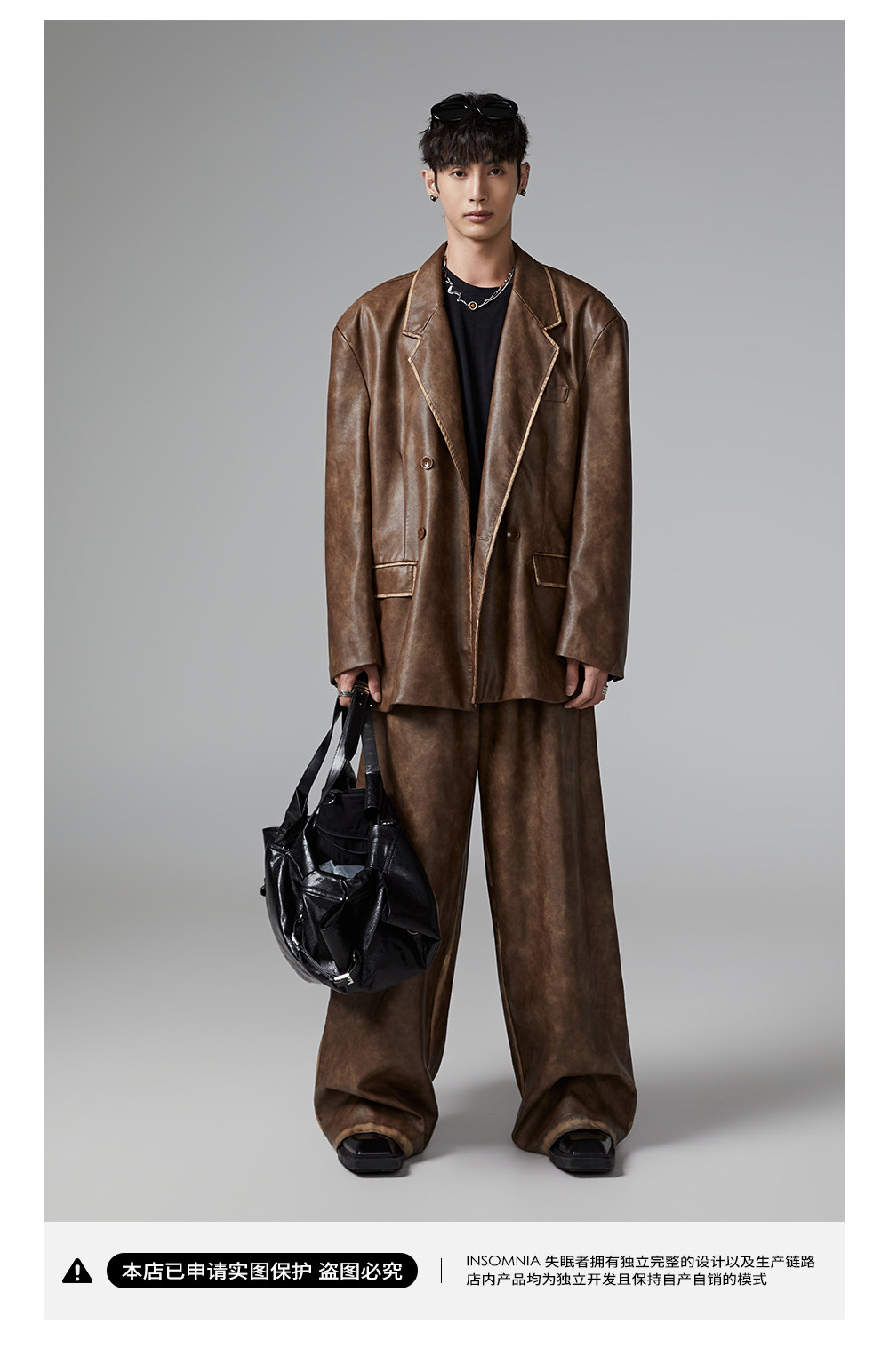 Insomnia Insomniac Autumn and Winter Melard Vintage Niche Distressed Oversized Leather Coat Set for Men