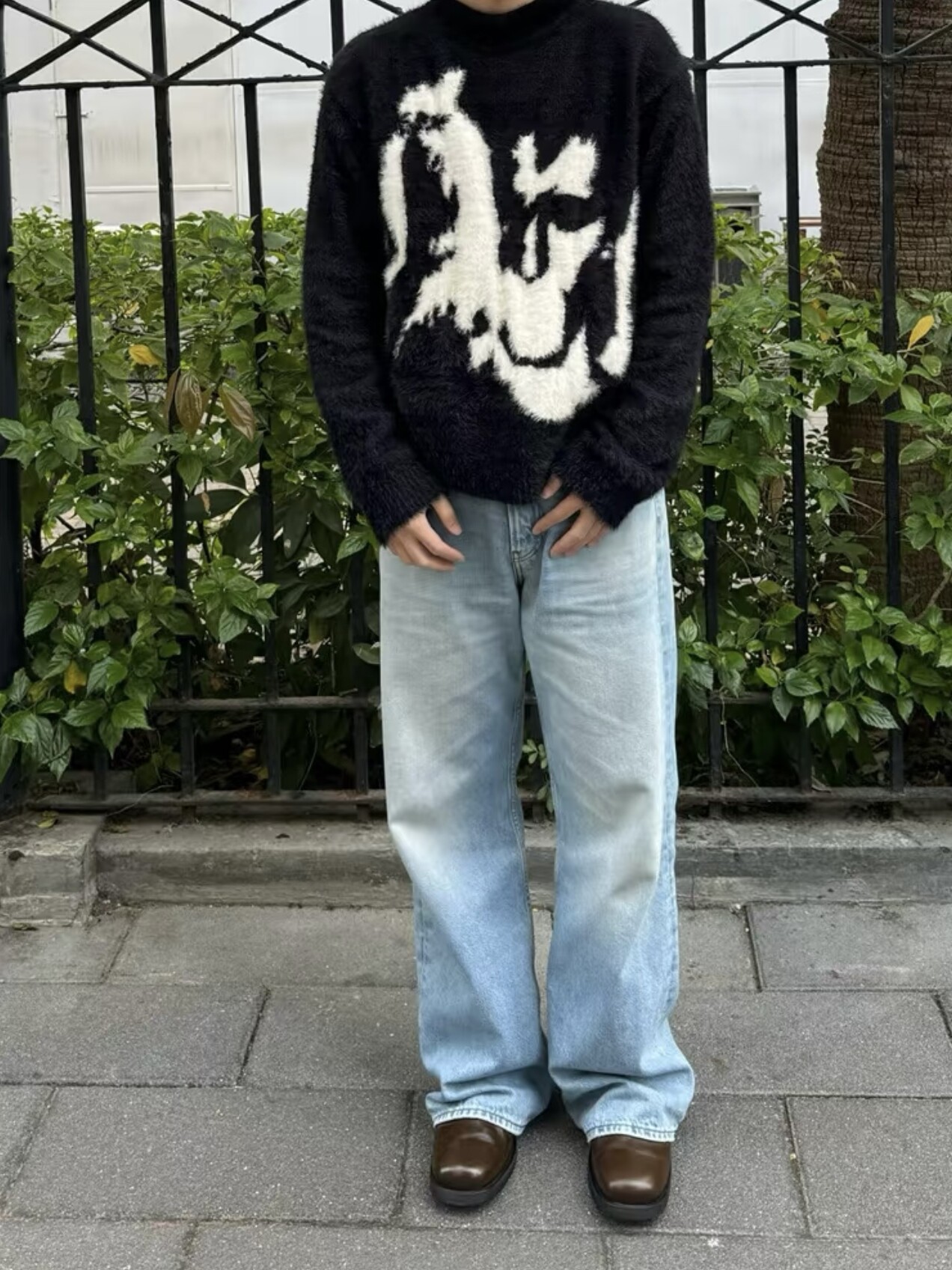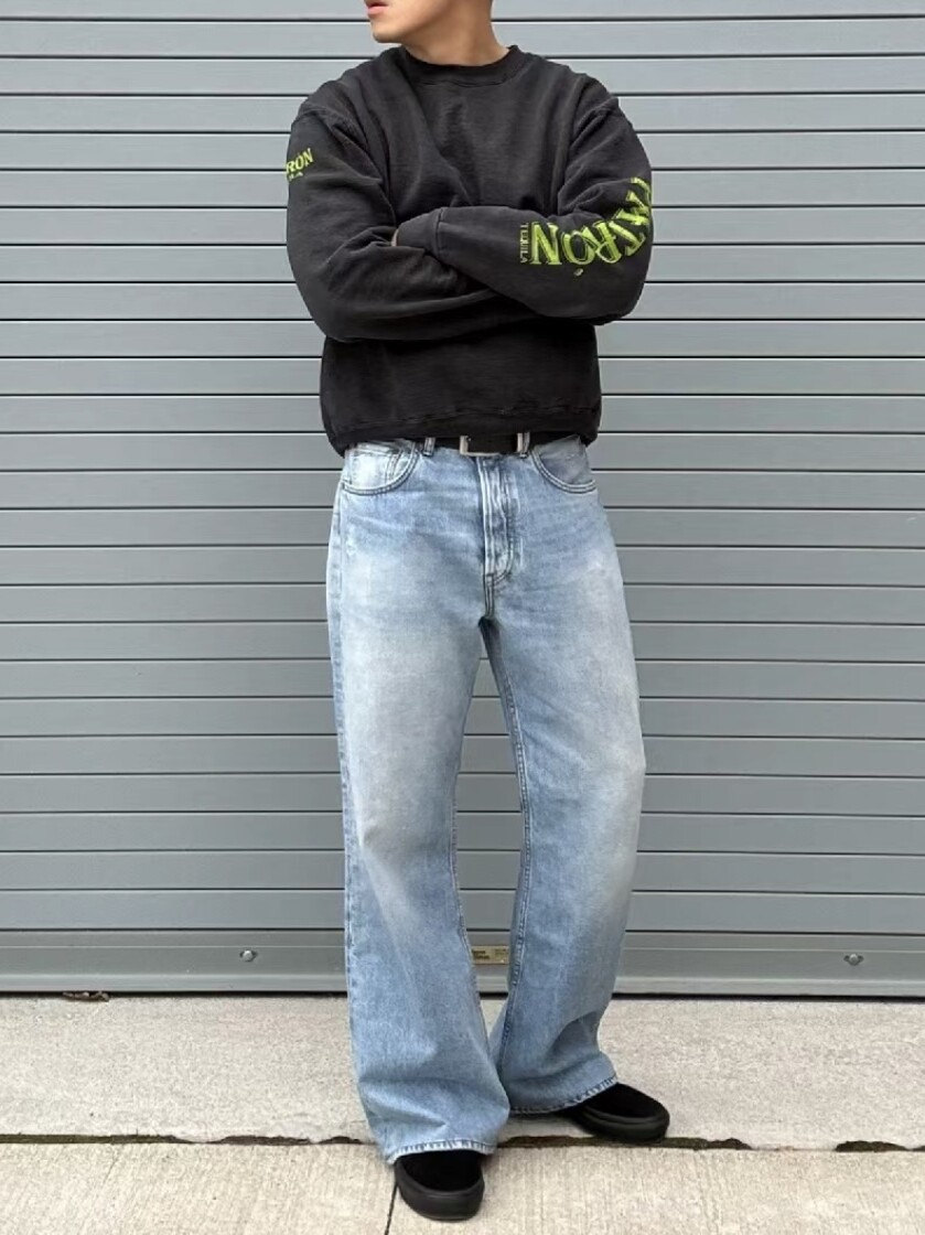 而腿围的数据却又在直筒、baggy之间徘徊,上身十分立体