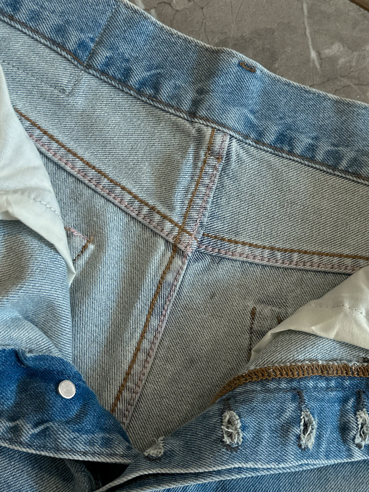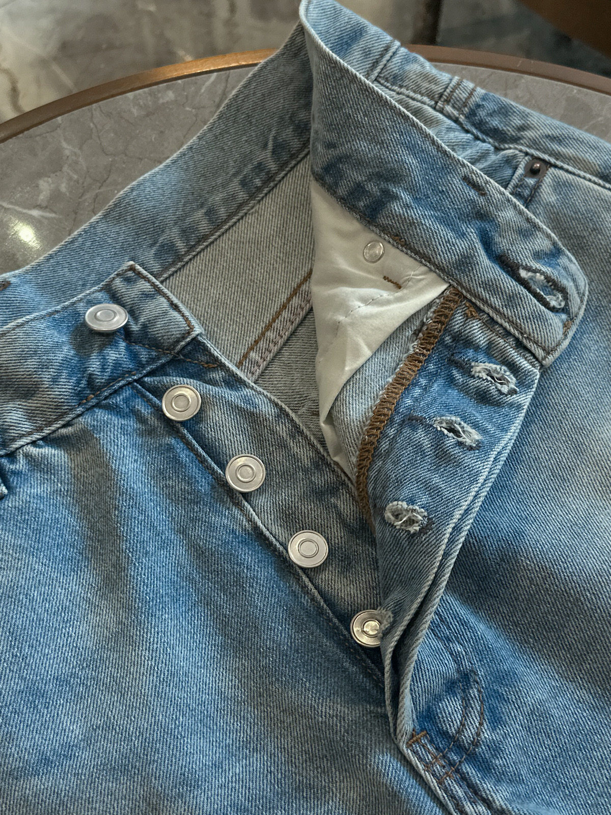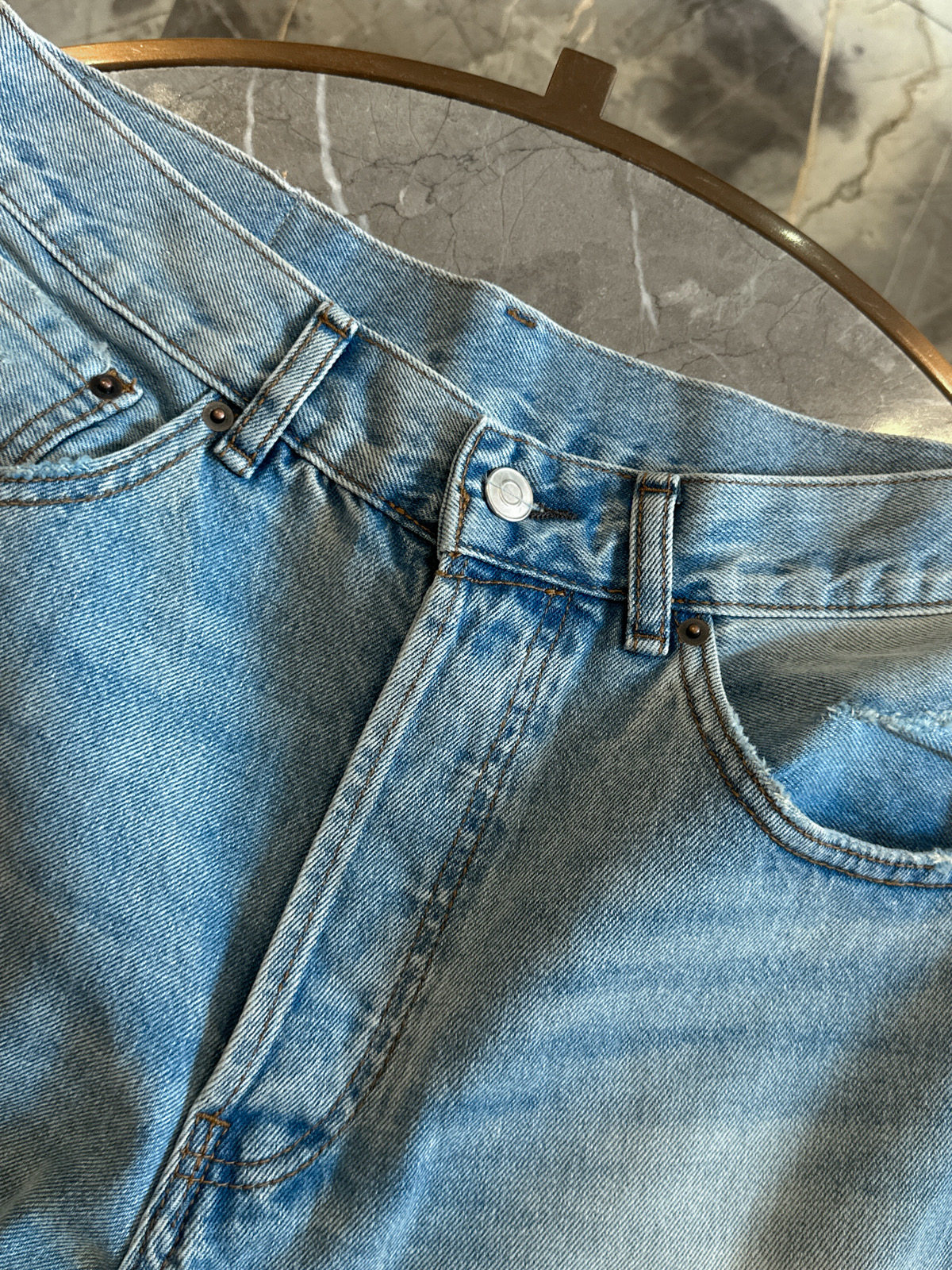 面料这款采用了12.5盎司的纯棉牛仔布,这种面料的纹理非常自然
