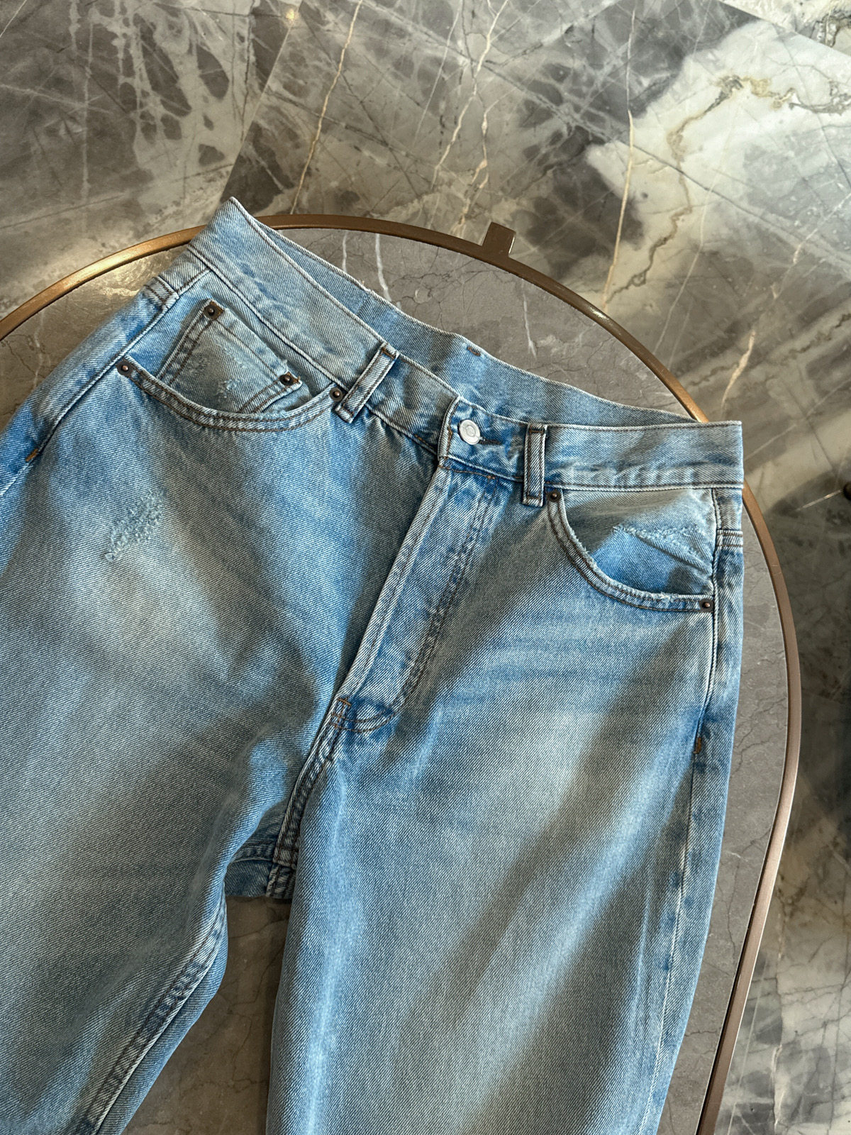 无论是大腿处的猫须还是裤脚及袋口的磨破