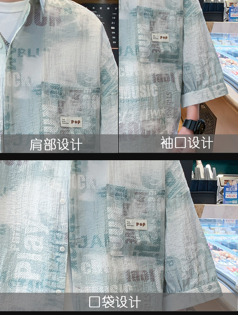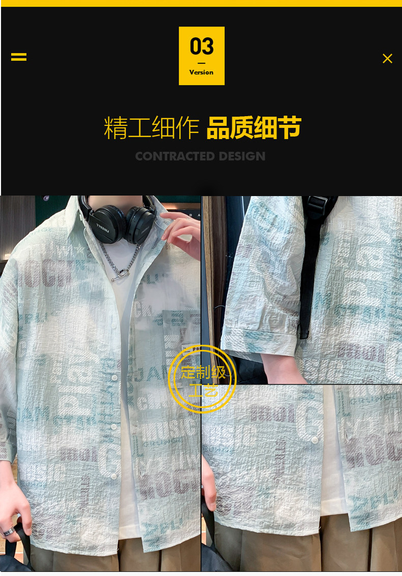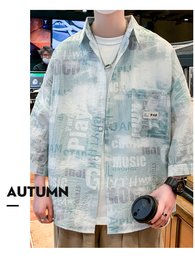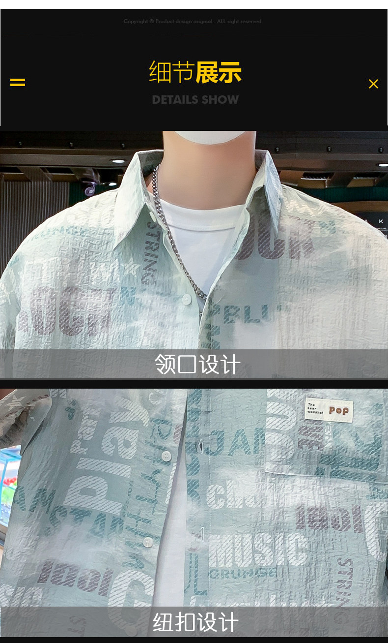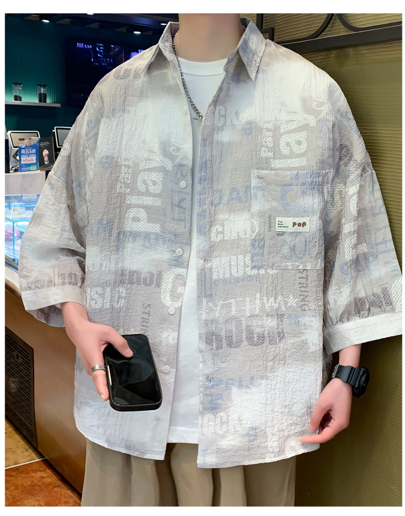 Three-Quarter Sleeve Shirt for Men, Short-Sleeved Summer Trendy Brand, Cool and Stylish Ice Silk Mid-Sleeve Shirt, Youth Sun Protection Jacket