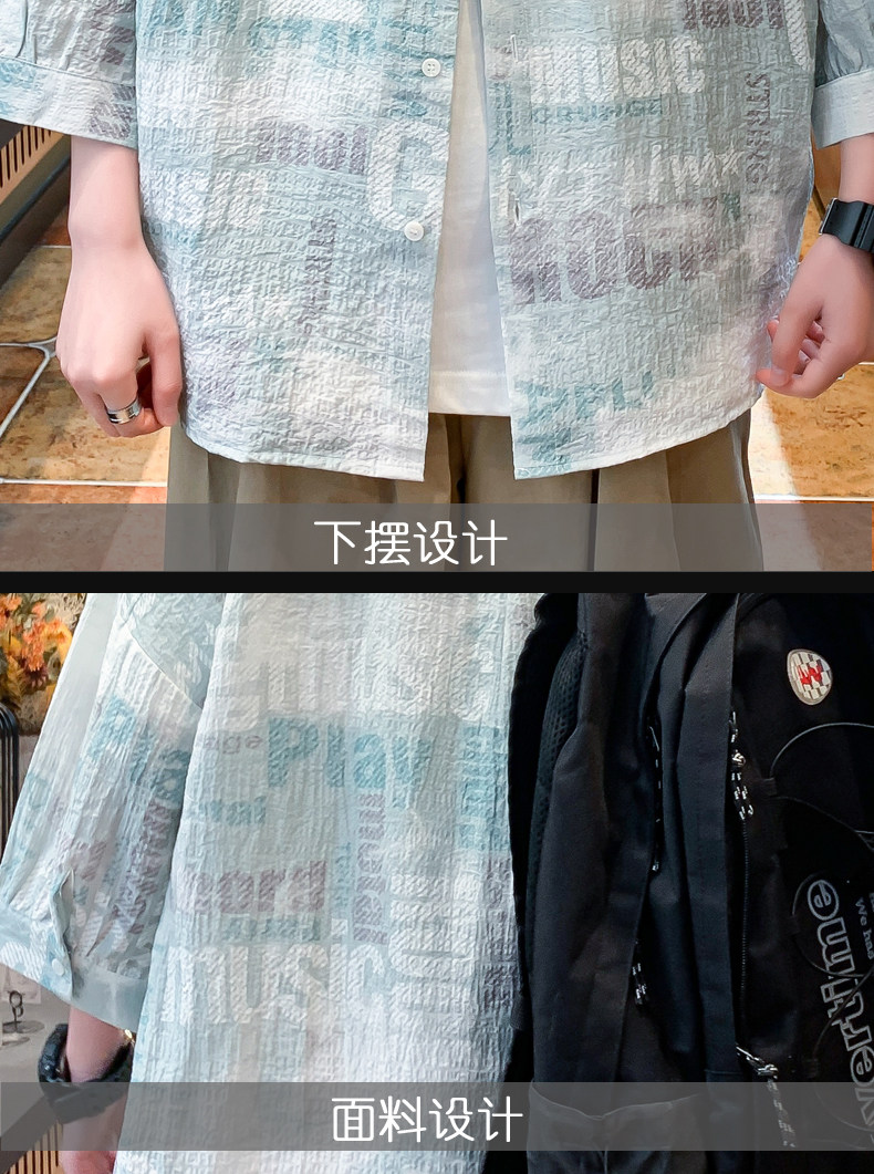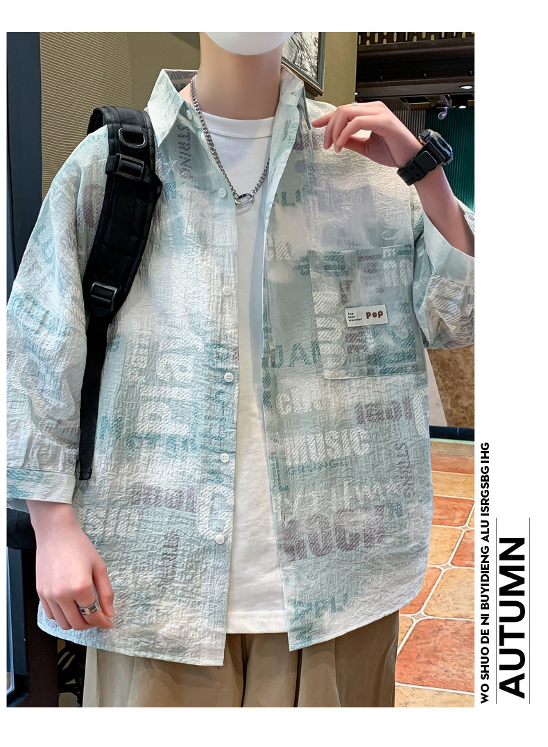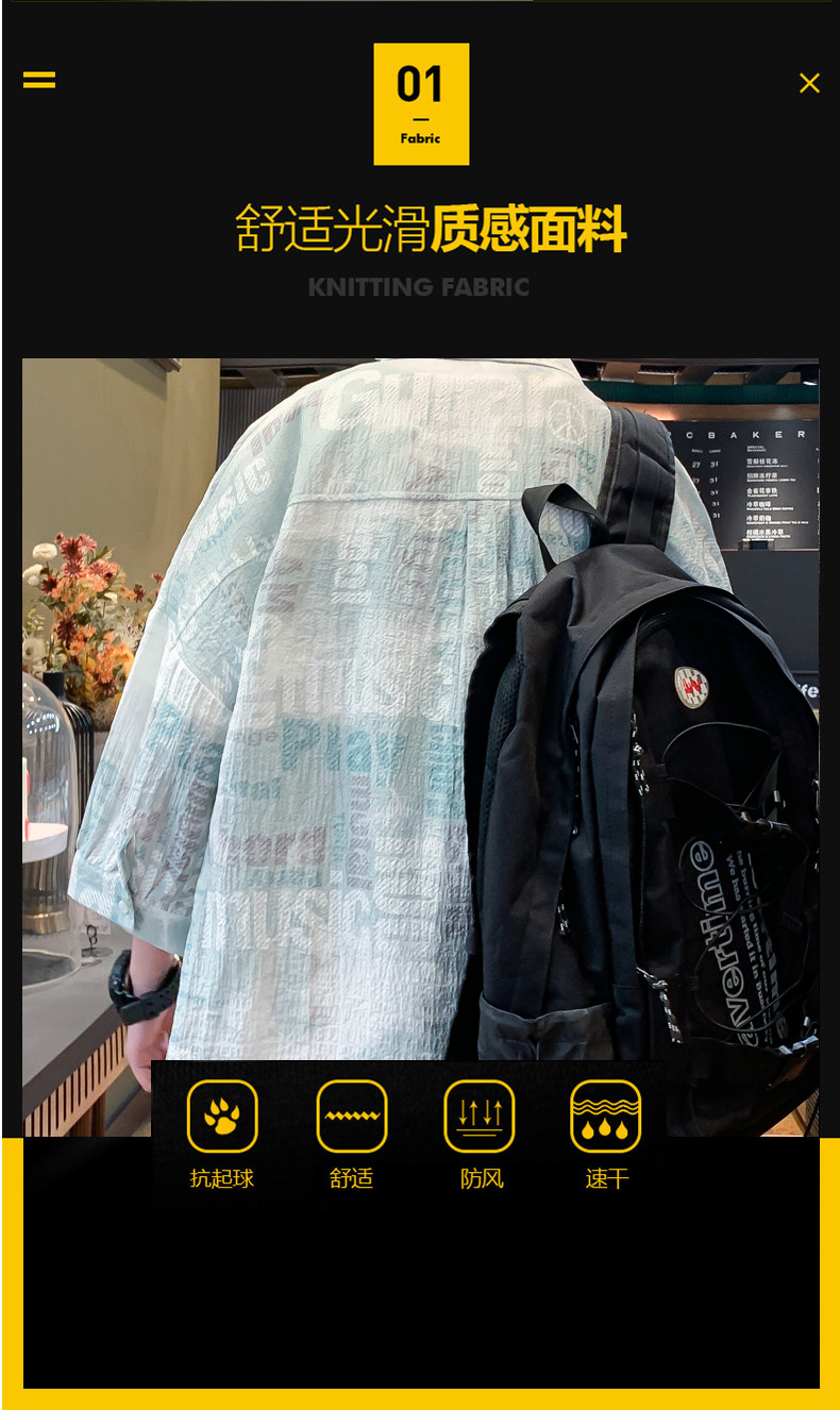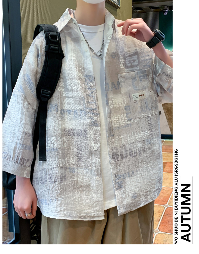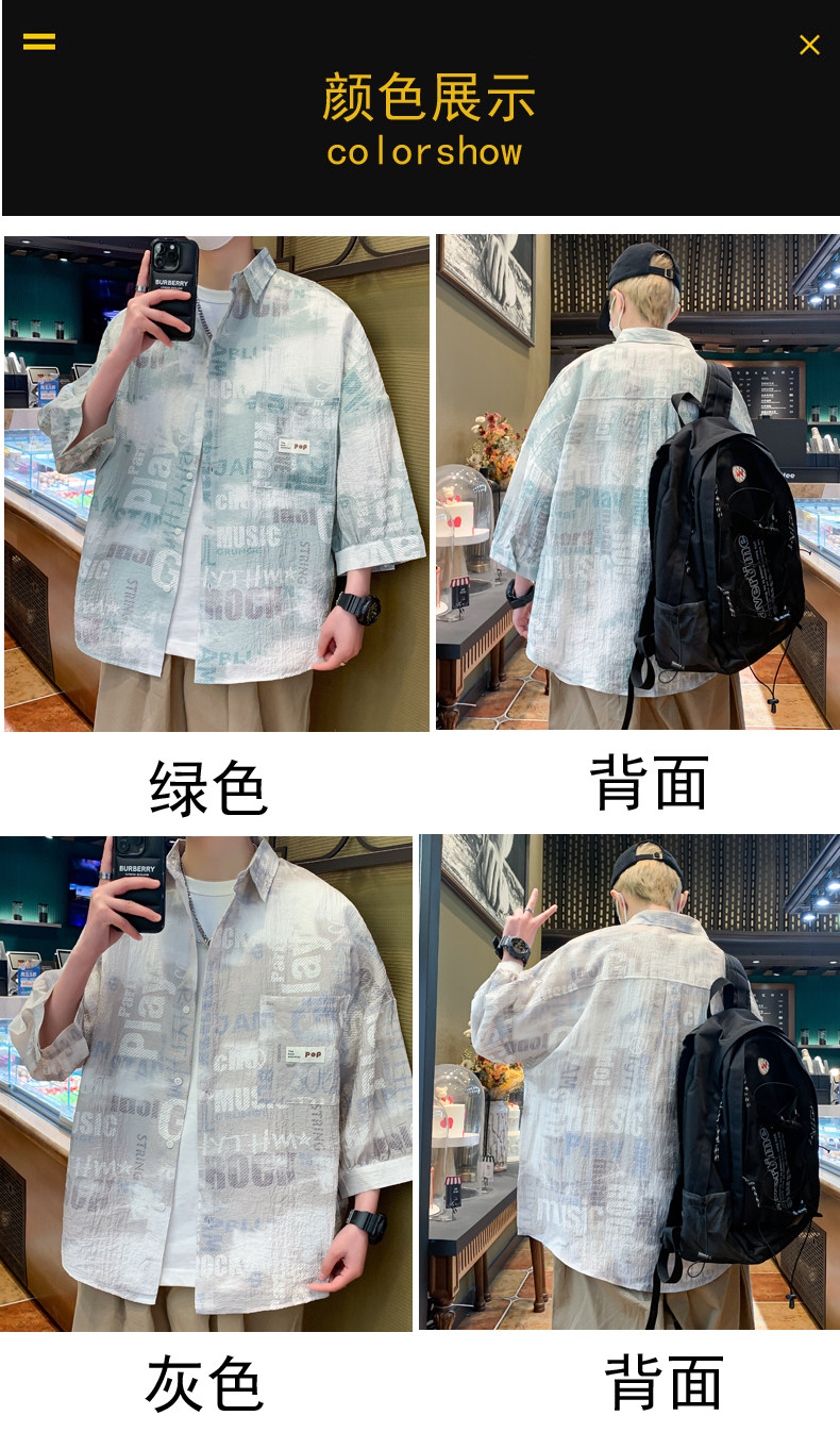 Three-Quarter Sleeve Shirt for Men, Short-Sleeved Summer Trendy Brand, Cool and Stylish Ice Silk Mid-Sleeve Shirt, Youth Sun Protection Jacket