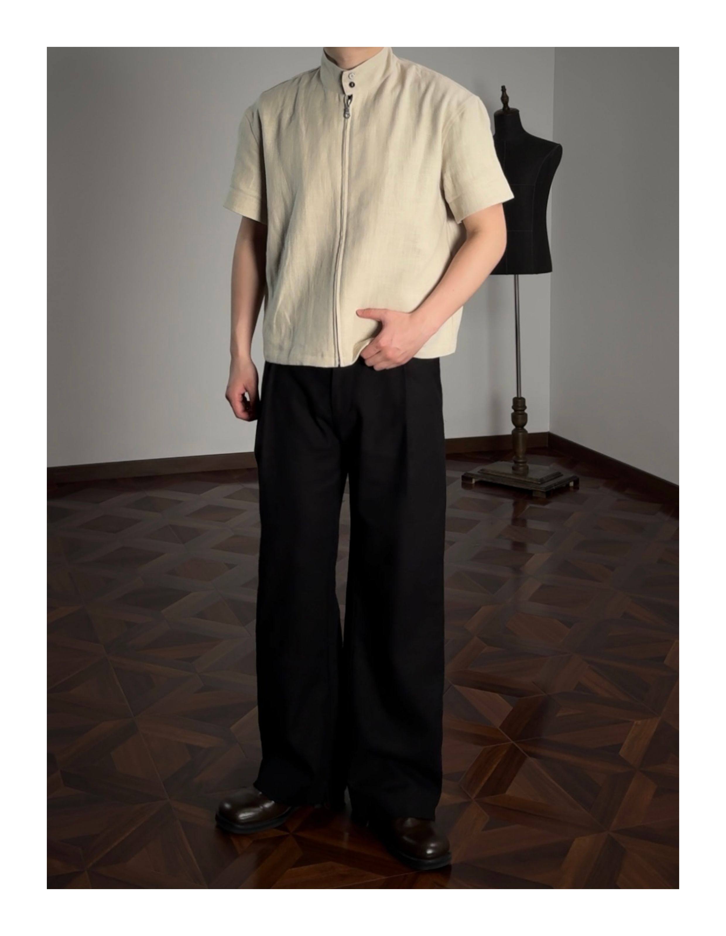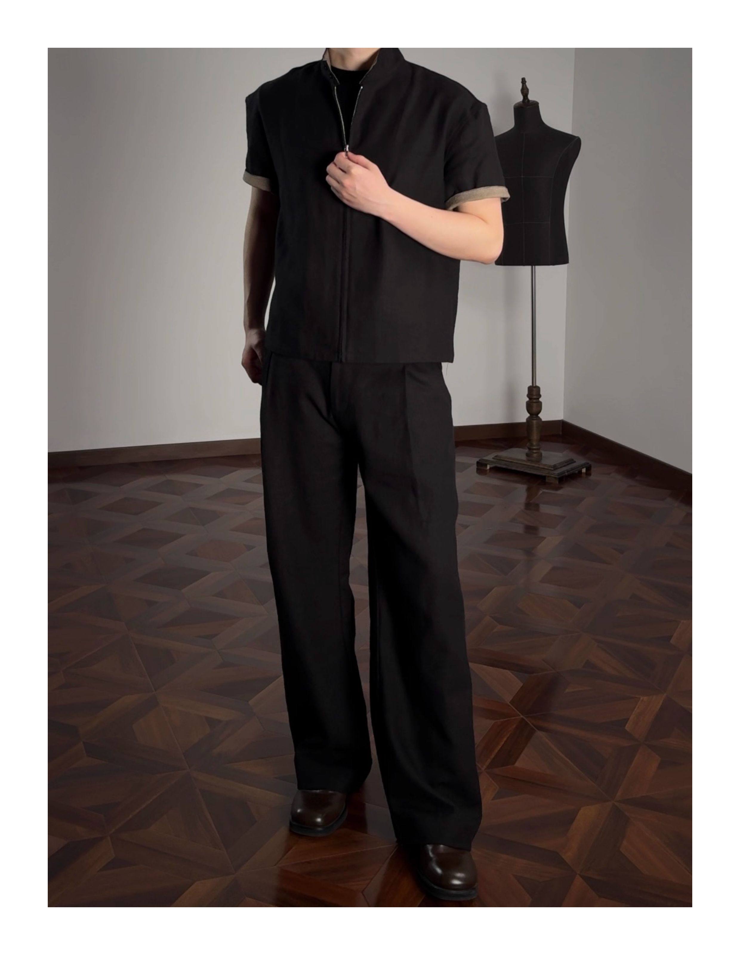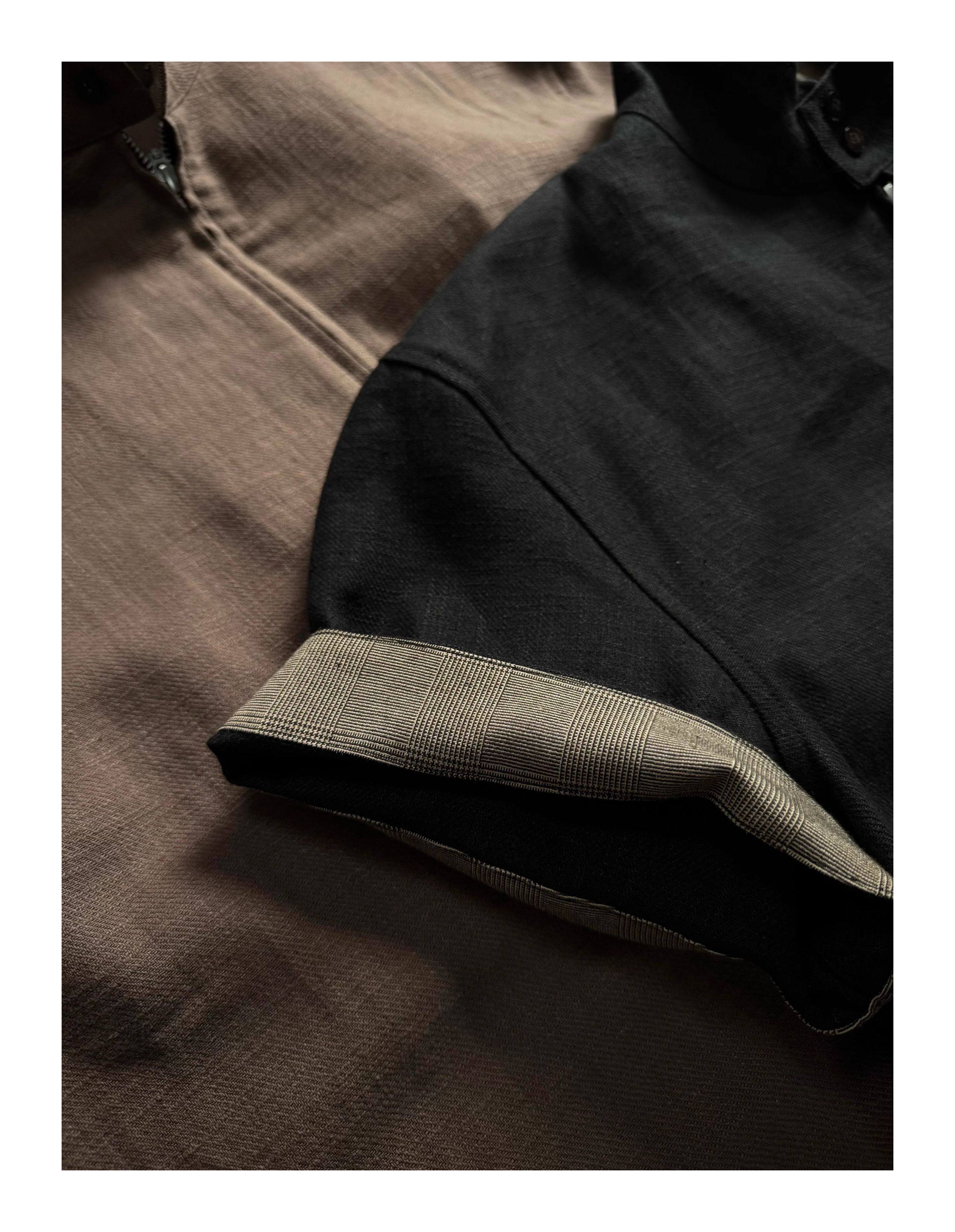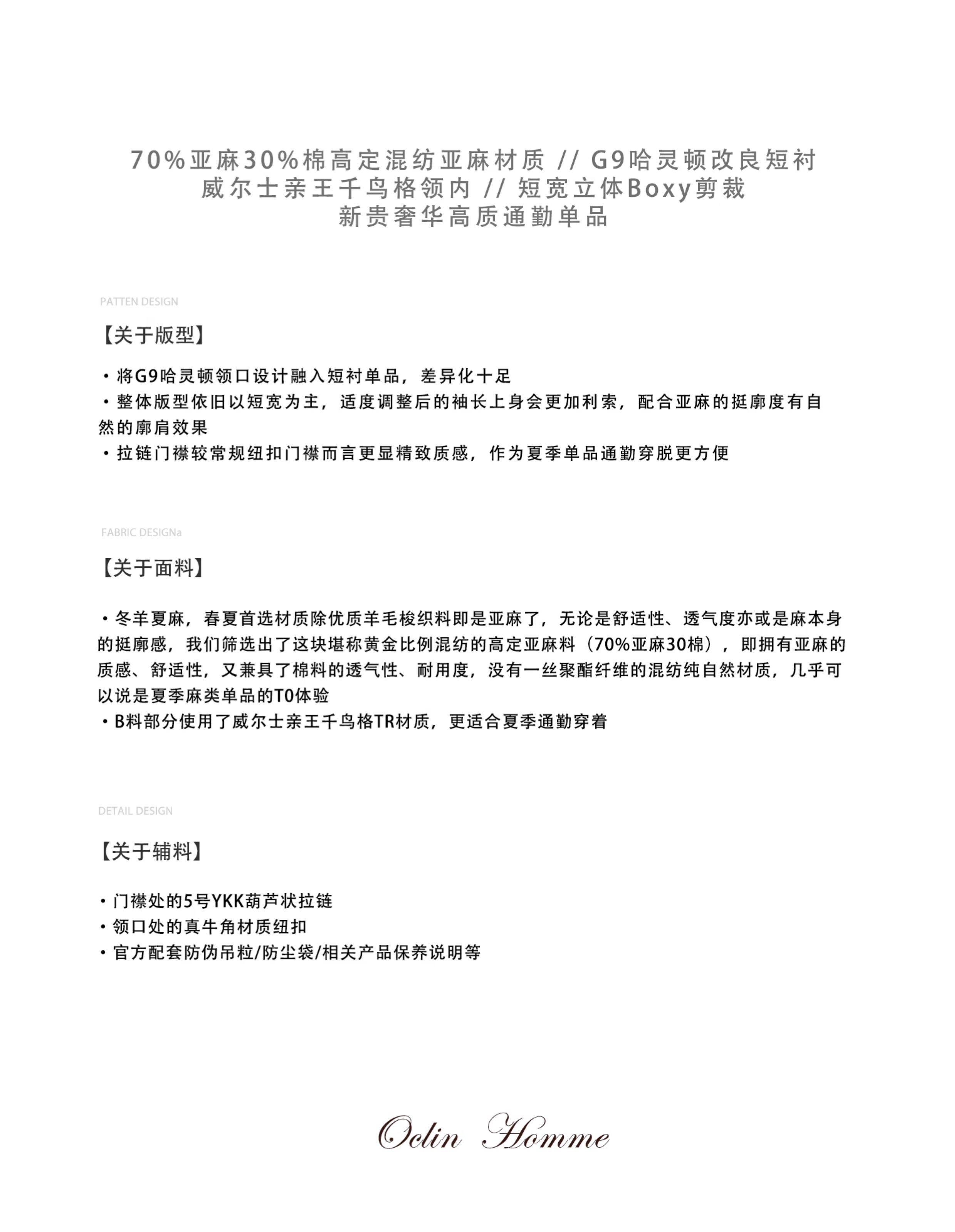Oclin 70% High-Quality Linen Prince of Wales Houndstooth G9 Harrington Short-Sleeve Shirt, Boxy Short Wide Fit