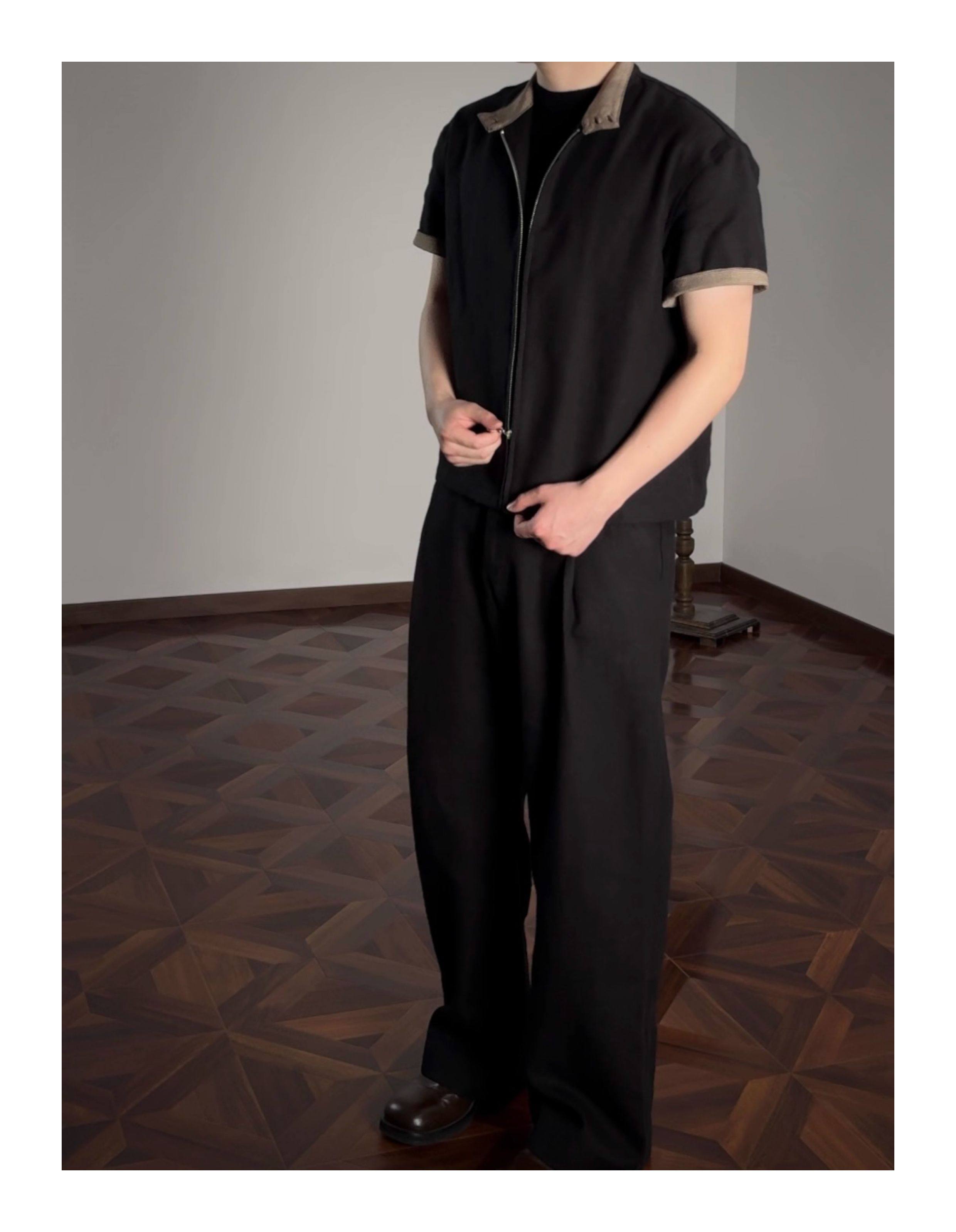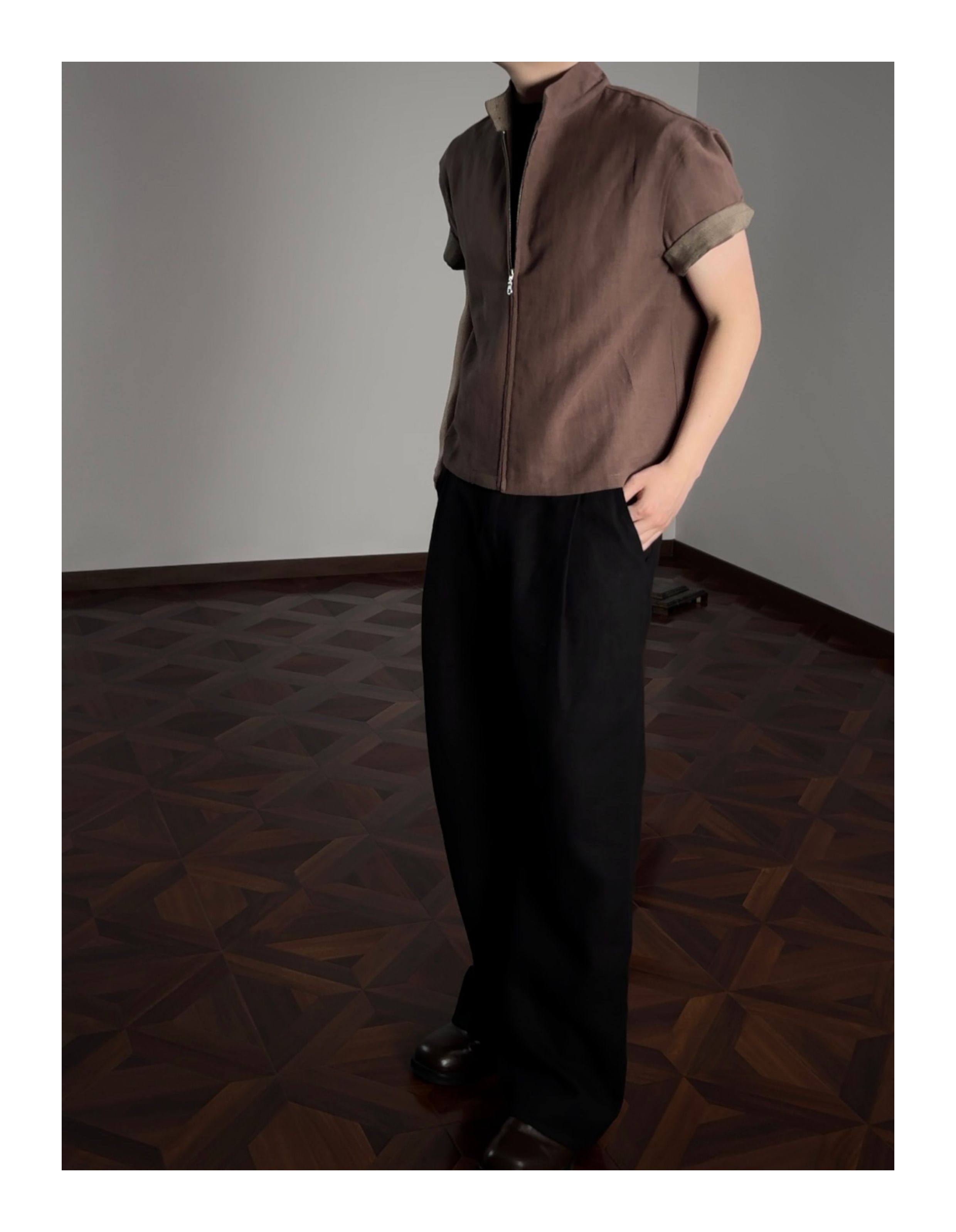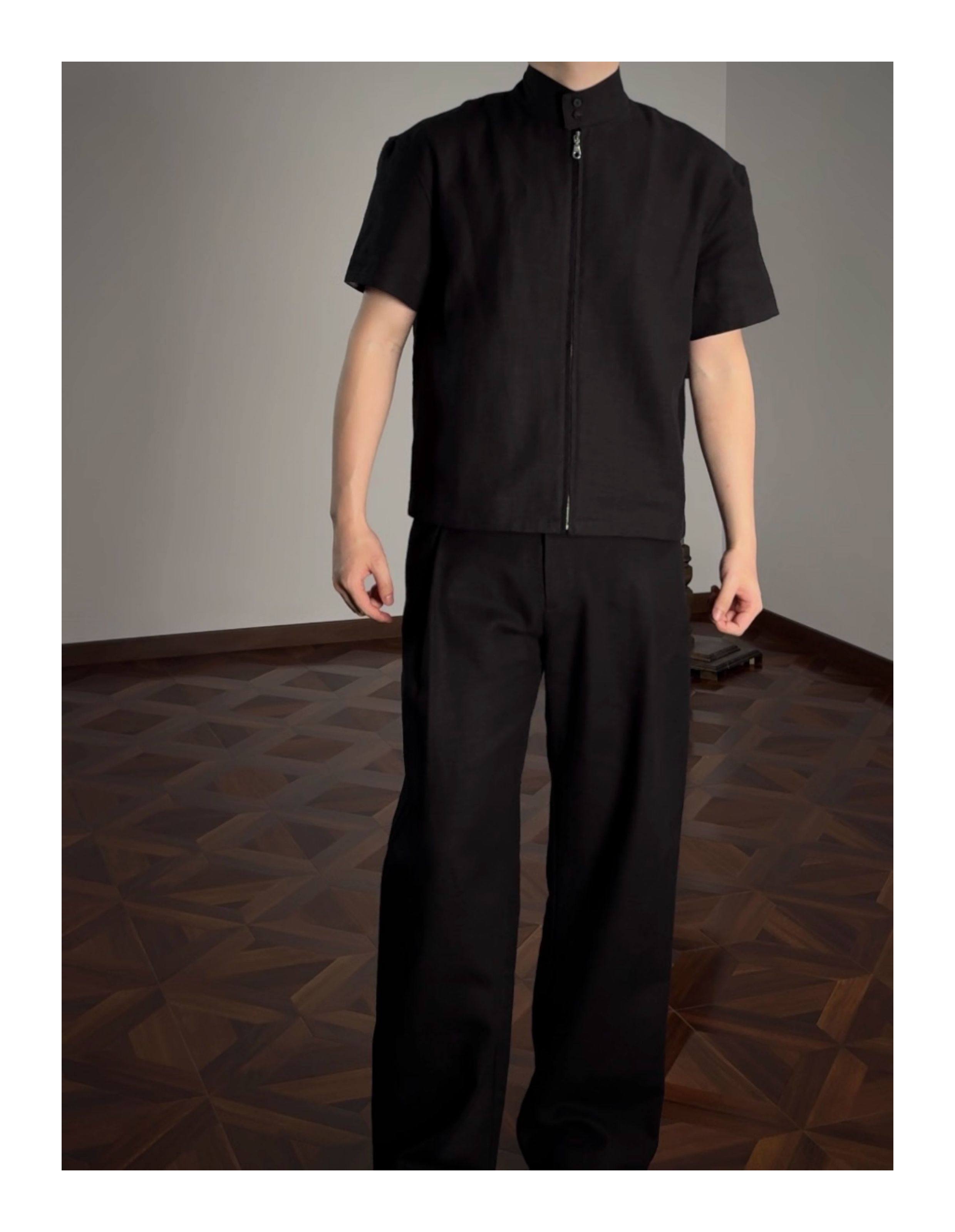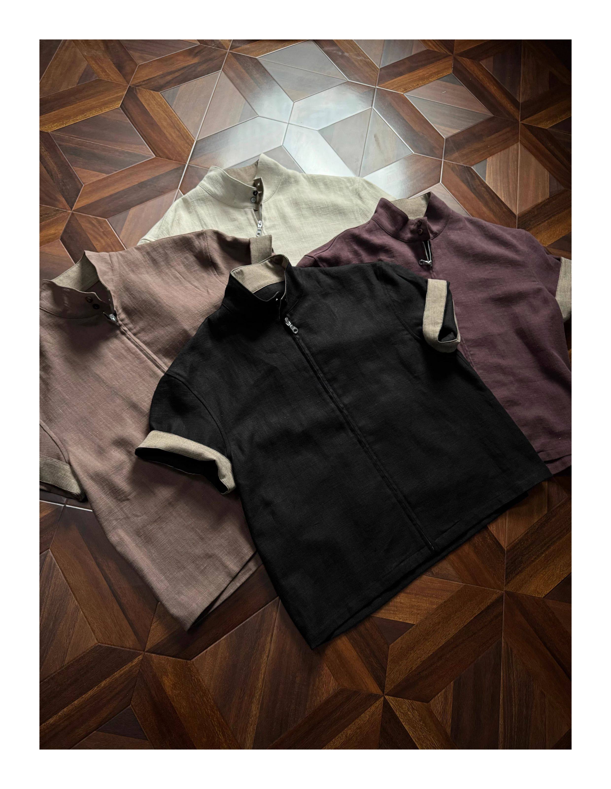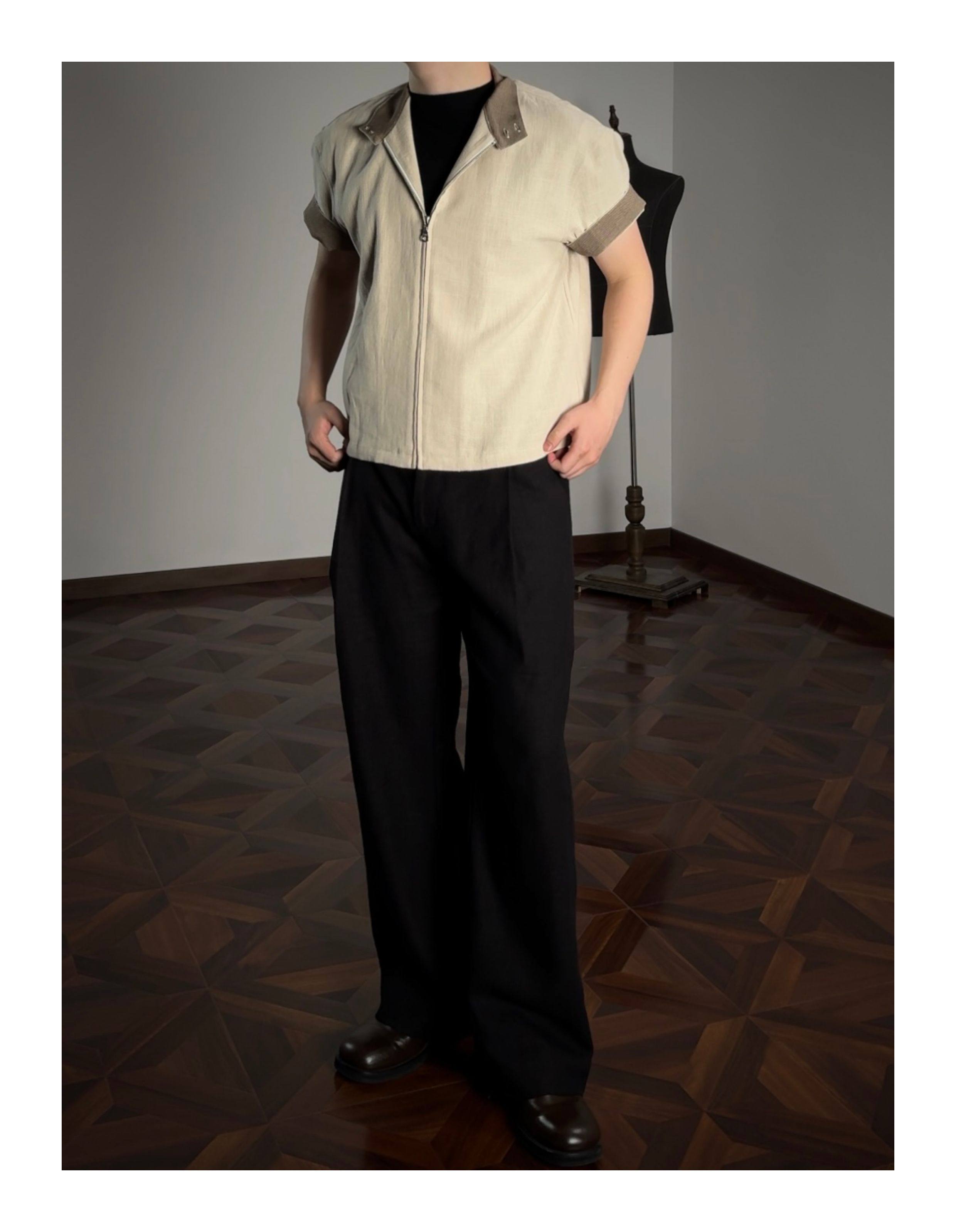 Oclin 70% High-Quality Linen Prince of Wales Houndstooth G9 Harrington Short-Sleeve Shirt, Boxy Short Wide Fit