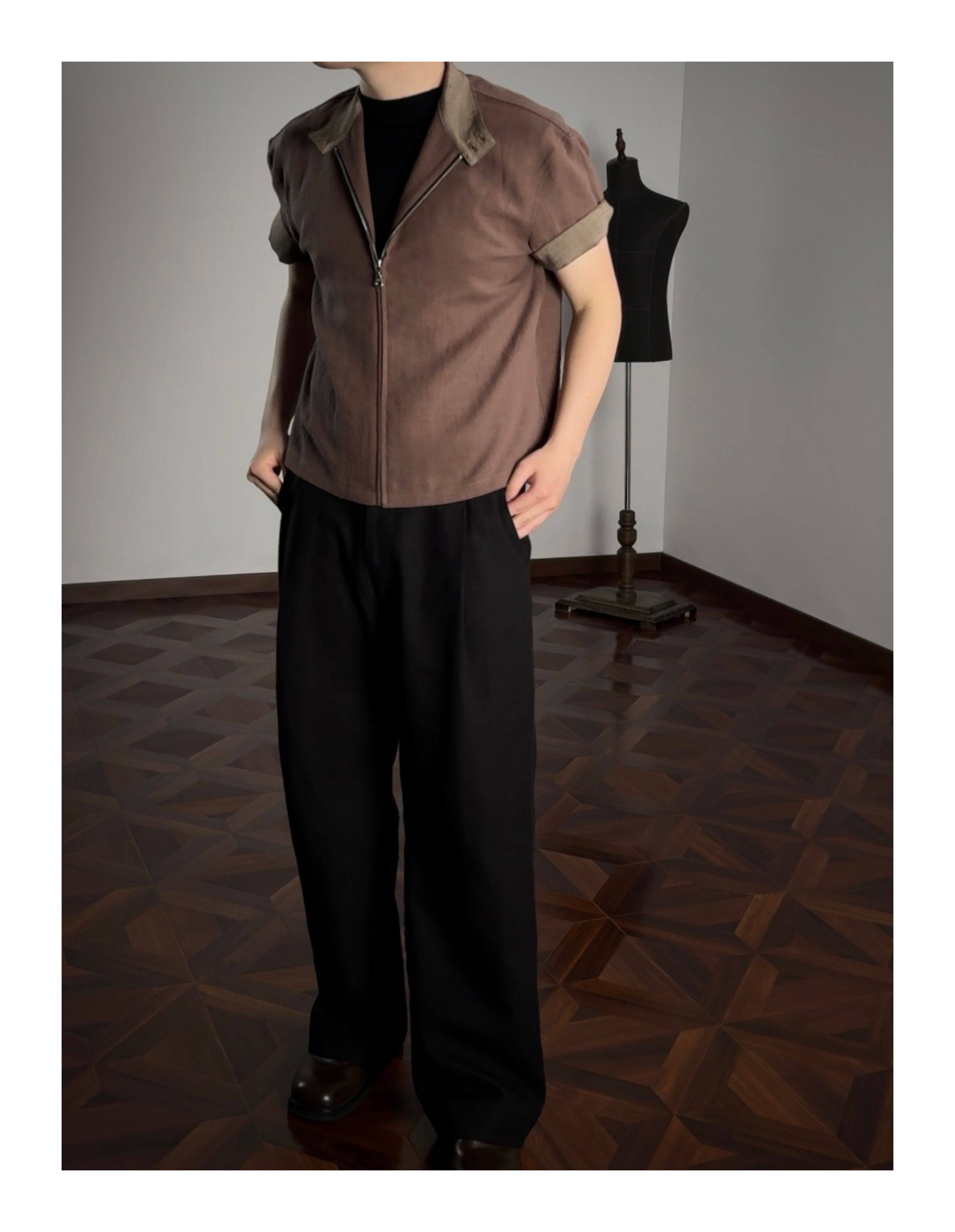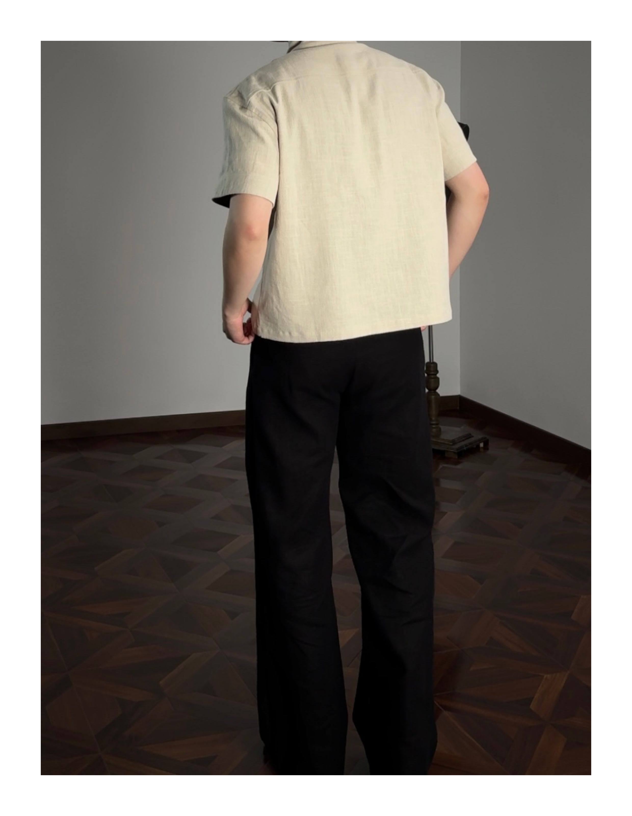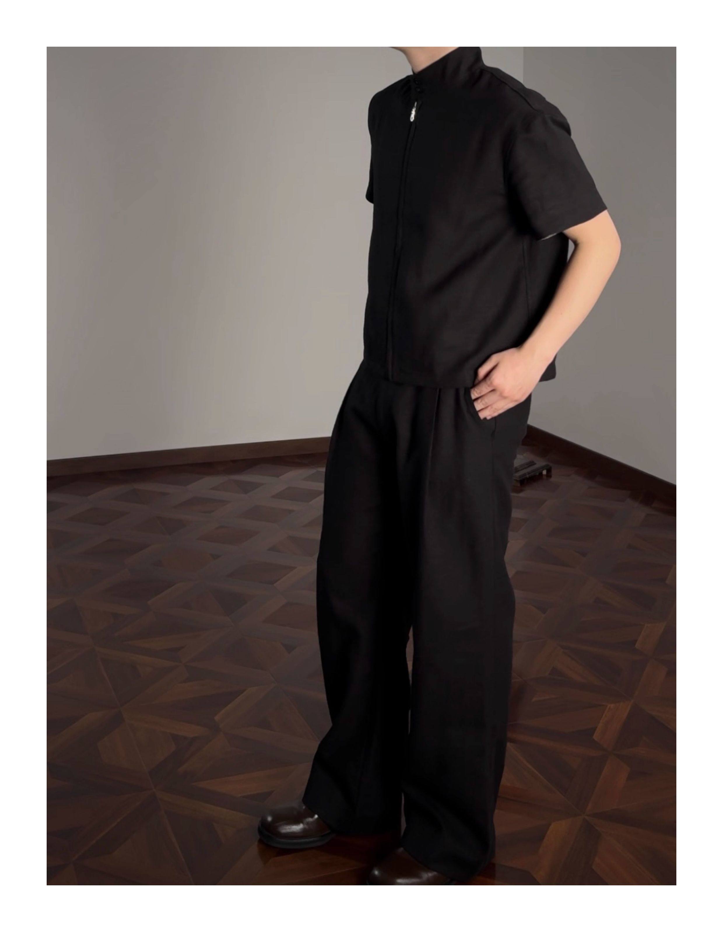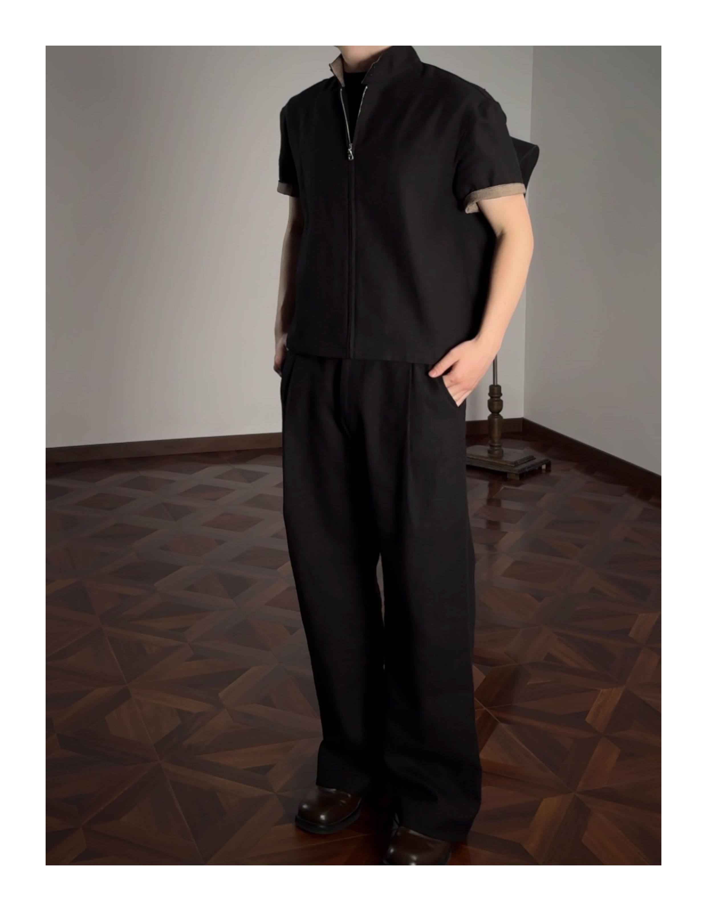 Oclin 70% High-Quality Linen Prince of Wales Houndstooth G9 Harrington Short-Sleeve Shirt, Boxy Short Wide Fit