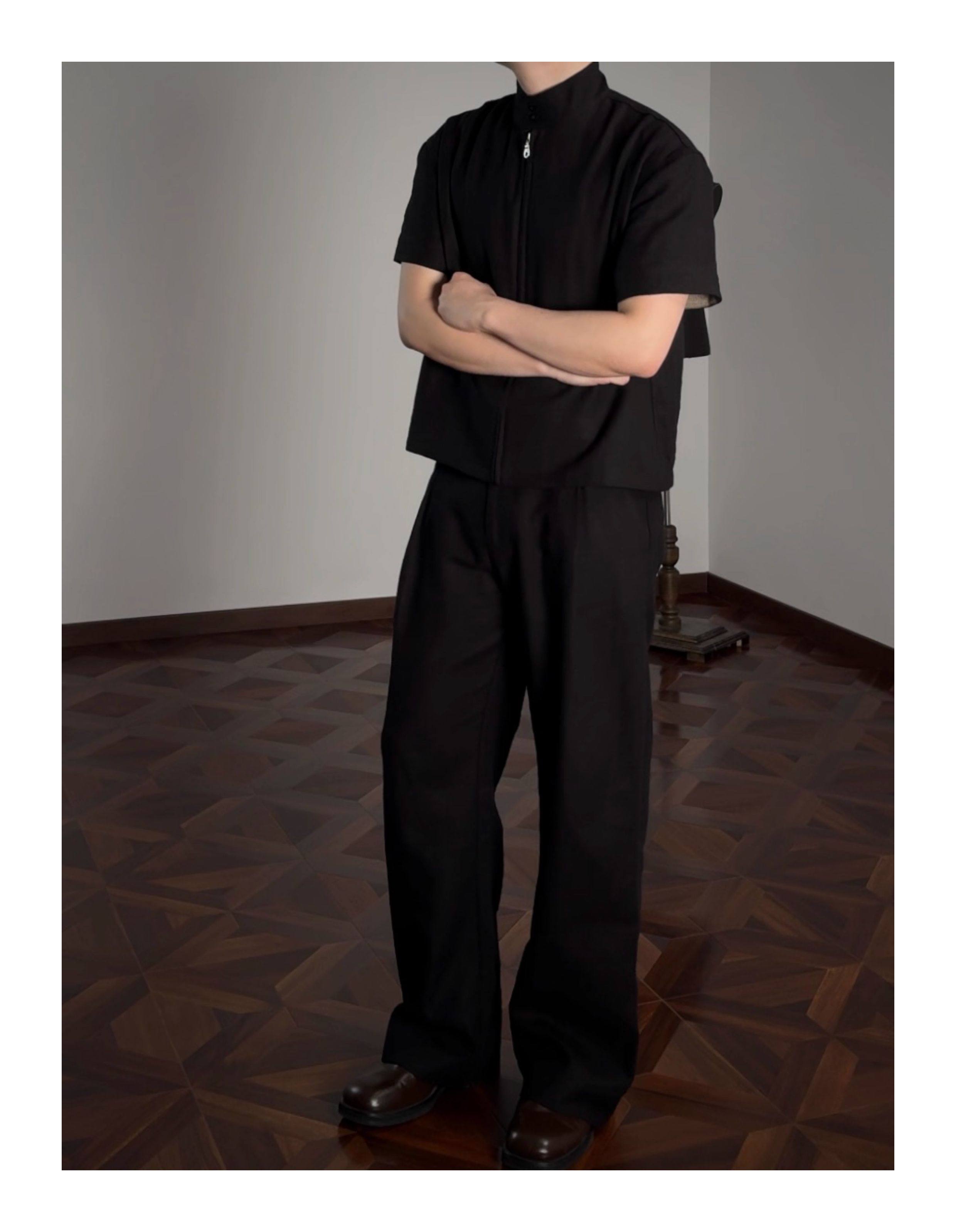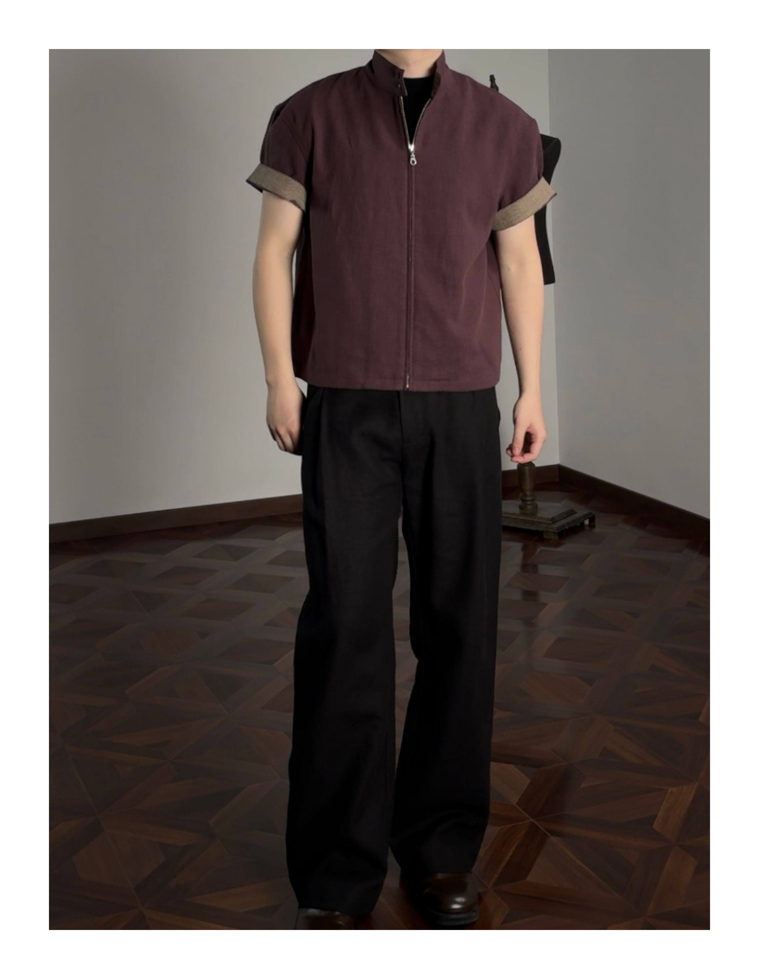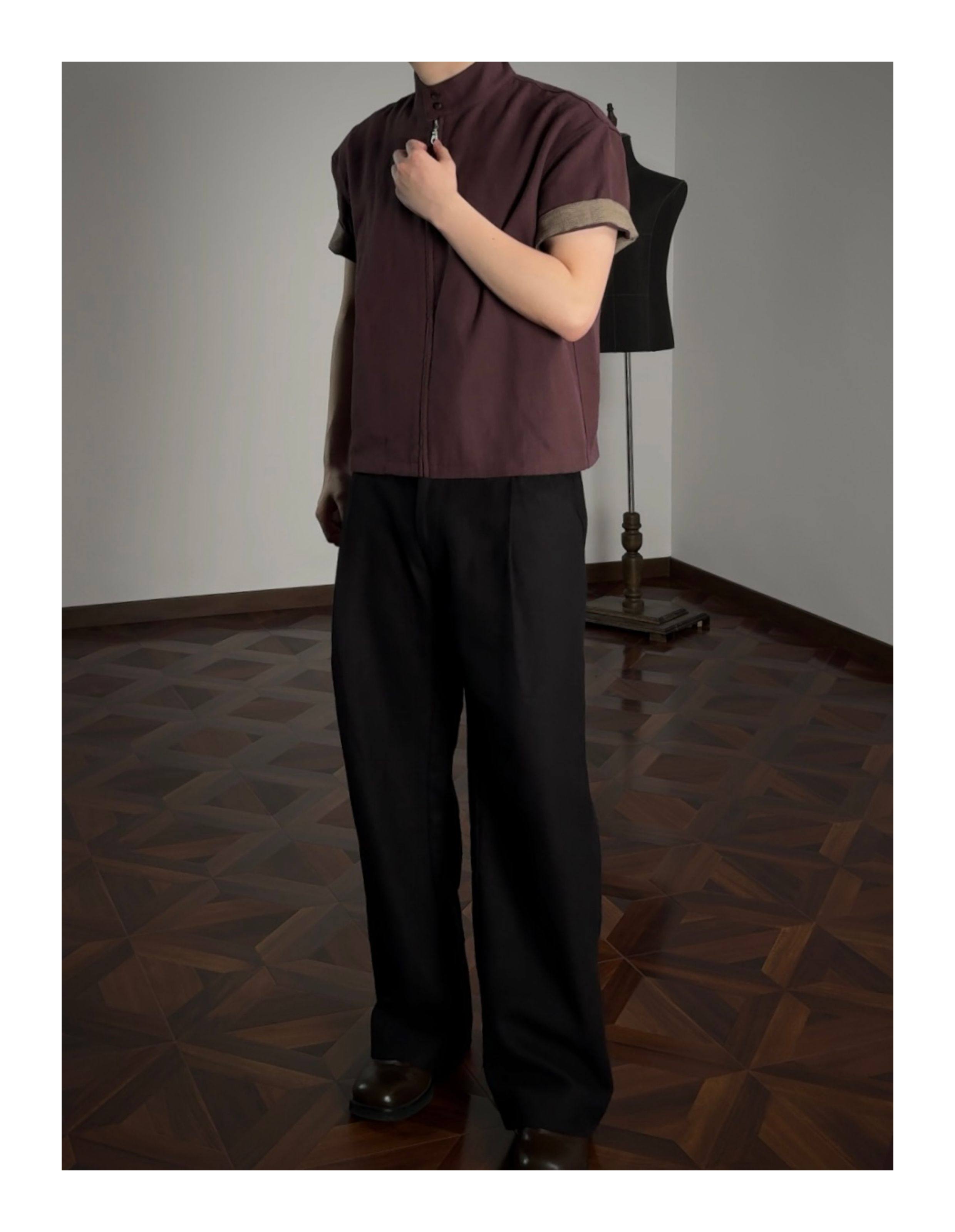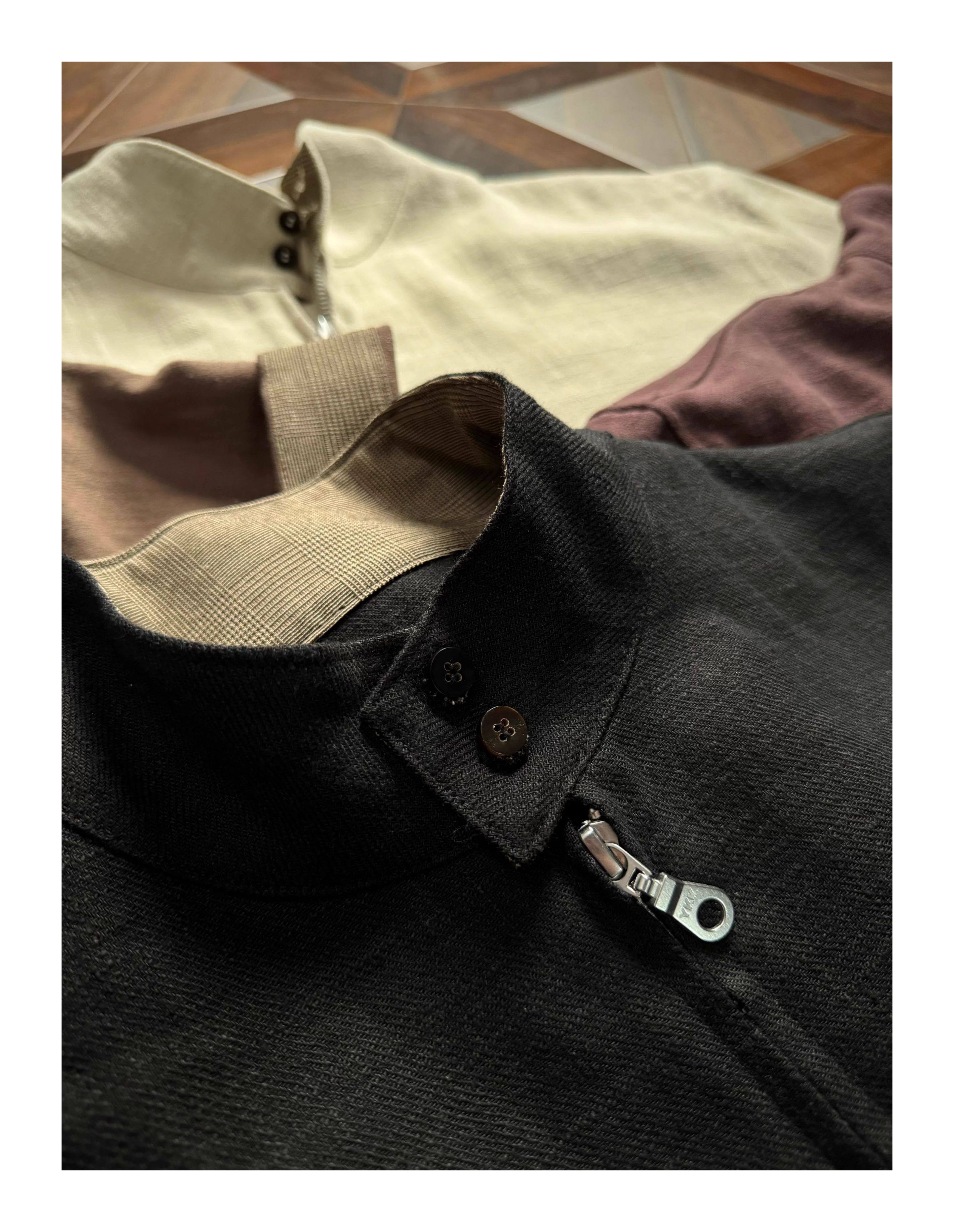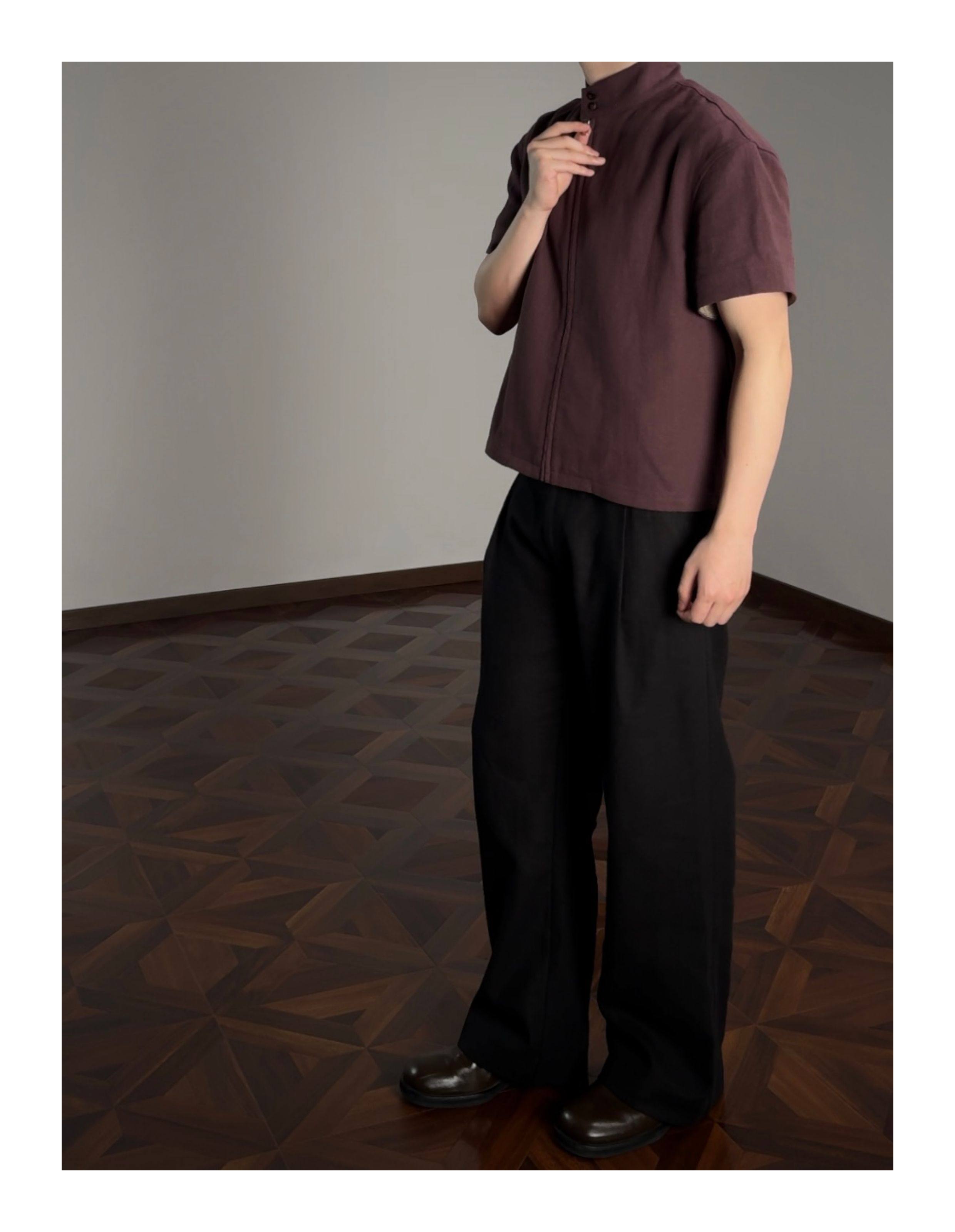 Oclin 70% High-Quality Linen Prince of Wales Houndstooth G9 Harrington Short-Sleeve Shirt, Boxy Short Wide Fit
